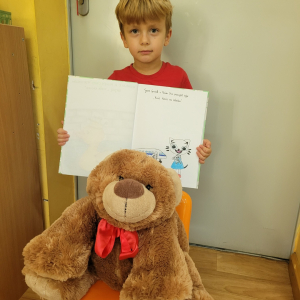 "Biedronki" rozpoczęły przygodę z projektem „Mały Miś w świecie literatury”. Dzieci wraz z Paniami wybrały grupową maskotkę – misia Oreo, który zamieszkał w kąciku czytelniczym i będzie towarzyszyć im podczas zajęć jako przewodnik po świecie książek. Miś "Oreo" wyruszył też w czytelniczą podróż do domów dzieci. Po wysłuchaniu bajki czytanej przez rodziców przedszkolaki wypełniają kartę z dzienniczka Małego Misia, utrwalając nawyk codziennego czytania. Projekt rozwija zainteresowania czytelnicze, zachęca do słuchania i opowiadania historii oraz buduje pozytywne relacje z książką.