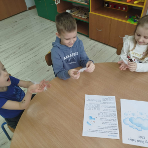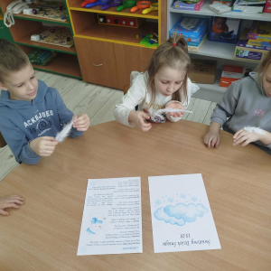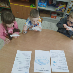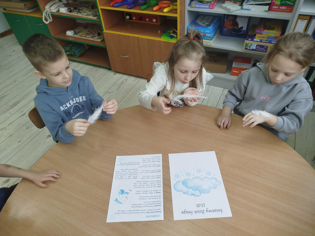 15 Stycznia był „Światowy Dzień Śniegu”. Dzieci usprawniały narządy artykulacyjne, utrwalały właściwy tor oddechowy oraz wysłuchały ciekawostek o śniegu. Na koniec wykonały zadanie artykulacyjno-językowe „Budujemy bałwana”.
