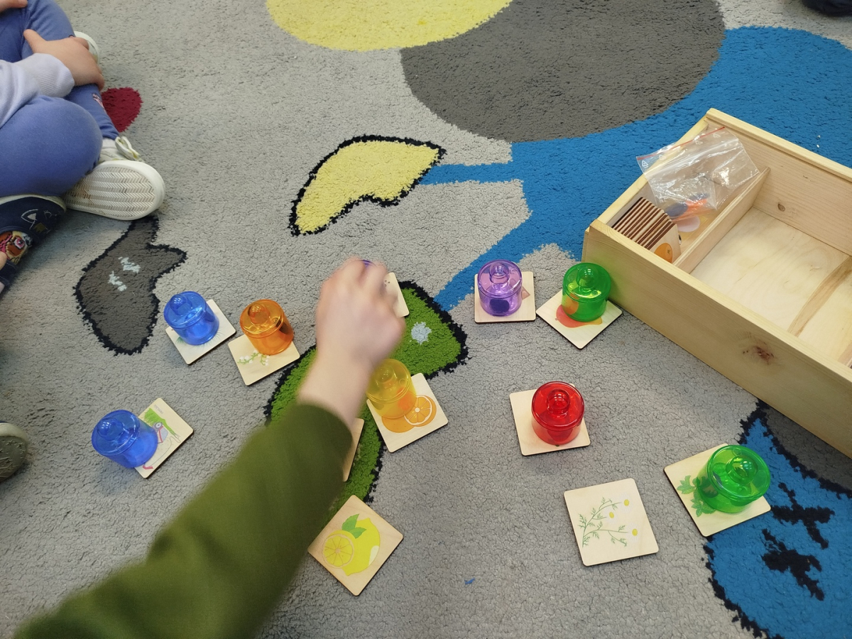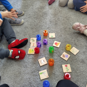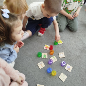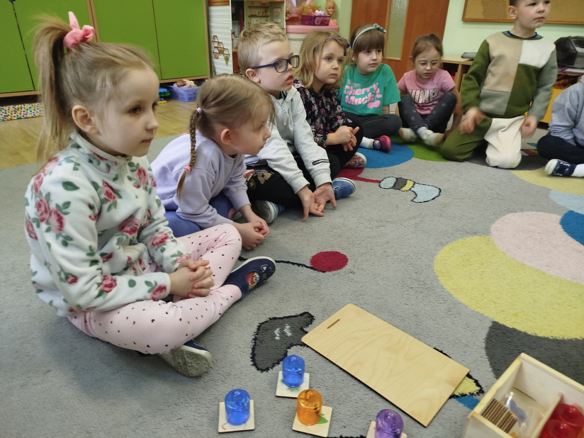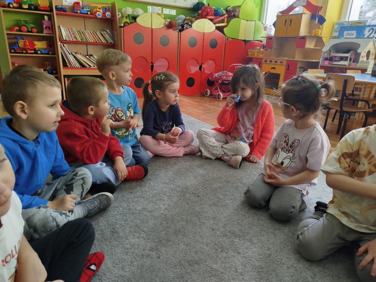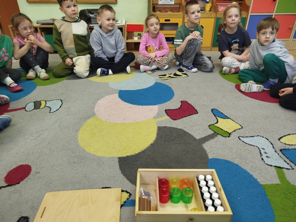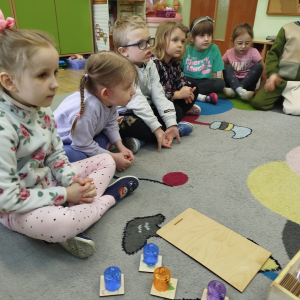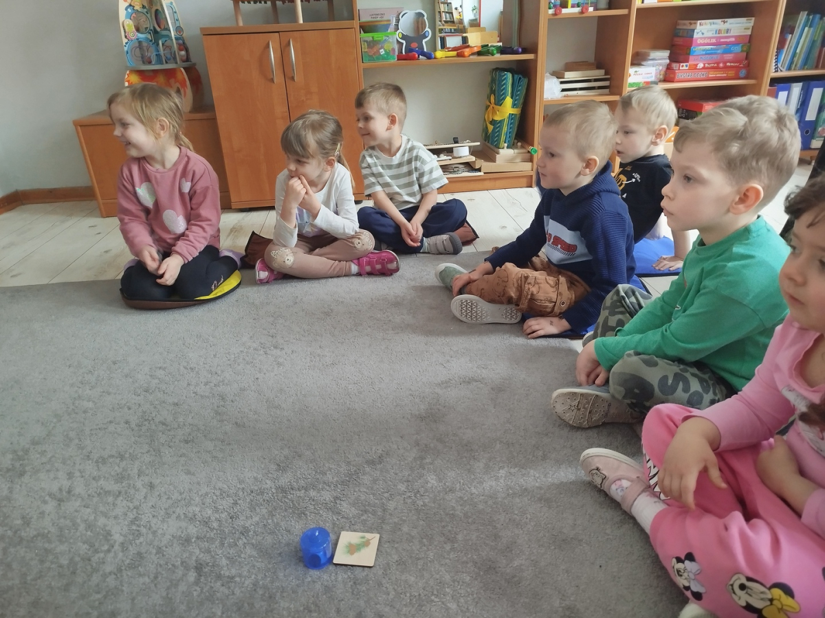 Nasze zajęcia rozpoczęły się wierszykiem o oddychaniu. Następnie odbyła się rozmowa „Do czego jest nam potrzebny nos?”. Po tej rozmowie pani Ania pokazała dzieciom tajemnicze pudełko – „Skrzynka zapachów”. W skrzynce znajdowały się słoiczki z różnymi zapachami i obrazki. Zadaniem dzieci było dobranie zapachu do obrazka.