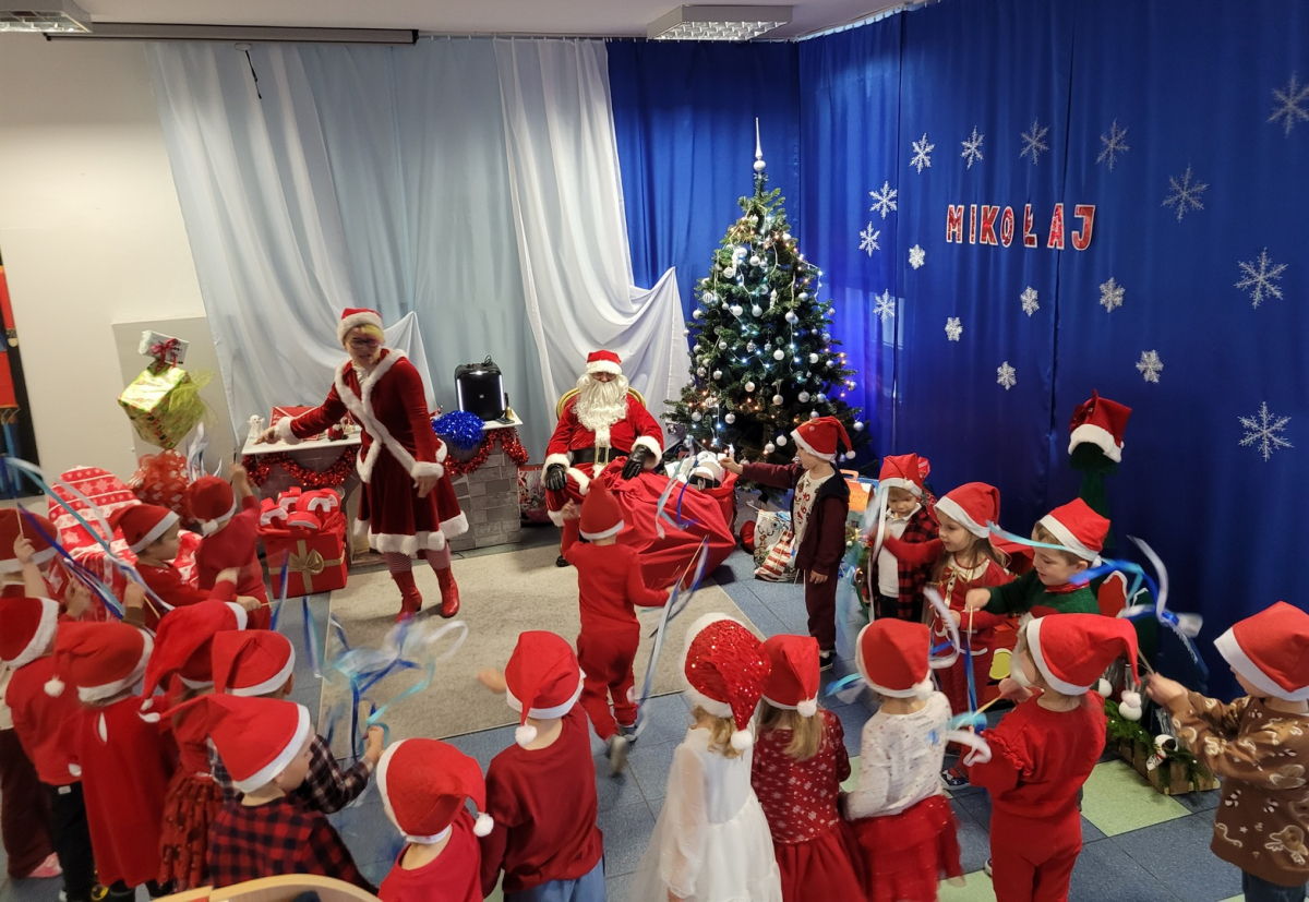 5 grudnia nasze przedszkole odwiedził Święty Mikołaj. Aby podkreślić wyjątkowy charakter tego wydarzenia wszystkie Biedronki ubrały się w czerwone stroje i mikołajkowe czapeczki. Piękny wystrój korytarza oraz muzyczna oprawa sprawiły, że był to dzień niezwykle magiczny, pełen wrażeń. Wszystkie dzieci otrzymały od Świętego Mikołaja wspaniałe prezenty. Ten wspaniały dzień upływał nam w bardzo miłej atmosferze i przyniósł dzieciom wiele radości. Drogi Mikołaju bardzo dziękujemy za odwiedziny i do zobaczenia za rok!