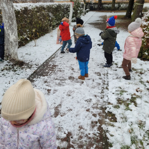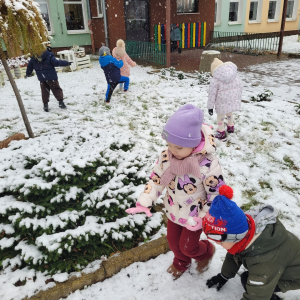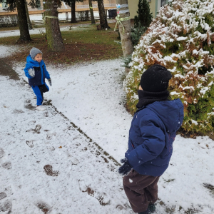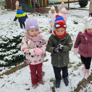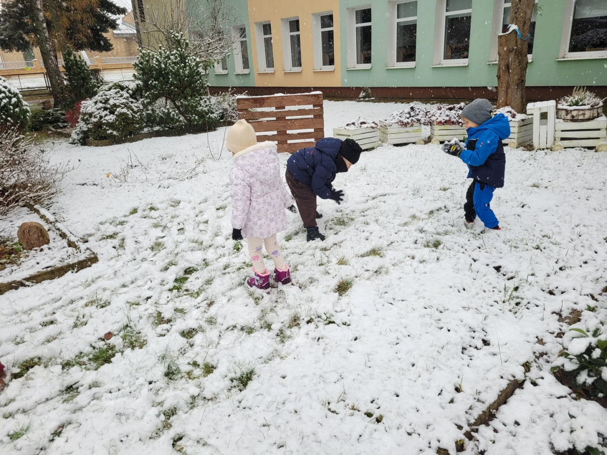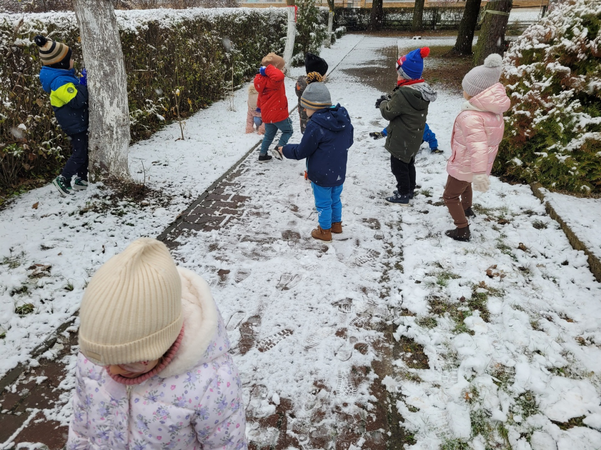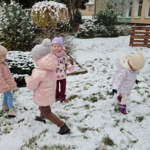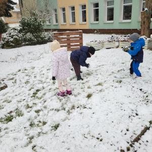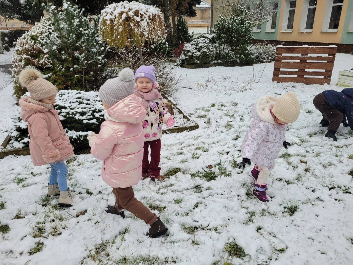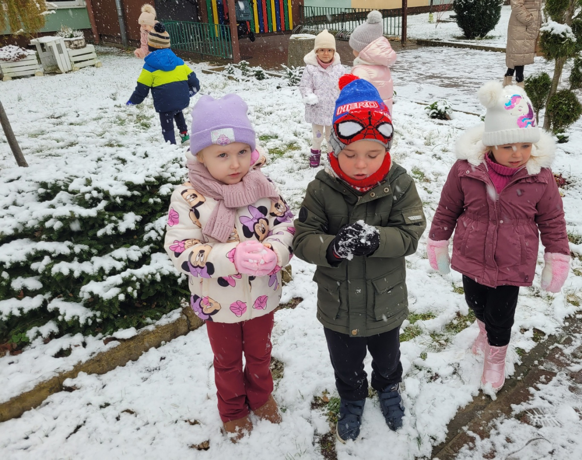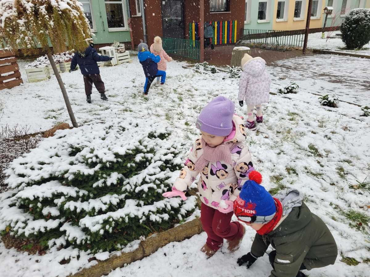 Dziś w naszym ogrodzie przedszkolnym pojawił się pierwszy śnieg, który wywołał u dzieci ogromną radość! Przedszkolaki z entuzjazmem wybiegły na dwór, aby bawić się w zimowej scenerii. Lepienie pierwszych kulek śnieżnych, pozostawianie śladów na miękkim puchu oraz wspólne odkrywanie zimowych zabaw sprawiły wszystkim wiele uśmiechu.