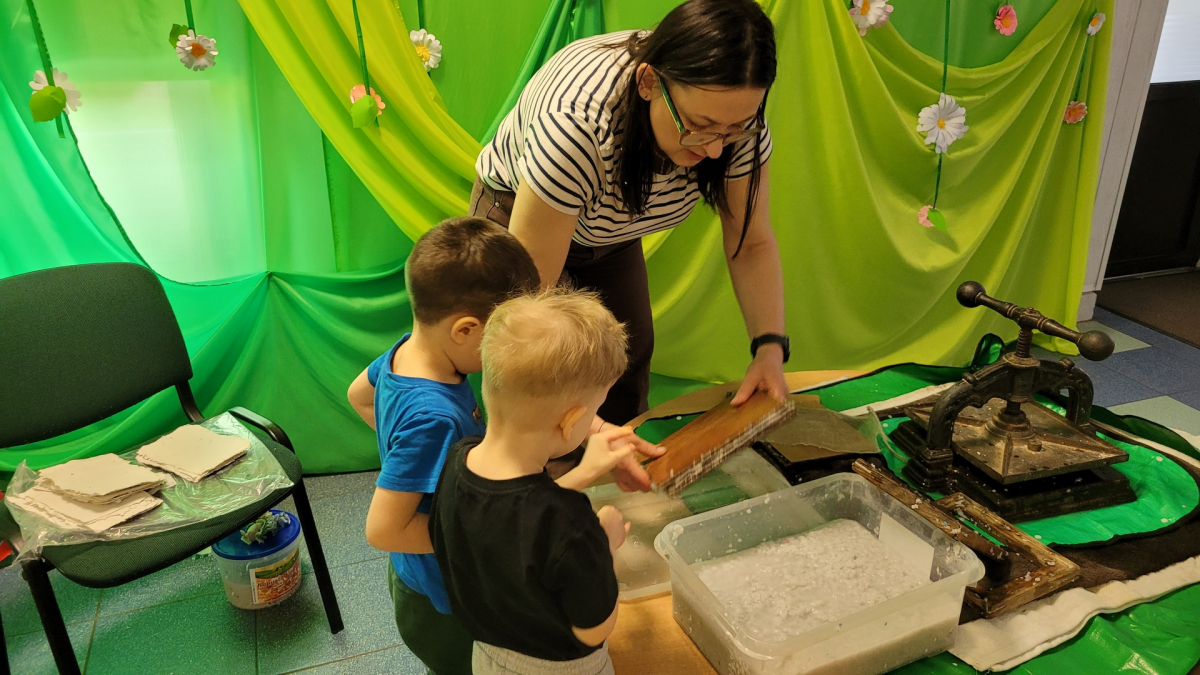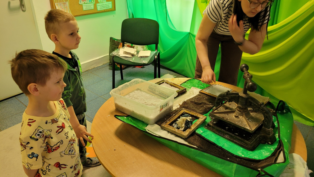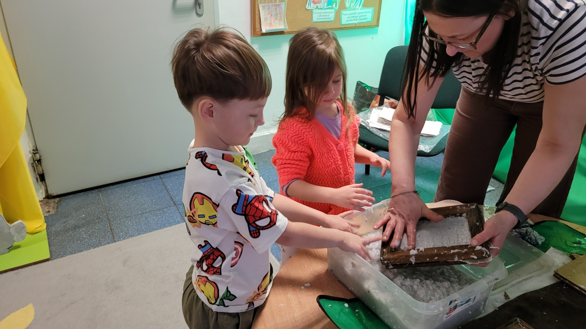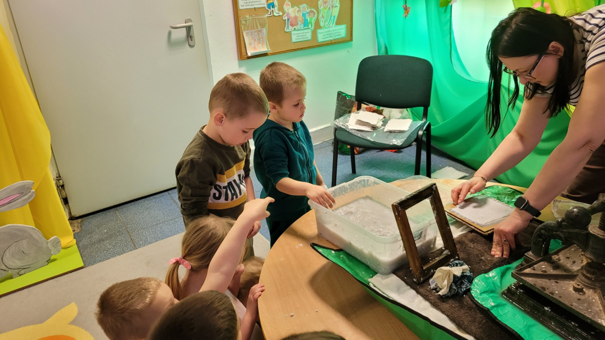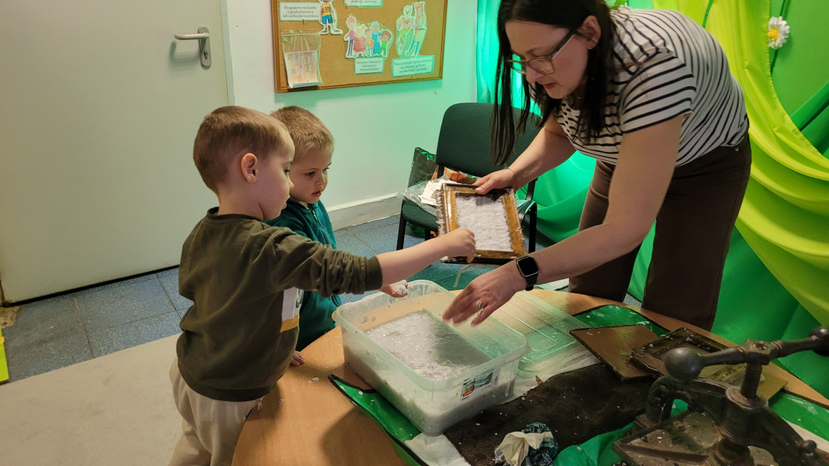 Dziś w naszym przedszkolu odbyły się kreatywne zajęcia rękodzielnicze - czerpanie papieru z pulpy makulaturowej. Pani Zosia w ciekawy sposób zapoznała nas z historią powstania papieru. W efekcie naszych działań powstał unikalny, ekologiczny papier o charakterystycznych, nierównych brzegach. Było twórczo, sensorycznie i radośnie.