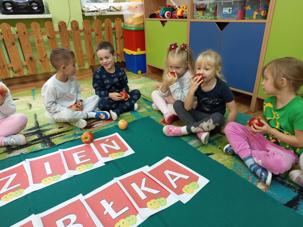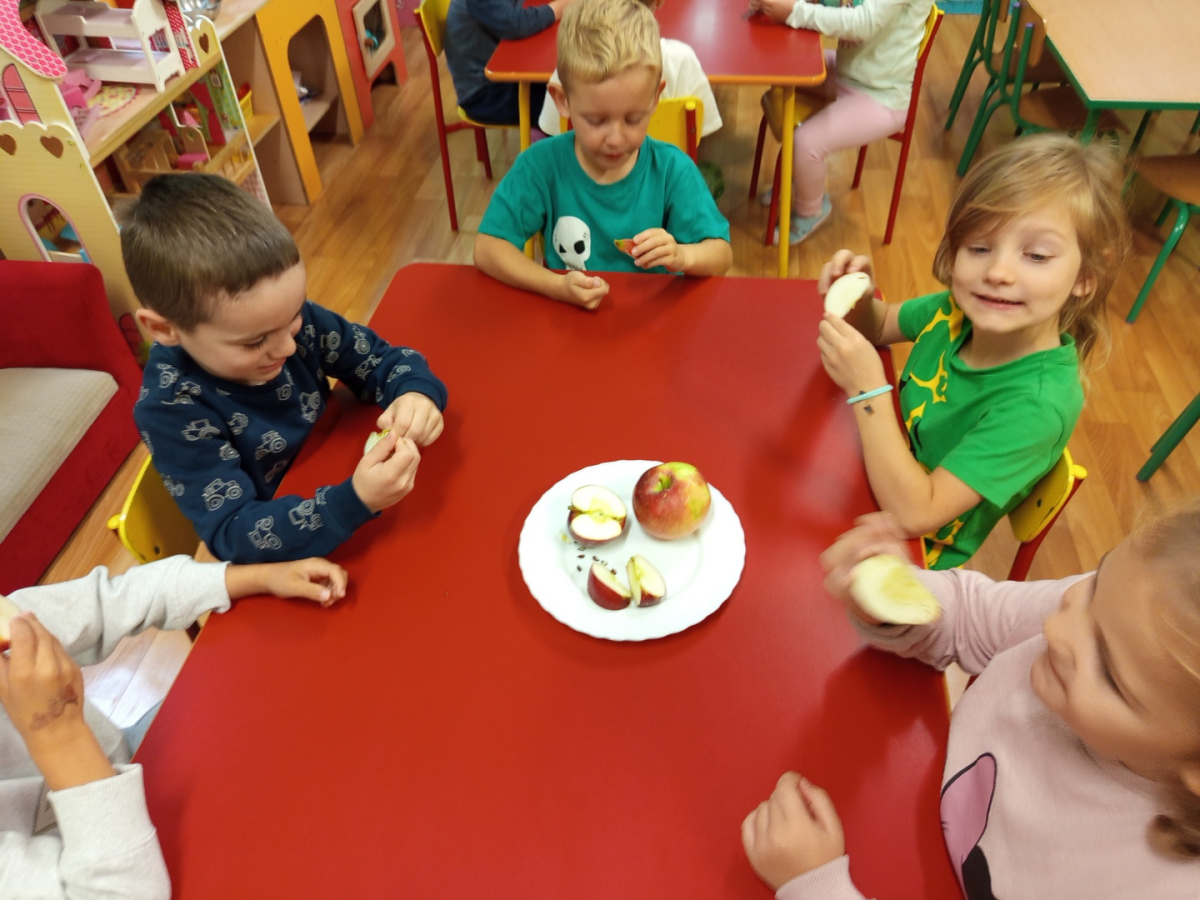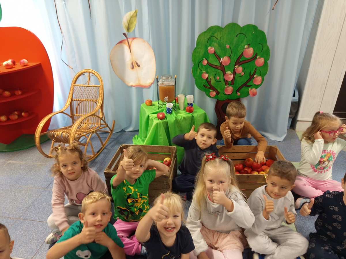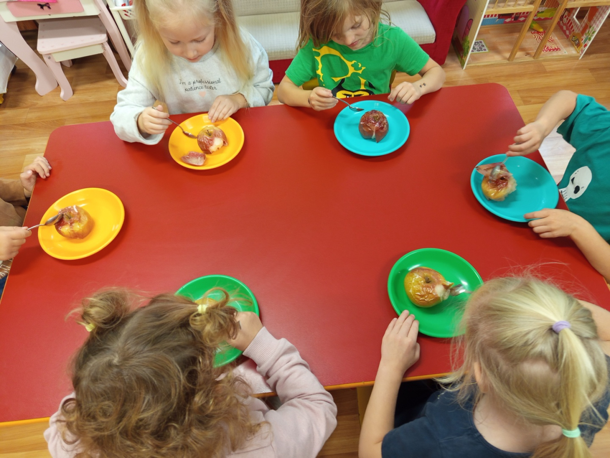 W poniedziałek 29 września świętowaliśmy Dzień Jabłka. Jego celem jest propagowanie spożywania jabłek, promowanie zdrowego stylu życia i wyrabiania dobrych nawyków żywieniowych. Tego dnia dzieci degustowały pieczone jabłka, piły kompot jabłkowy. Przedszkolaki wiedzą, że jabłka mają wiele witamin dlatego chętnie je spożywają.