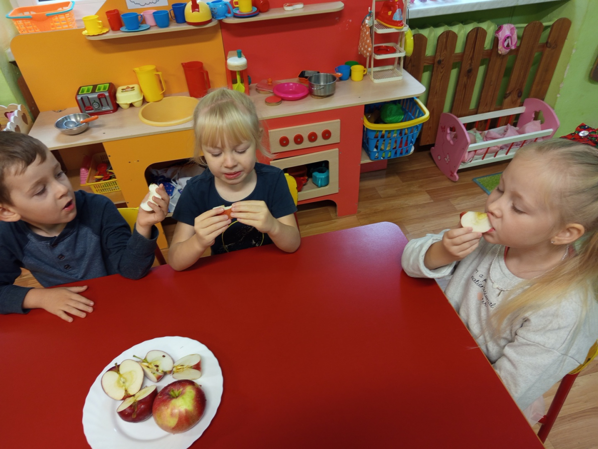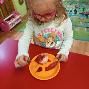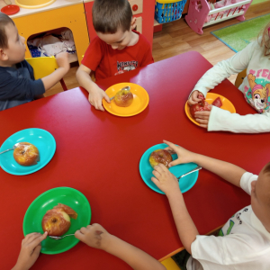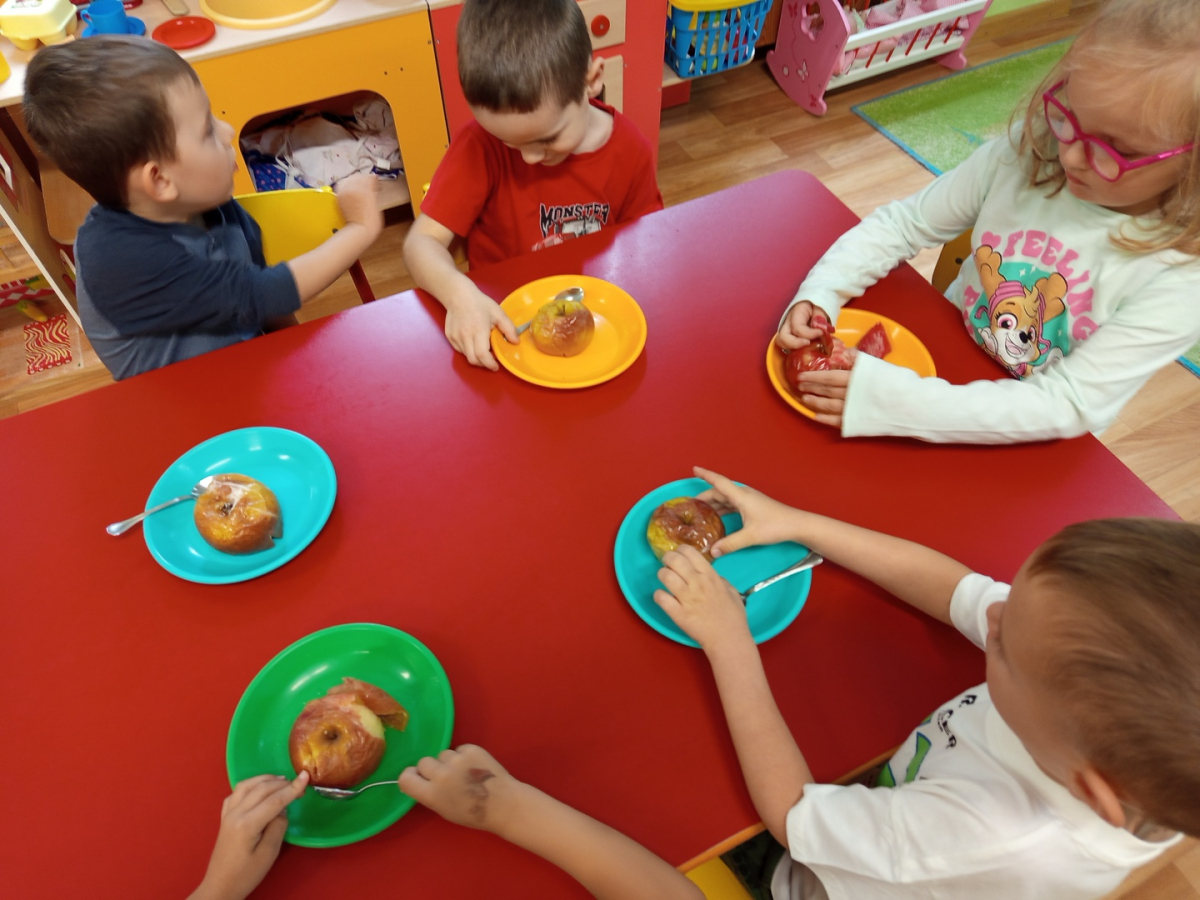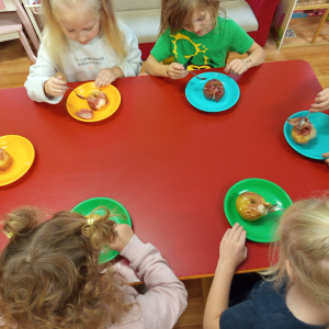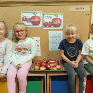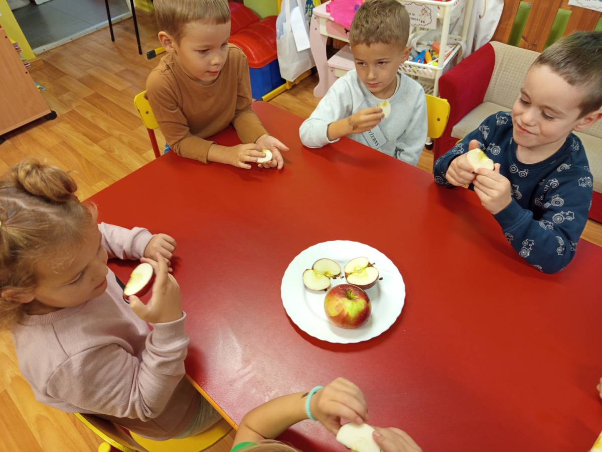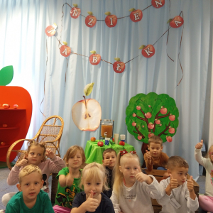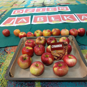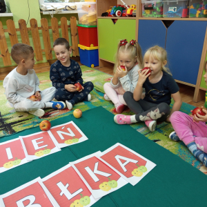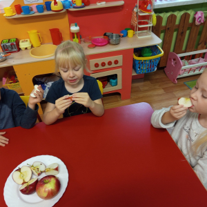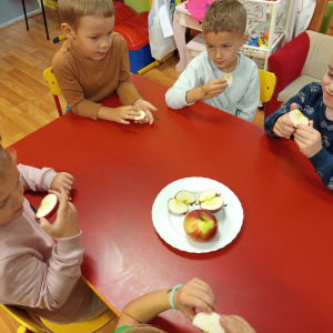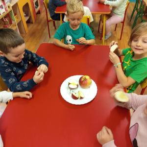 W poniedziałek 29 września świętowaliśmy Dzień Jabłka. Jego celem jest propagowanie spożywania jabłek, promowanie zdrowego stylu życia i wyrabiania dobrych nawyków żywieniowych. Tego dnia dzieci degustowały pieczone jabłka, piły kompot jabłkowy. Przedszkolaki wiedzą, że jabłka mają wiele witamin dlatego chętnie je spożywają.