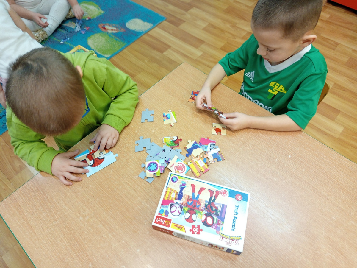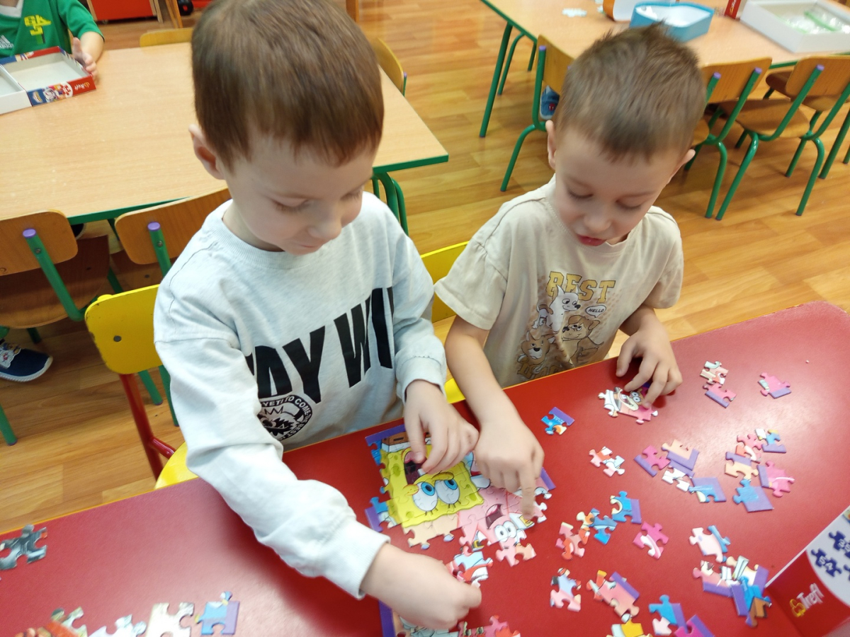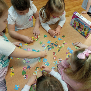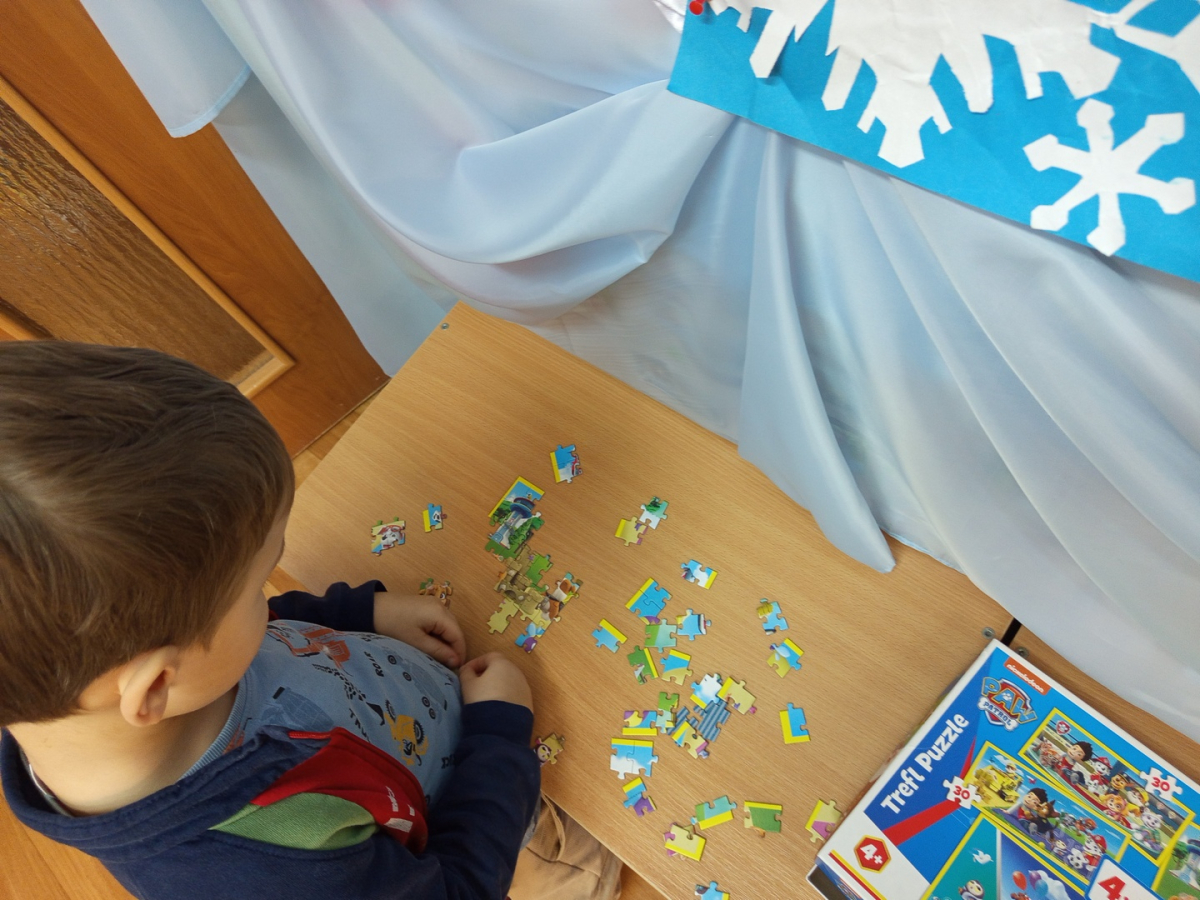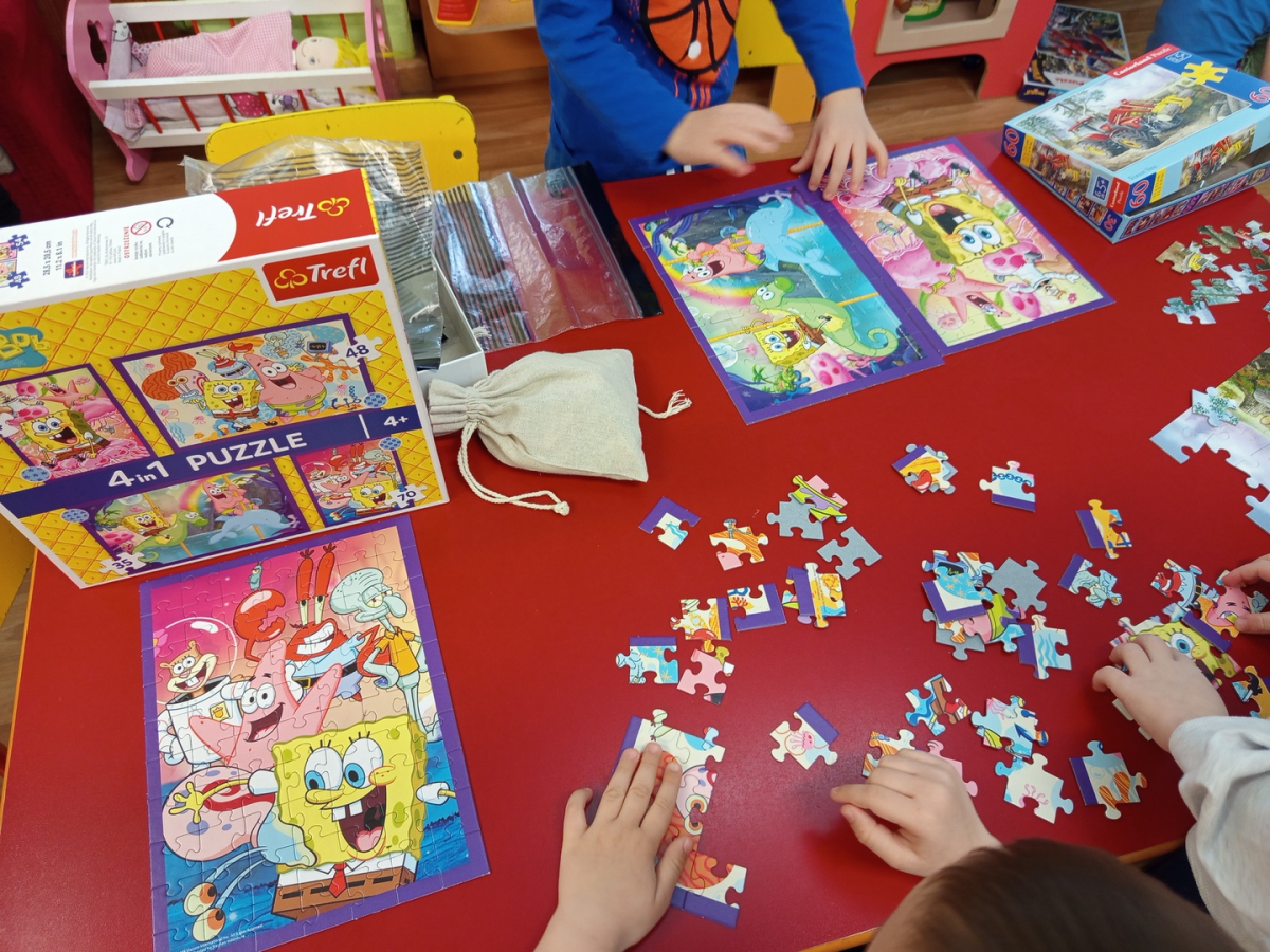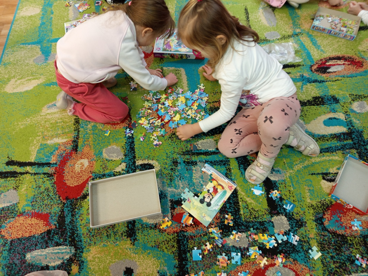 29 stycznia w naszym przedszkolu obchodziliśmy Międzynarodowy Dzień Puzzli. Jak wiadomo, układanie puzzli to świetna zabawa, która posiada walory edukacyjne. To znakomity trening pamięci i koncentracji. Ponadto stymuluje rozwój mózgu oraz ćwiczy spostrzegawczość. Nasze przedszkolaki w tym dniu mogły przynieść do przedszkola swoje ulubione puzzle. Były to puzzle różnorodnych rodzajów wielkości. Wspólnymi siłami udało się ułożyć nawet 100 elementów. Wszyscy świetnie się bawili.