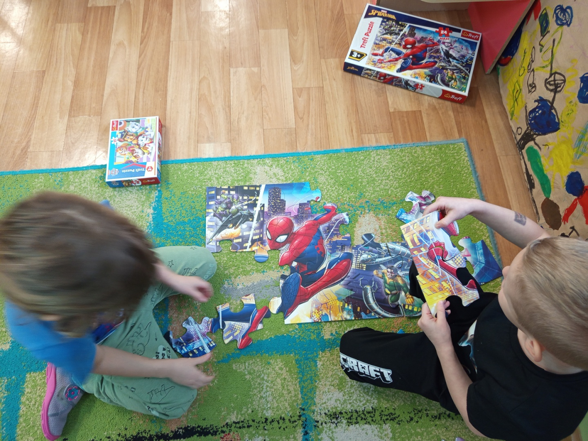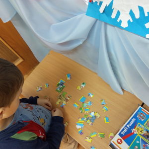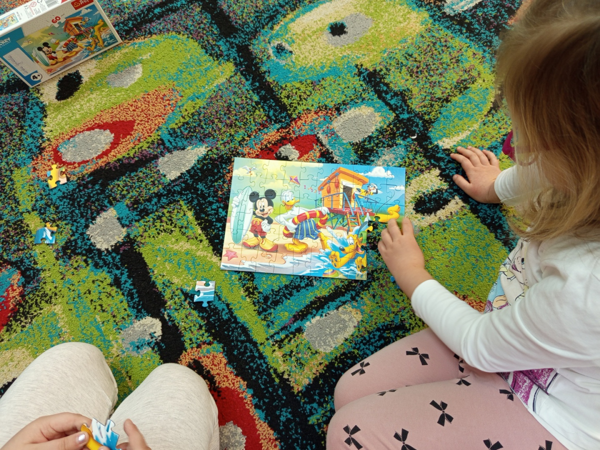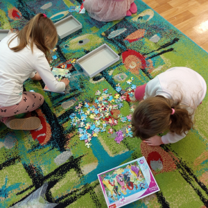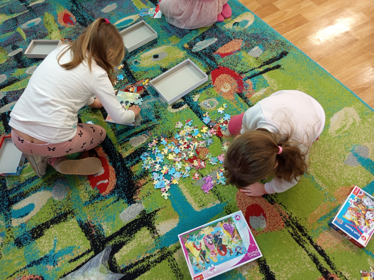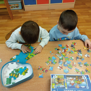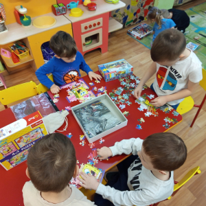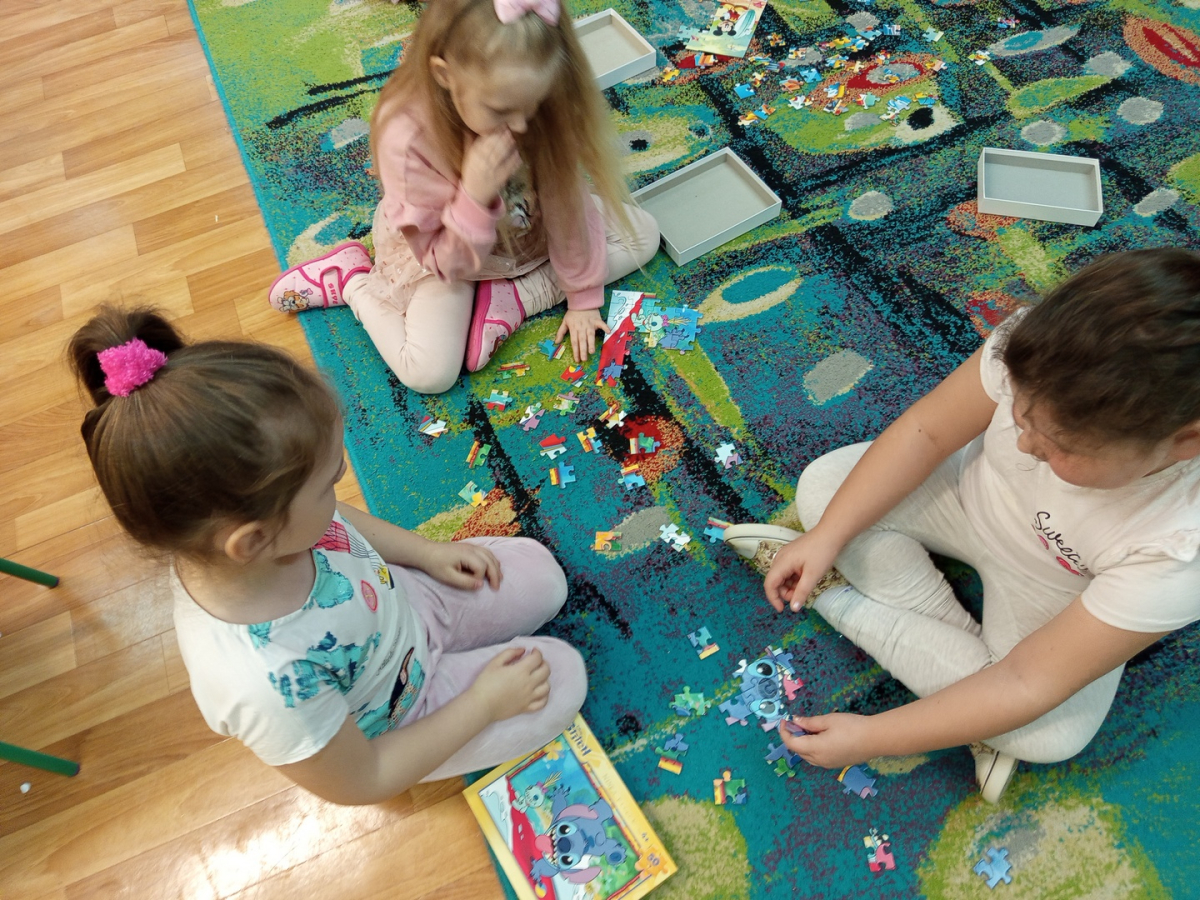 29 stycznia w naszym przedszkolu obchodziliśmy Międzynarodowy Dzień Puzzli. Jak wiadomo, układanie puzzli to świetna zabawa, która posiada walory edukacyjne. To znakomity trening pamięci i koncentracji. Ponadto stymuluje rozwój mózgu oraz ćwiczy spostrzegawczość. Nasze przedszkolaki w tym dniu mogły przynieść do przedszkola swoje ulubione puzzle. Były to puzzle różnorodnych rodzajów wielkości. Wspólnymi siłami udało się ułożyć nawet 100 elementów. Wszyscy świetnie się bawili.