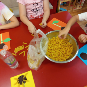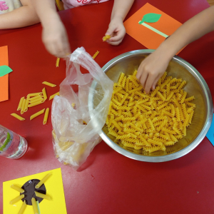 Kreatywność to zdolność tworzenia czegoś nowego i oryginalnego, co może przybierać formę nowych pomysłów, rozwiązań, wytworów artystycznych. Takie właśnie były zajęcia z wykorzystaniem makaronu. Dzieci tworzyły piękne kwiaty.