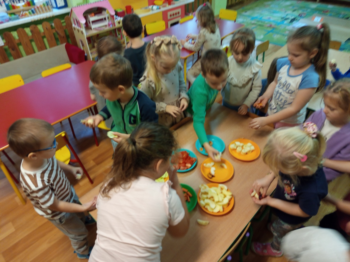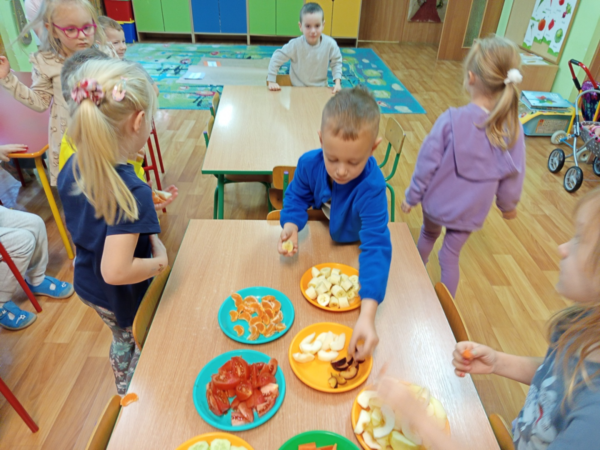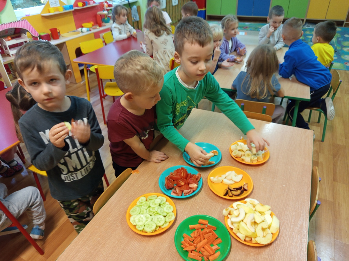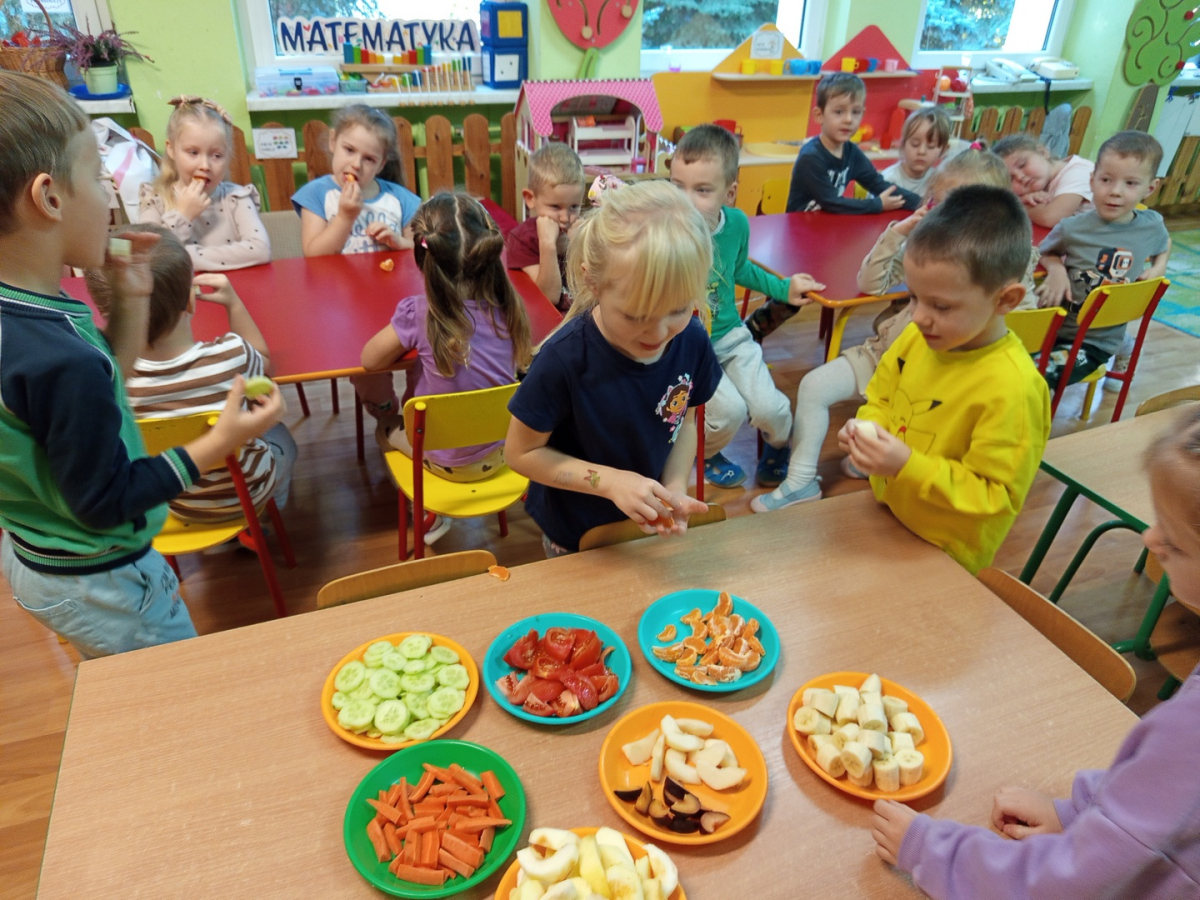 20 pażdziernika przypada Światowy Dzień Owoców i Warzyw. To dobra okazja by przypomnieć o istotnej roli tych produktów w naszej diecie. Możemy je spożywać na surowo, ugotowane czy w formie przetworów. Misie w tym dniu przyniosły swoje ulubione owoce i warzywa. Dzieci dzieliły ich nazwy na sylaby, przeliczalny oraz degustowały. To był zdrowy i pyszny dzień.