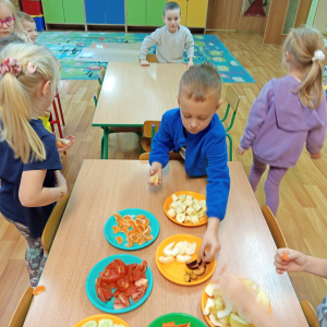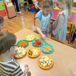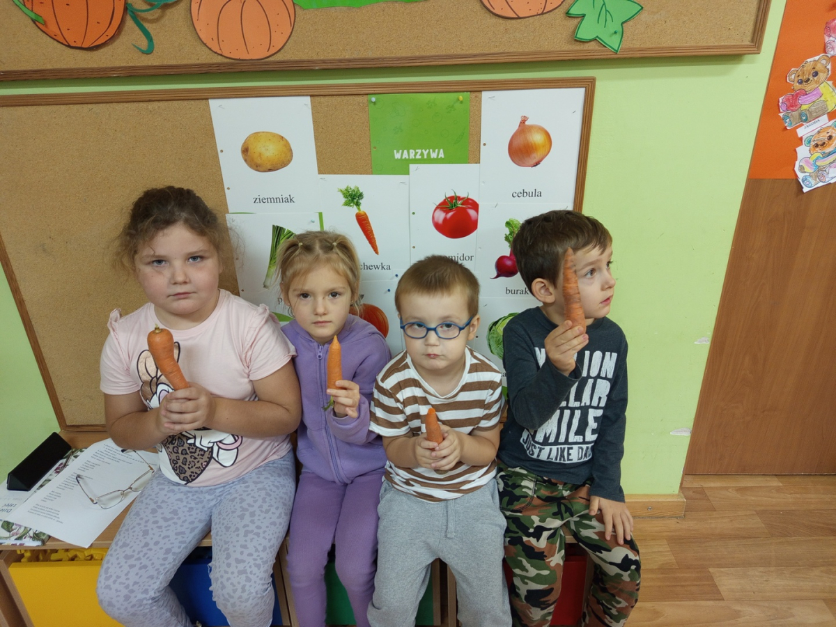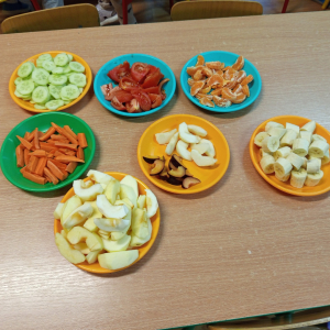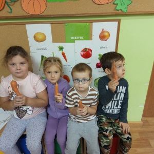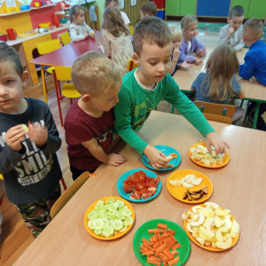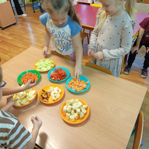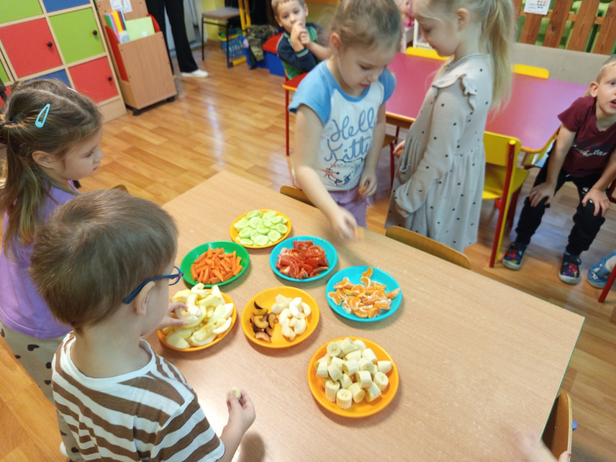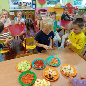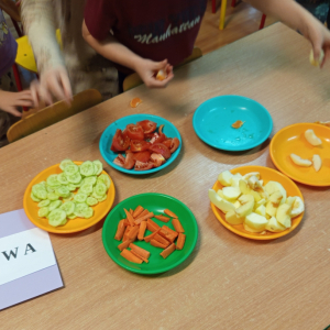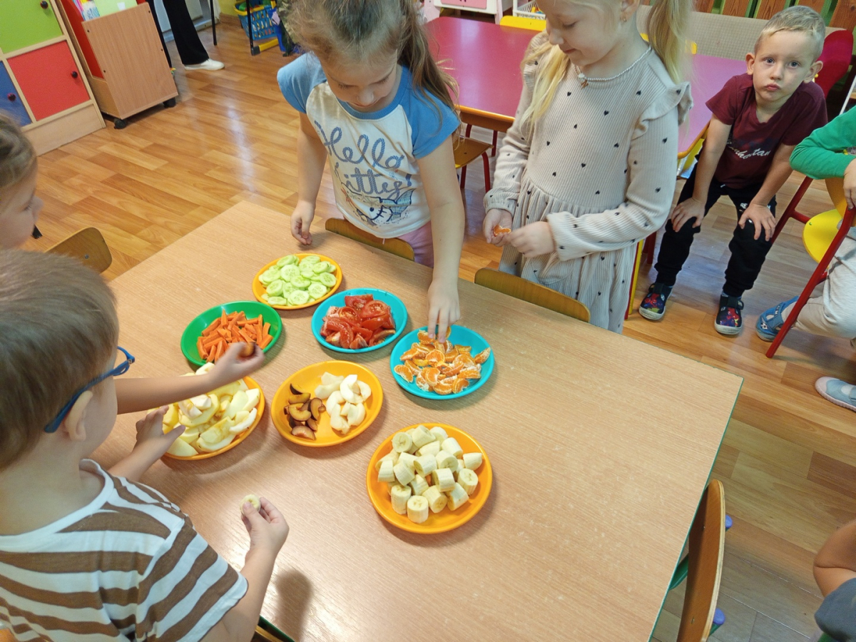 20 pażdziernika przypada Światowy Dzień Owoców i Warzyw. To dobra okazja by przypomnieć o istotnej roli tych produktów w naszej diecie. Możemy je spożywać na surowo, ugotowane czy w formie przetworów. Misie w tym dniu przyniosły swoje ulubione owoce i warzywa. Dzieci dzieliły ich nazwy na sylaby, przeliczalny oraz degustowały. To był zdrowy i pyszny dzień.