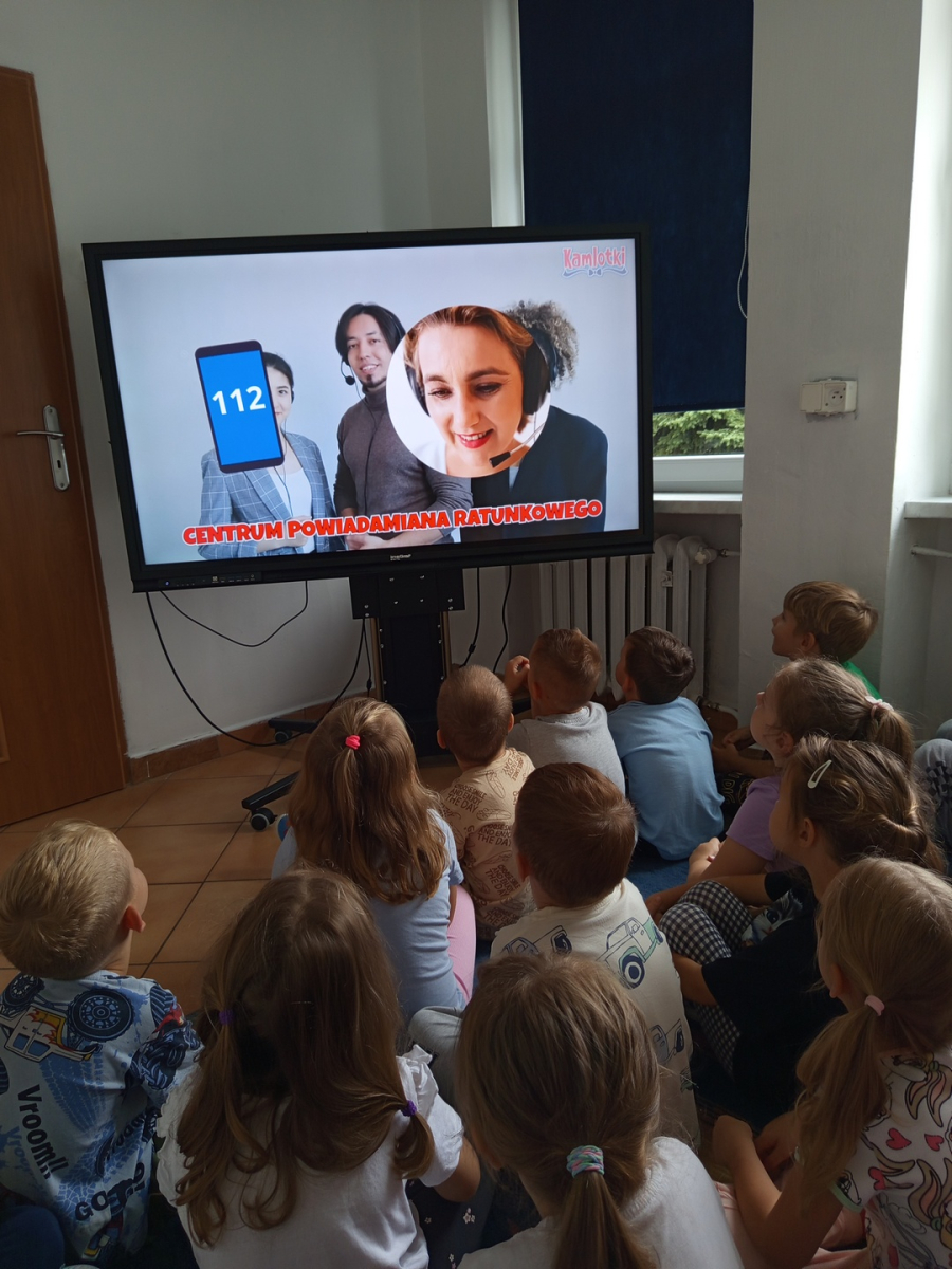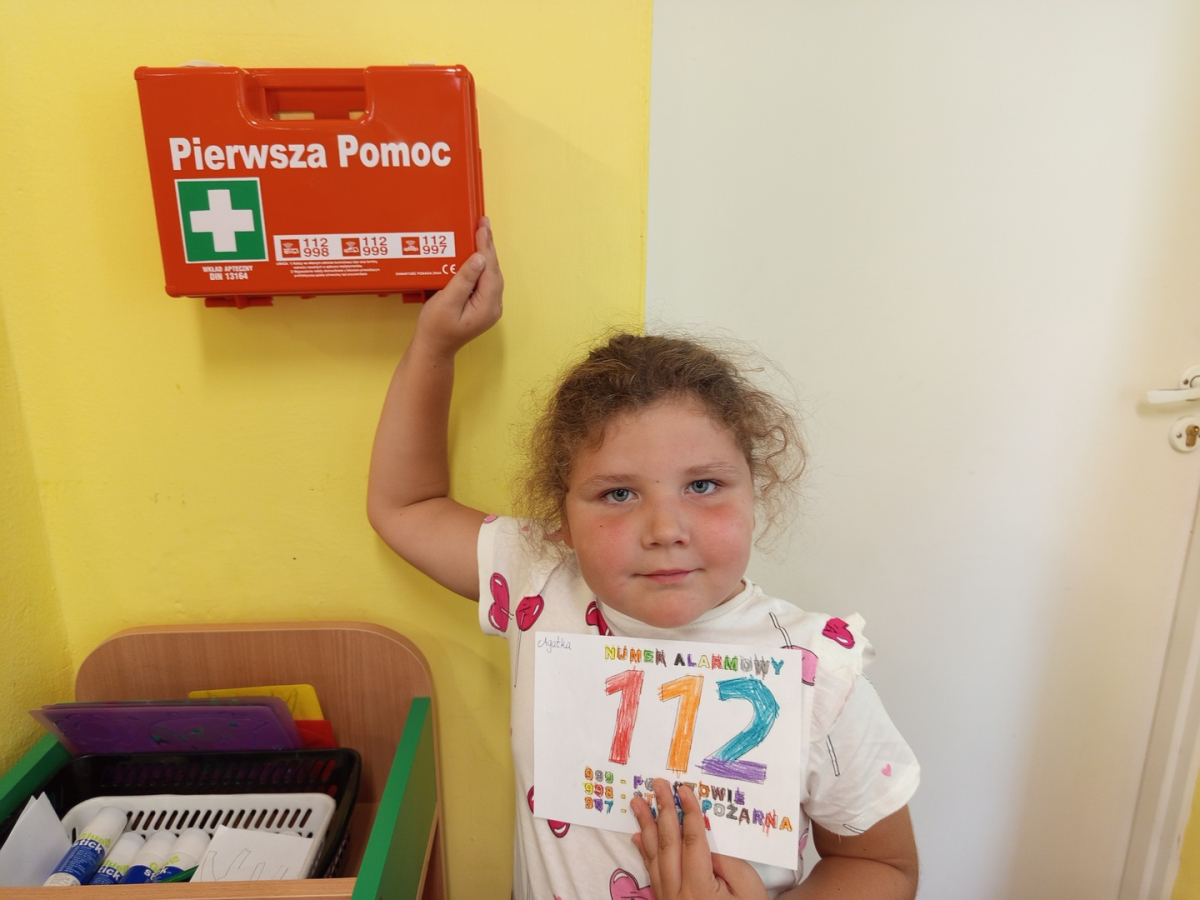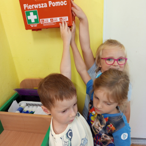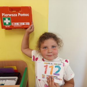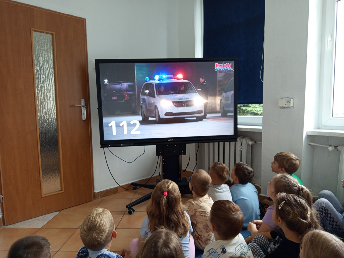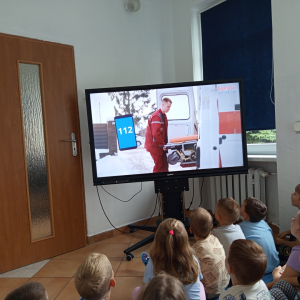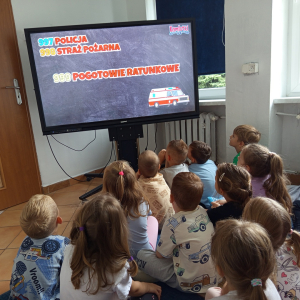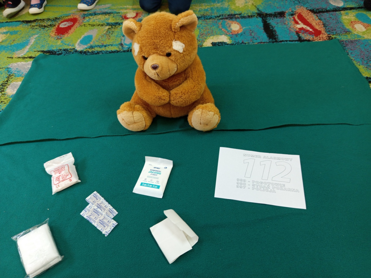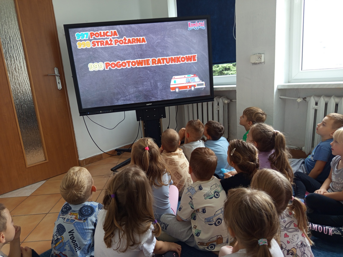 Przedszkolaki obejrzały film edukacyjny, utrwaliły znajomość numerów alarmowych, poznały wyposażenie apteczki, rozmawiały na temat różnych zagrożeń. Dzieci wiedzą, że pierwsza pomoc to nie tylko umiejętność ratowania życia, ale także pomoc w przypadku urazów, złamań czy oparzeń.