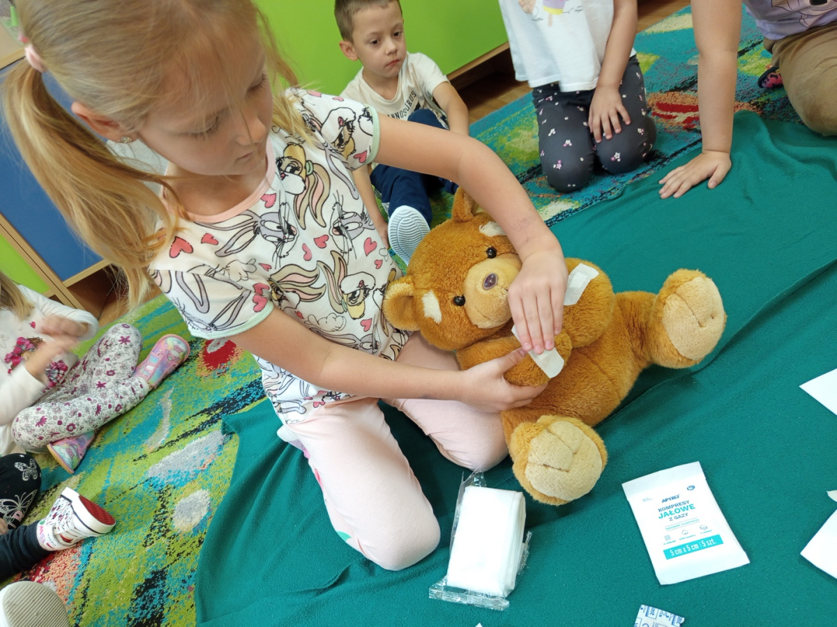 Światowy Dzień Pierwszej Pomocy obchodzimy w drugą sobotę września – ustanowiony został w 2000 roku z inicjatywy Międzynarodowego Ruchu Czerwonego Krzyża. W naszej grupie dzień ten obchodziliśmy 12 września. Święto ma na celu uświadomienie, jak ważna jest umiejętność udzielenia pierwszej pomocy, a także promowanie akcji edukacyjnych wśród dzieci.