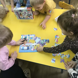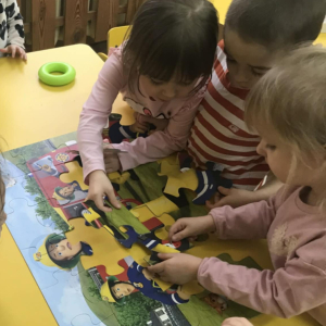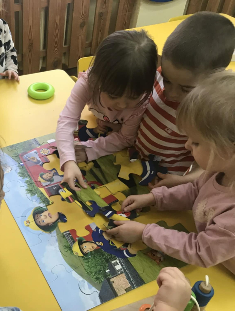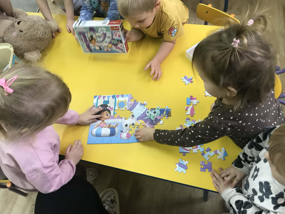 Podczas Dnia Puzzli ,,Pszczółki” uczyły się współpracy, dzielenia się i czerpania radości ze wspólnego działania. Układanie puzzli to świetna zabawa, ćwiczenie koncentracji i współpracy w grupie. Dzieci z zaangażowaniem łączyły elementy, rozwijając spostrzegawczość i cierpliwość.