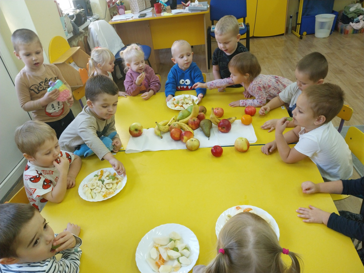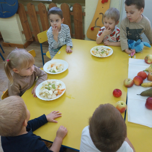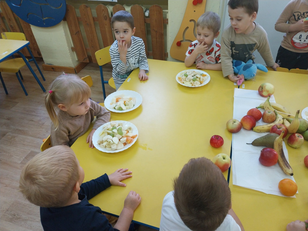 Z okazji Dnia warzyw I owoców Pszczółki wykonały pyszną sałatkę owocową. Przy okazji dowiedzieliśmy się dlaczego jedzenie warzyw I owoców jest takie ważne dla naszego zdrowia. Dziękujemy rodzicom za przygotowanie dzieci do zajęć.