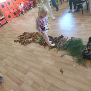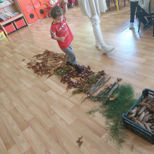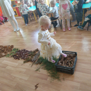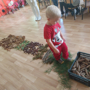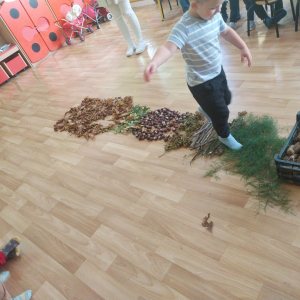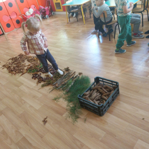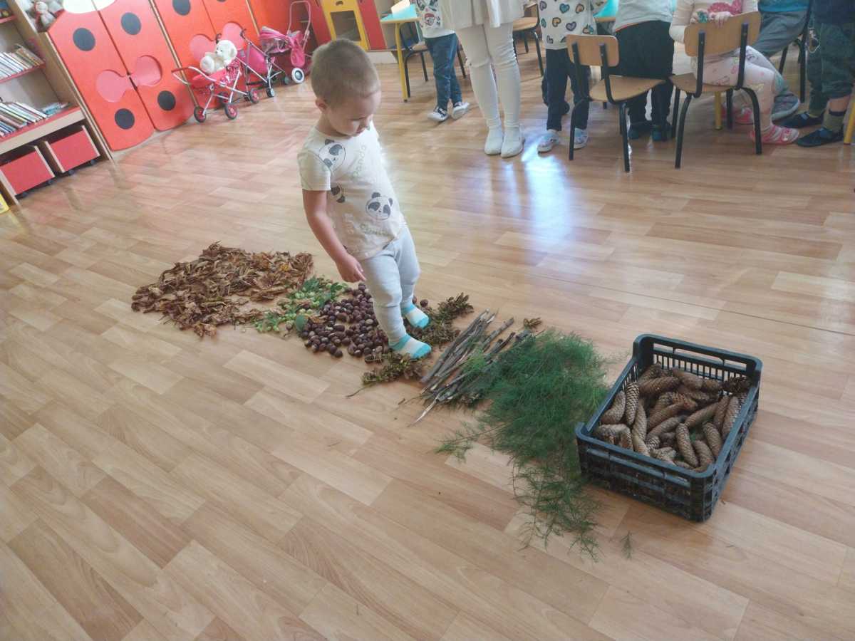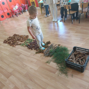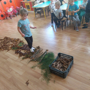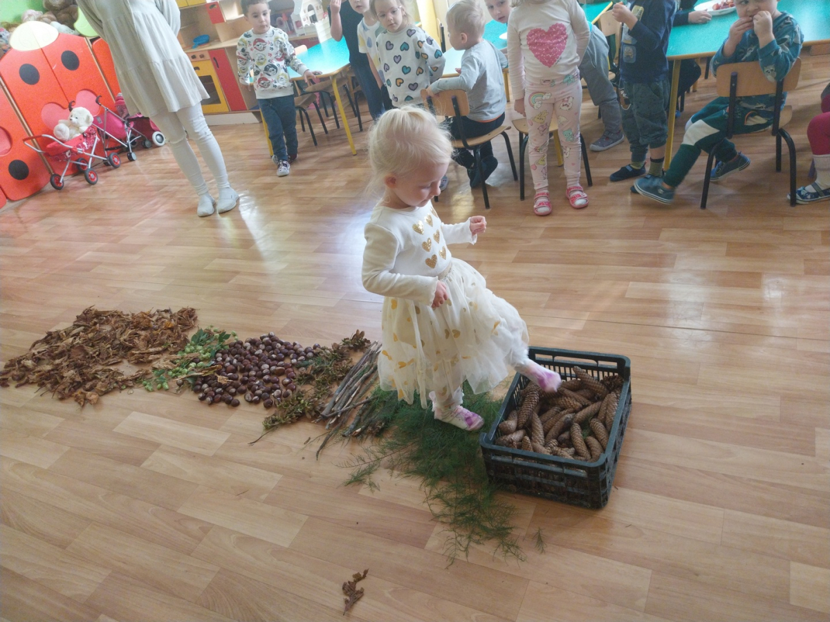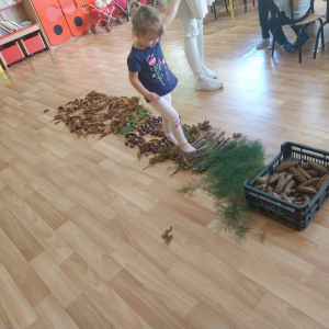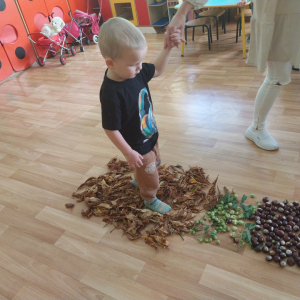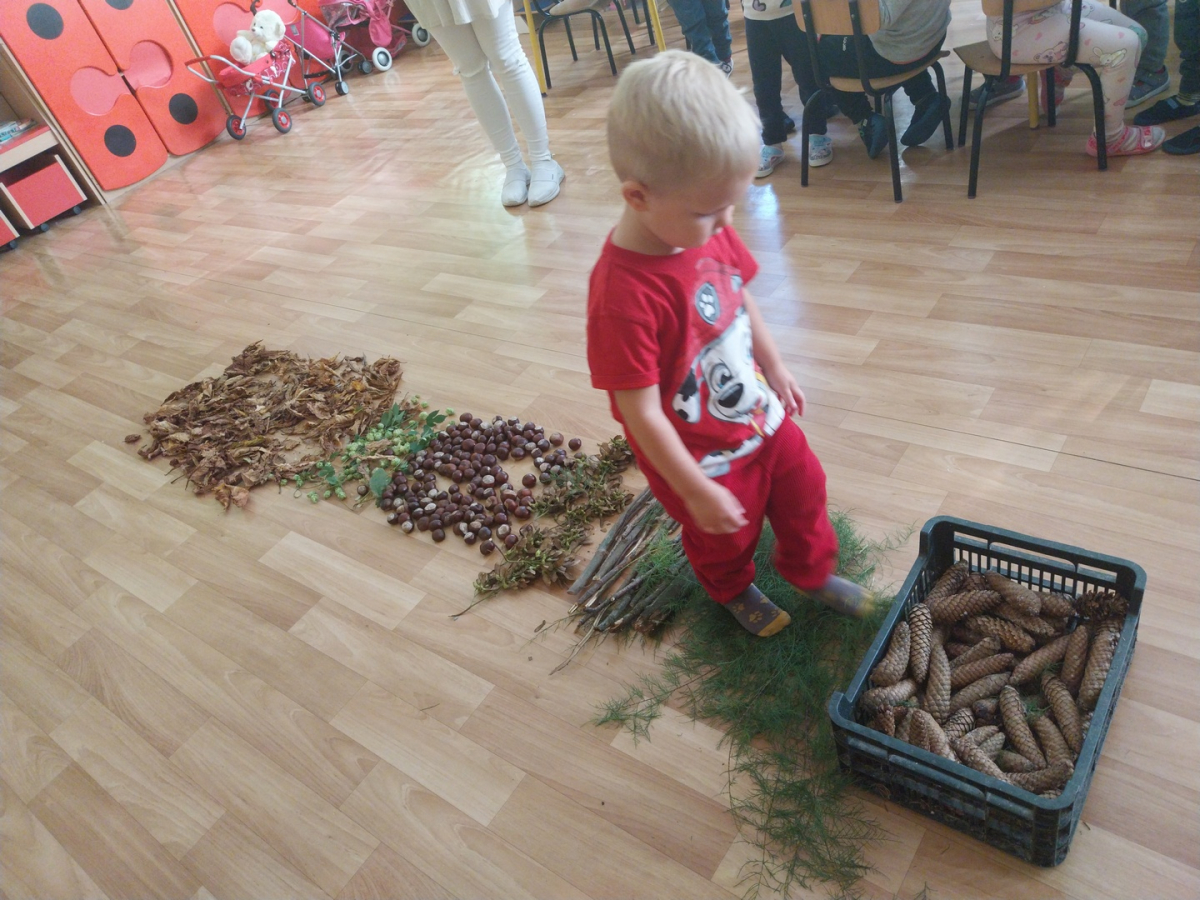 Grupa Biedronki zaprosiła nas na ścieżkę sensoryczną. To nie takie proste przejść beż butów po kasztanach, szyszkach, liściach...ale nam to się udało!