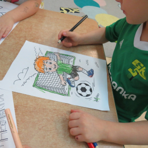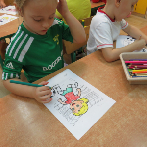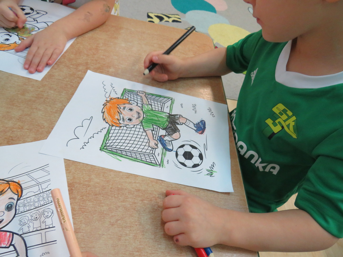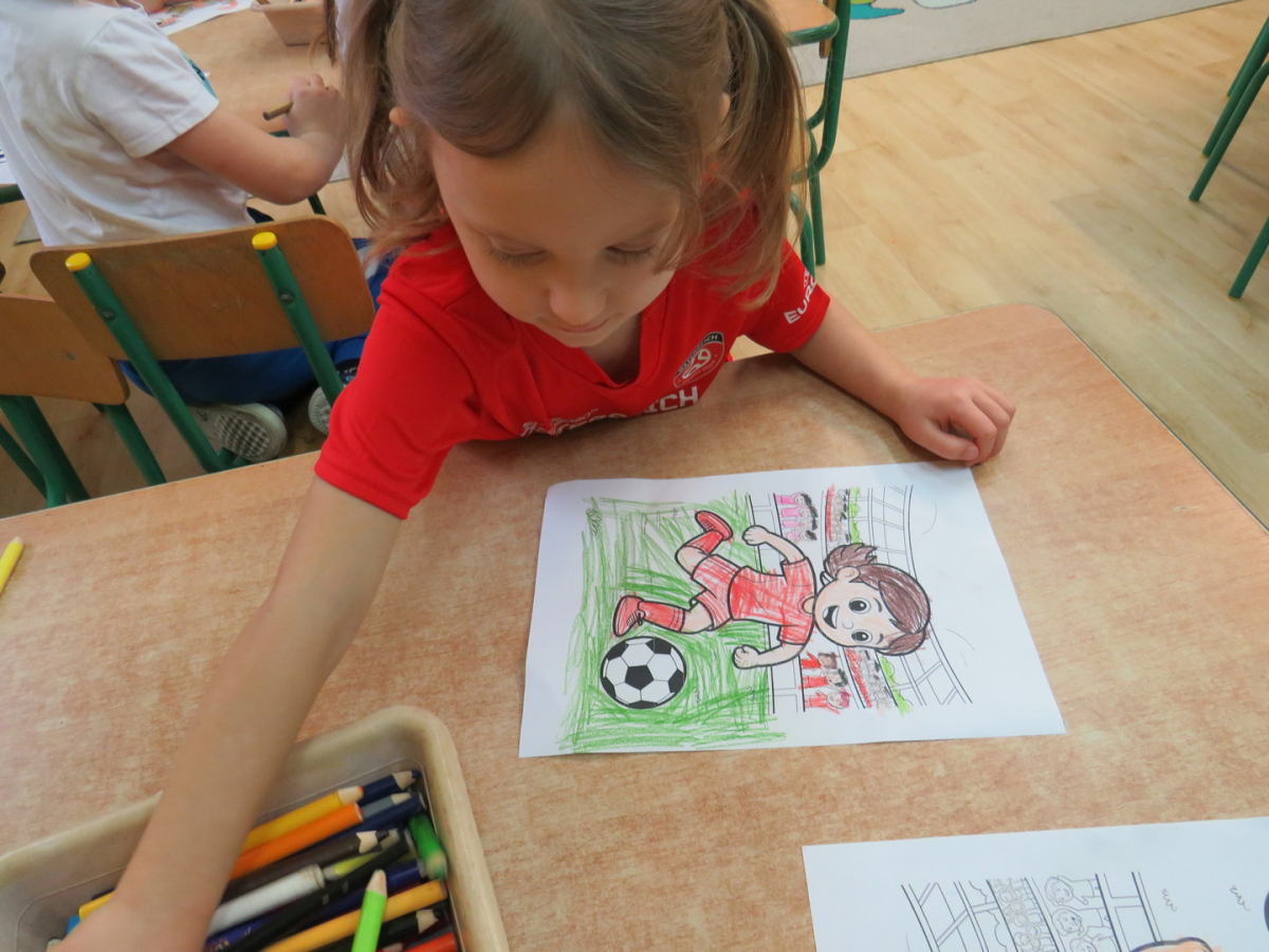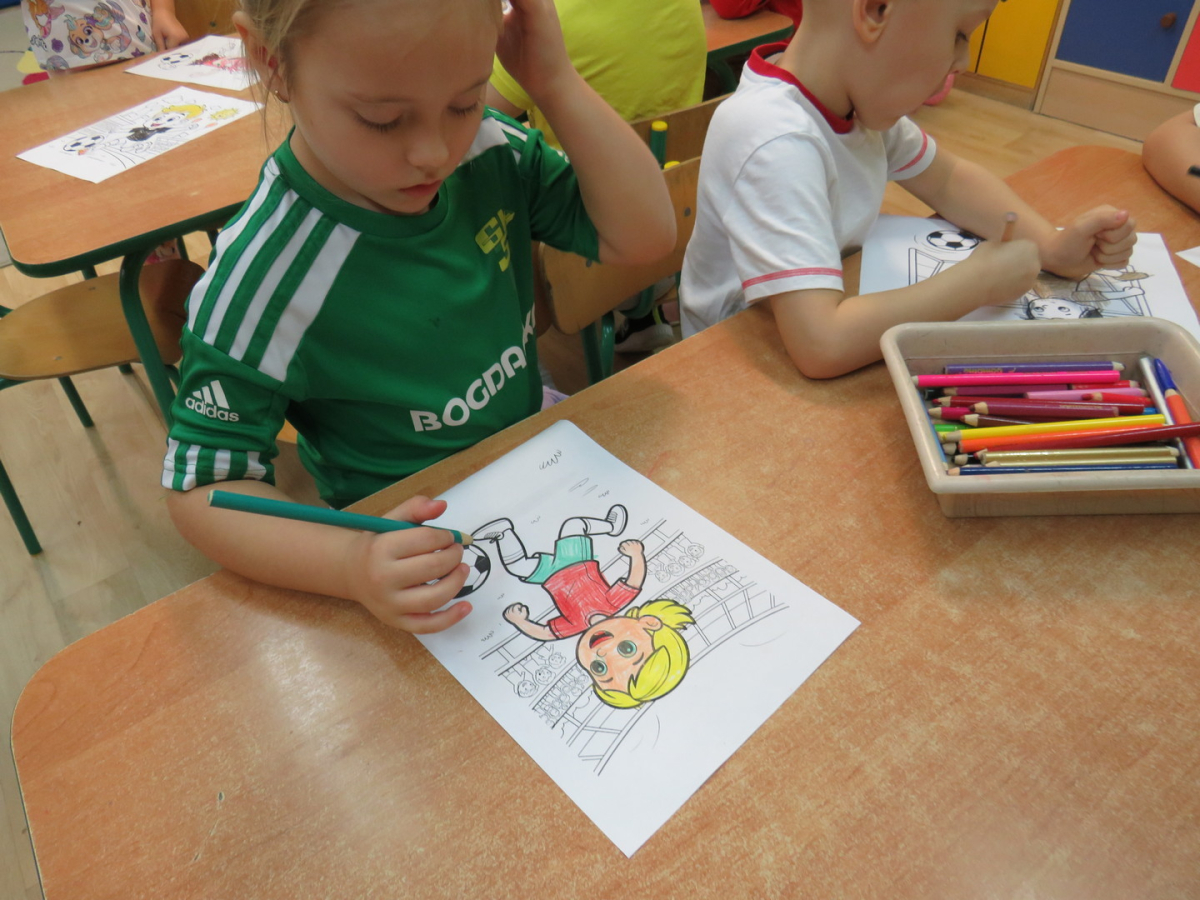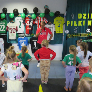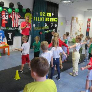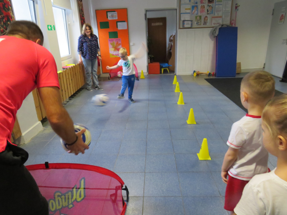 Ten dzień przyniósł dzieciom wiele sportowych atrakcji. Trening piłkarski prowadzony przez pana Piotra Jaroszyńskiego był wymagający ale nikt nie poddawał się i ćwiczył z zapałem. Po rozgrzewce, do bramki raz za razem wpadały piękne gole!