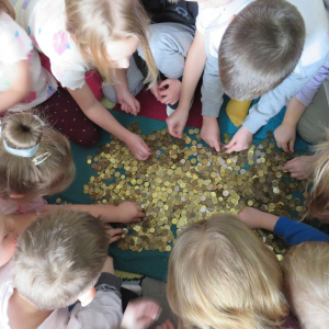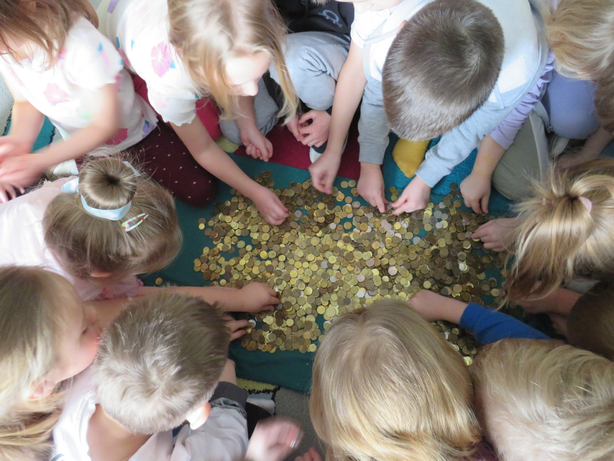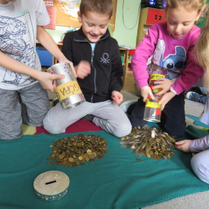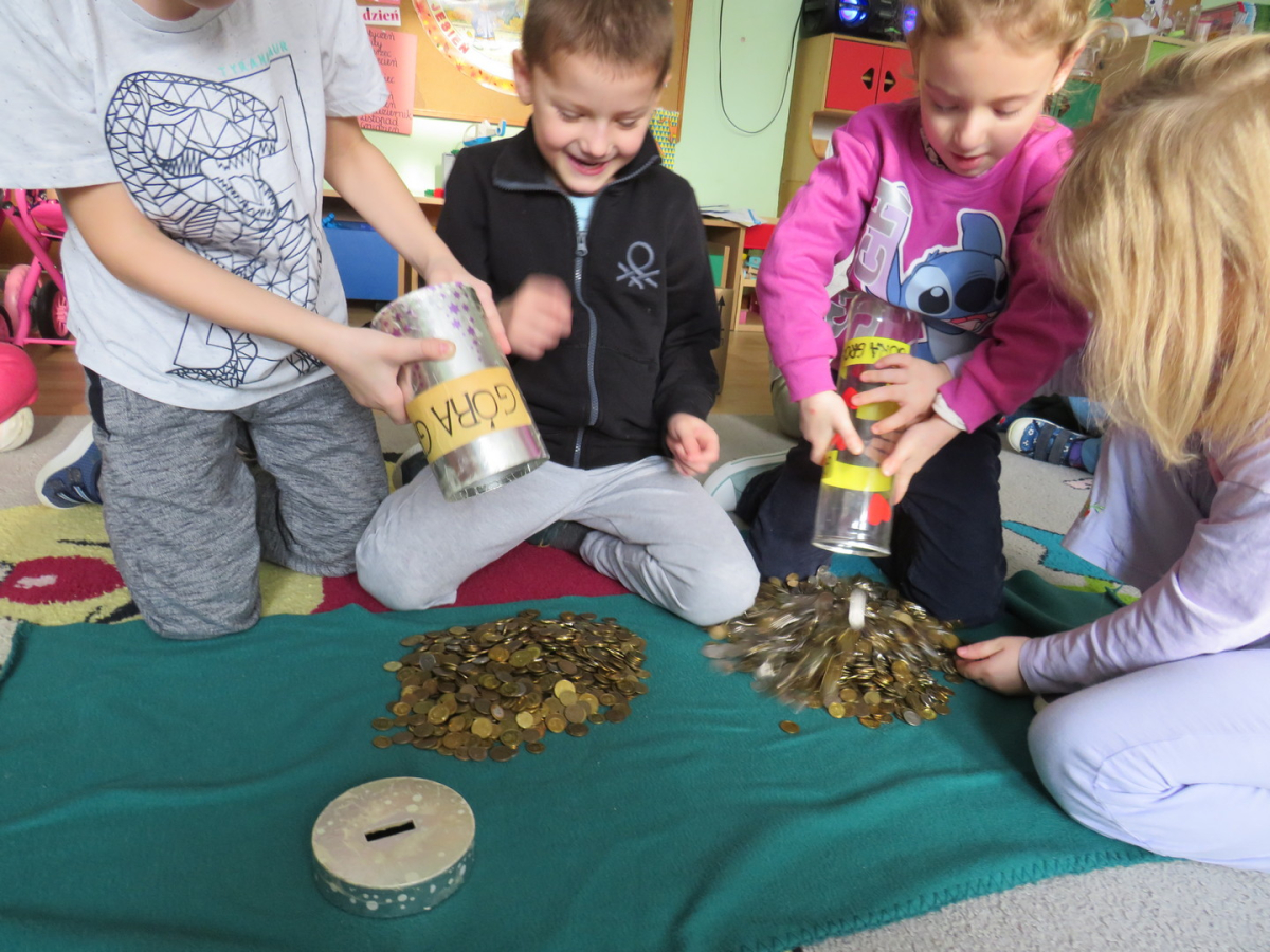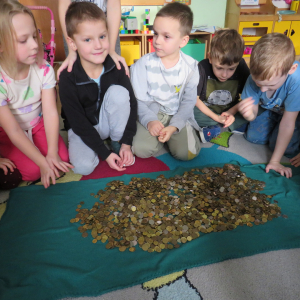 Bardzo dziękujemy wszystkim, którzy przyłączyli się do akcji. Dzieci mogły przekonać się, że zbierając wspólnie drobne monety można zgromadzić "górę pieniędzy", a pomaganie potrzebującym to bardzo ważna sprawa!