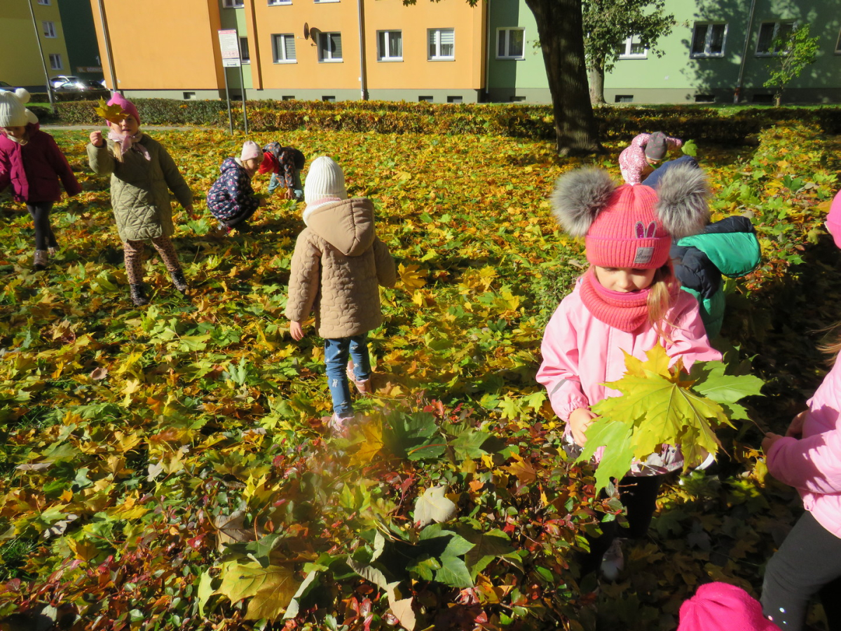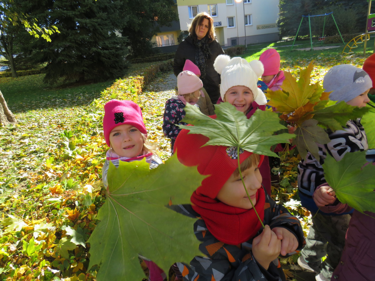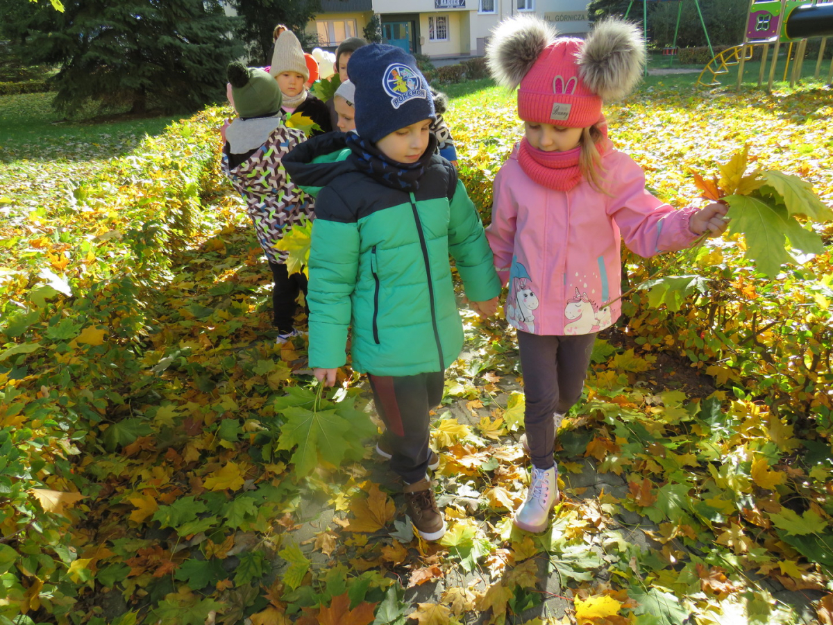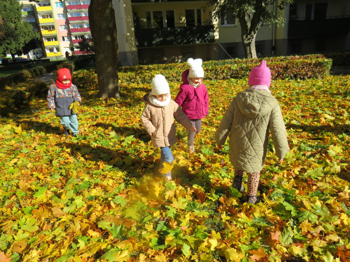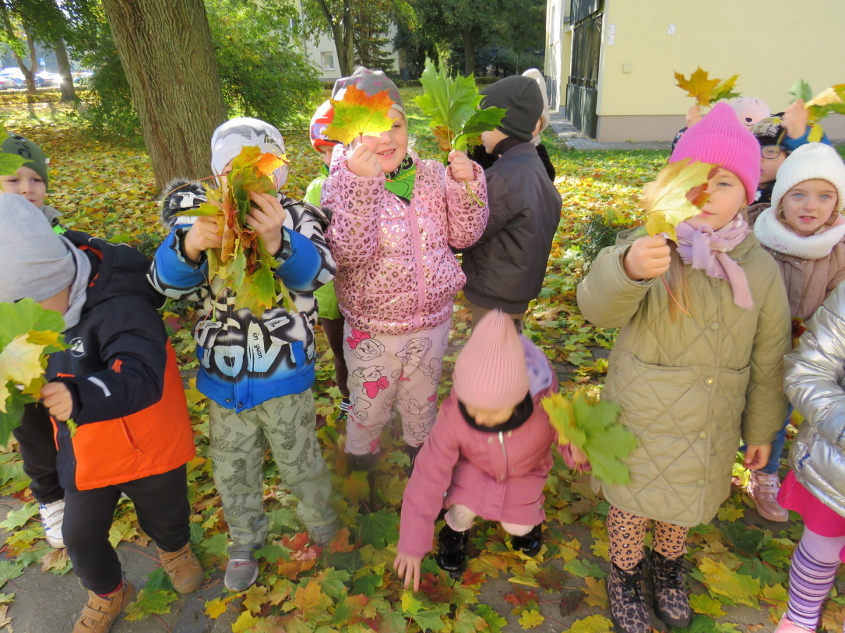 Jesień to piękna i kolorowa pora roku. Podczas spacerów dzieci lubią szukać pod drzewami kolorowych liści. Można tez spotkać ciekawe osoby. Z każdego spaceru przynosimy piękne bukiety oraz miłe wspomnienia.
