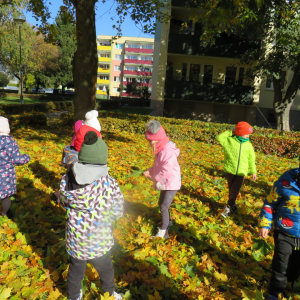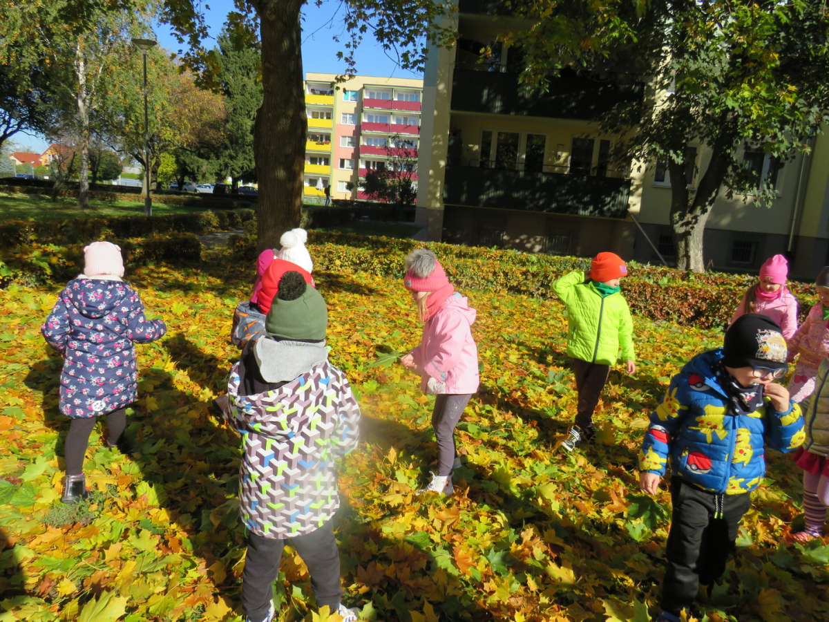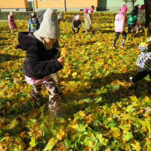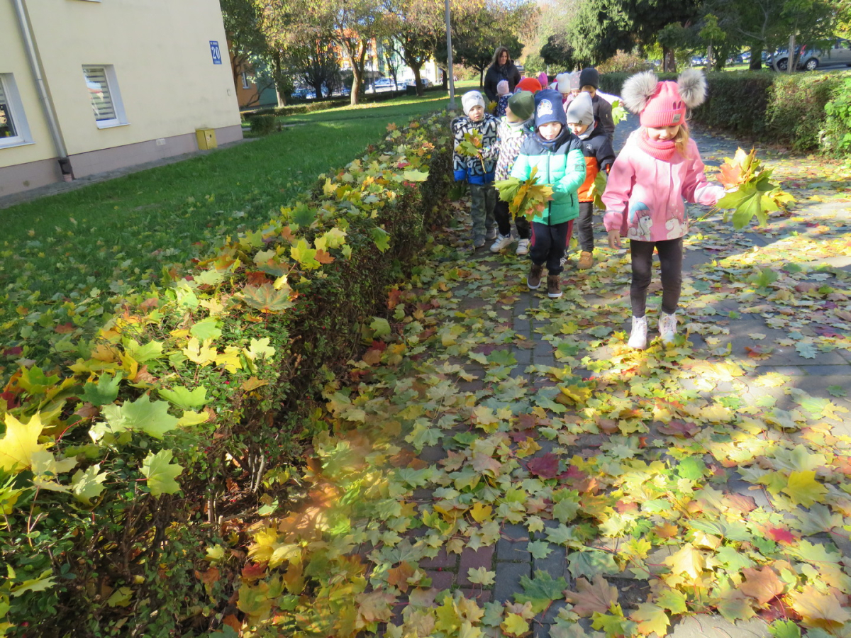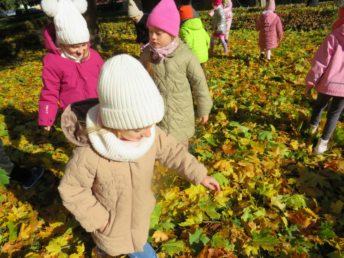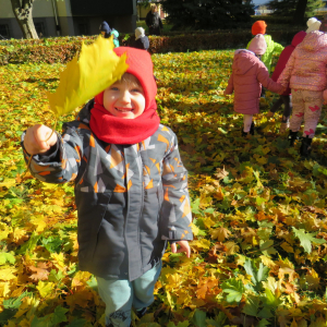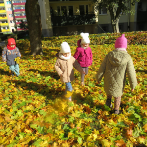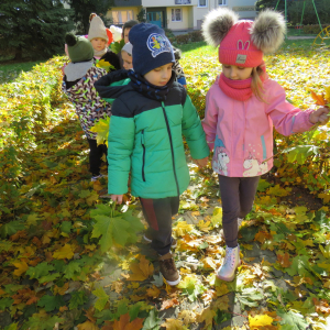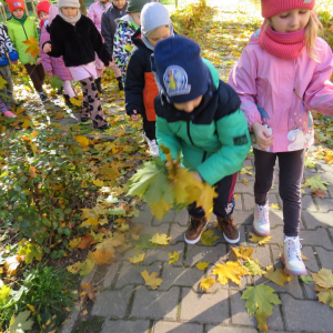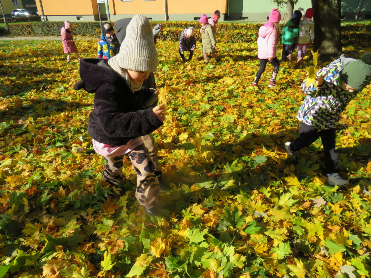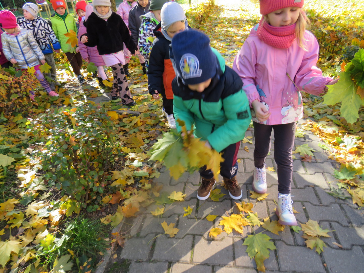 Jesień to piękna i kolorowa pora roku. Podczas spacerów dzieci lubią szukać pod drzewami kolorowych liści. Można tez spotkać ciekawe osoby. Z każdego spaceru przynosimy piękne bukiety oraz miłe wspomnienia.