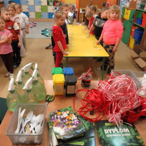Na warsztatach dzieci przypomniały sobie zasady zachowania w lesie i sposoby ochrony tego ważnego dla człowieka ekosystemu. Wykonanie pracy nie było trudne, ale wymagało przestrzegania ważnej kolejności działań.