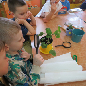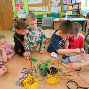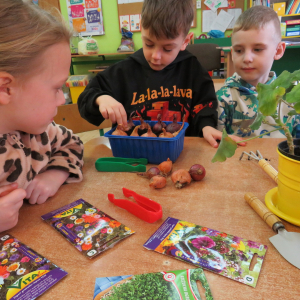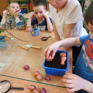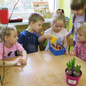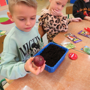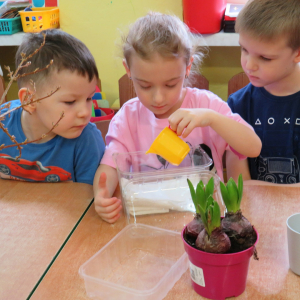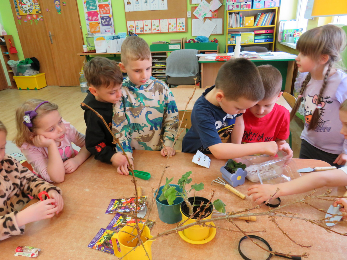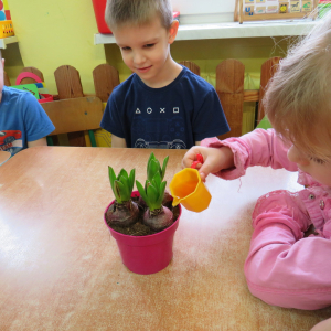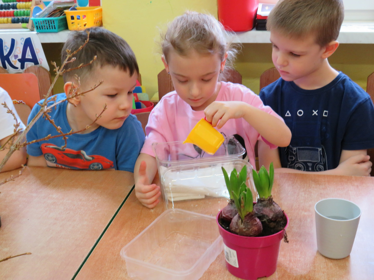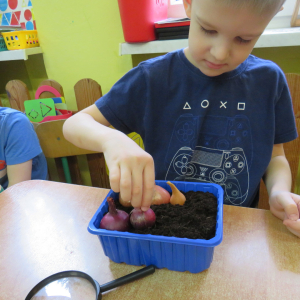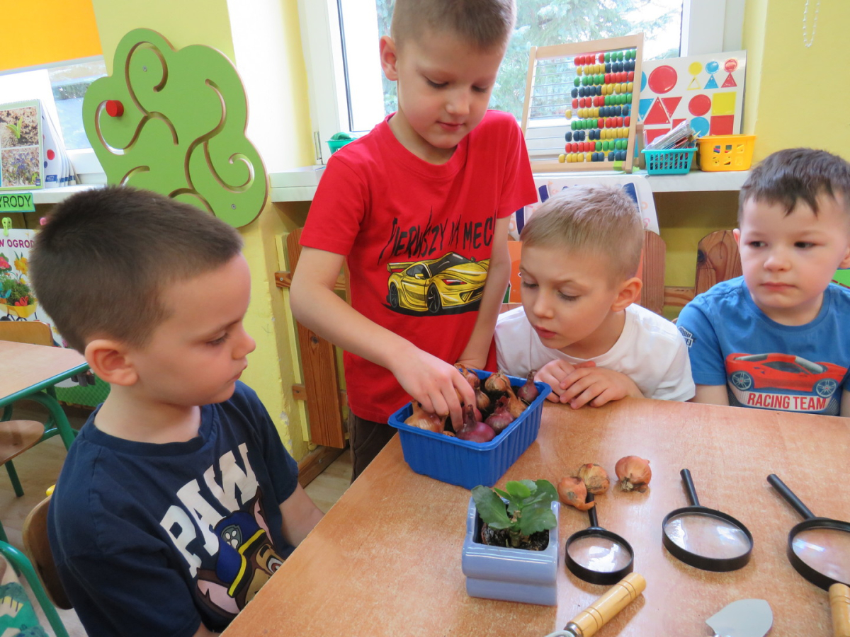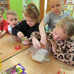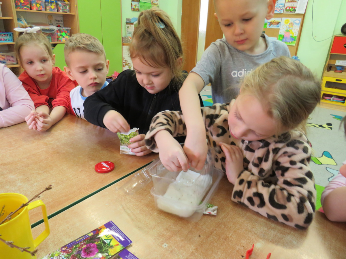 Na dworze jeszcze chłodno, ale dzieci w przedszkolu już zaczynają sadzenie i sianie nowalijek. Z cebuli wyrośnie smaczny szczypiorek, a małe nasionka zamienią się w zieloną pełną witamin rzeżuchę.