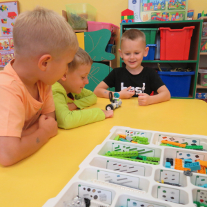 Zajęcia te wymagały skupienia i dobrej współpracy zespołu stolikowego. Wszystkie wykonywane roboty zostały z sukcesem wprawione w ruch!