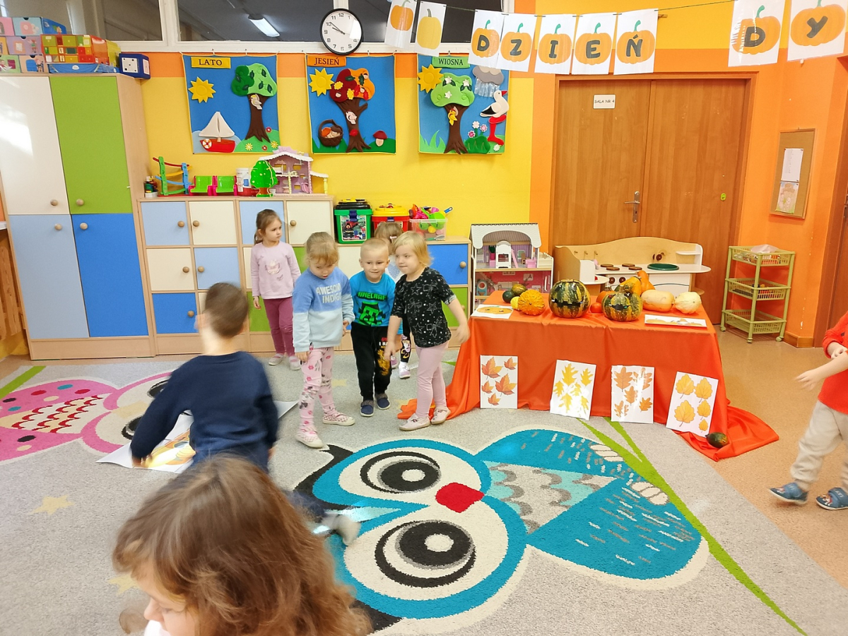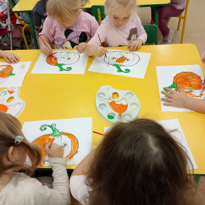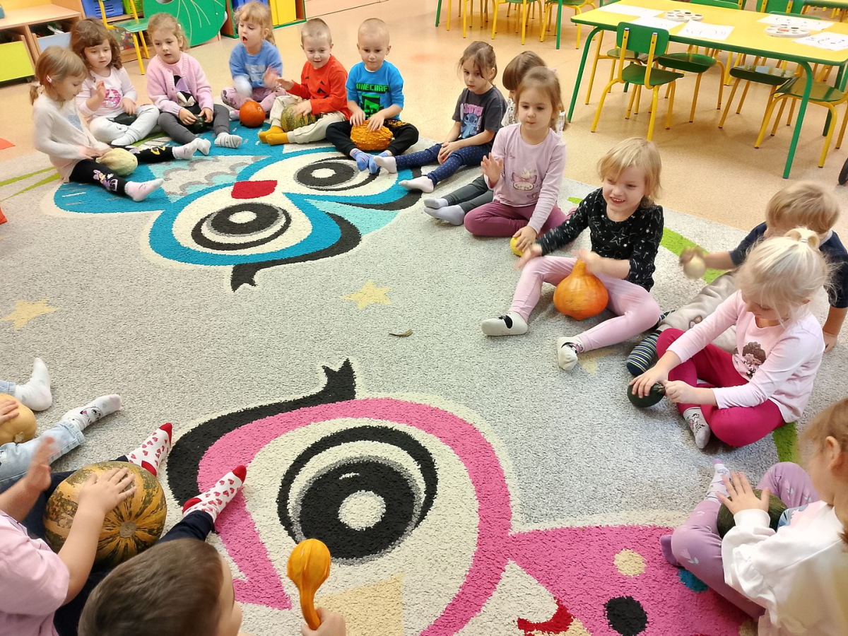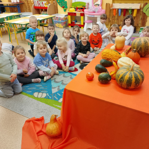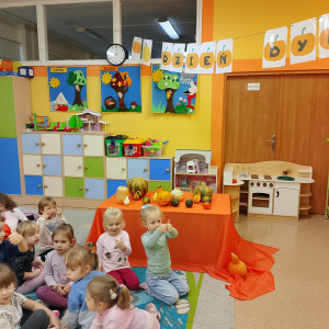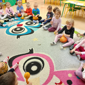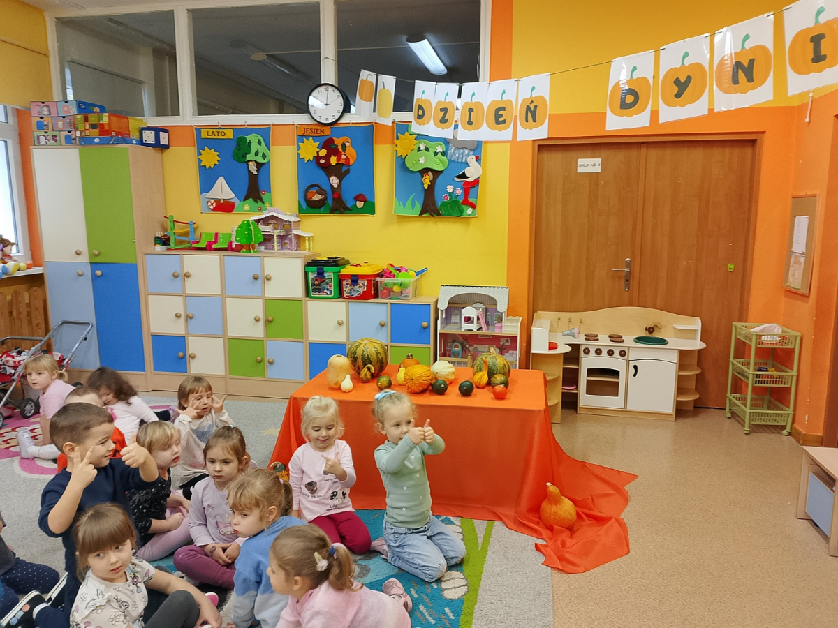 30.10.2025r w naszej grupie obchodziliśmy Dzień Dyni. Święto dyni to świetna okazja do zabawy i nauki. Dzień ten wypełniały różnorodne zajęcia, takie jak: dyniowe gry i konkursy, tworzenie dekoracji z dyń, malowanie i ozdabianie dyń oraz zabawy sensoryczne. Dzieci zdobywały wiedzę na temat przygotowania różnorodnych potraw z dyni.