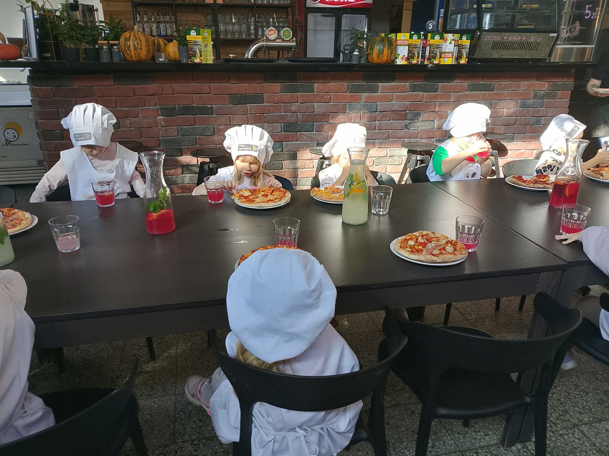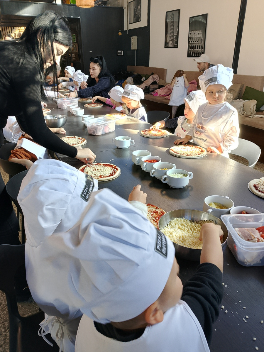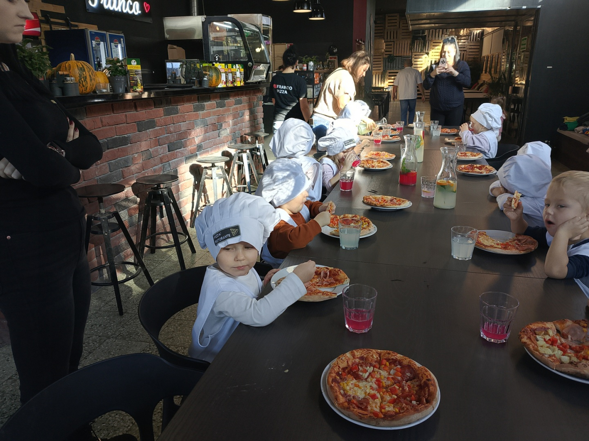 13.10.2025r dzieci brały udział w warsztatach kulinarnych w pizzerii „Franco” w Łęcznej. Podczas warsztatów samodzielnie formowały ciasto, dobierały ulubione składniki, samodzielnie tworzyły swoją pizzę, którą po upieczeniu zjadały z wielkim apetytem. Atrakcje zorganizowane w pizzerii sprawiły dzieciom wiele radości.