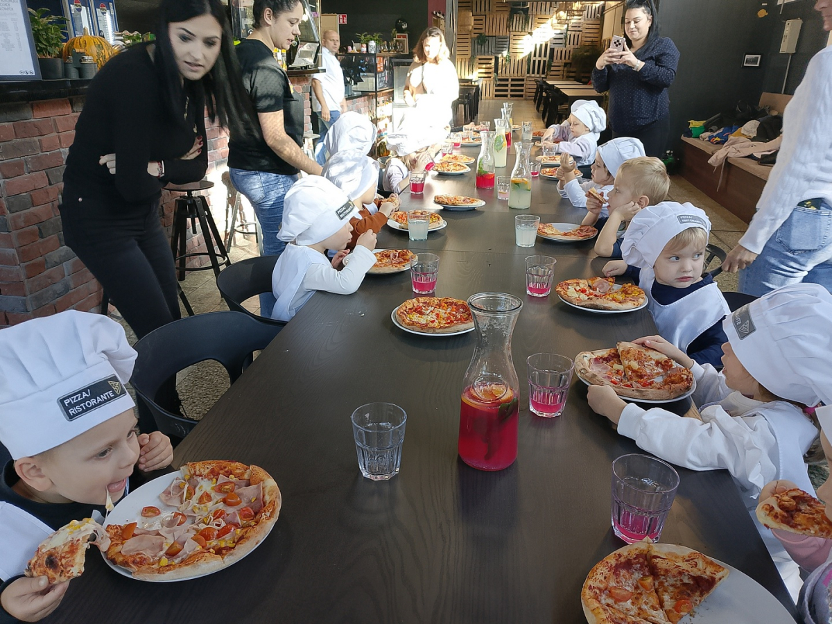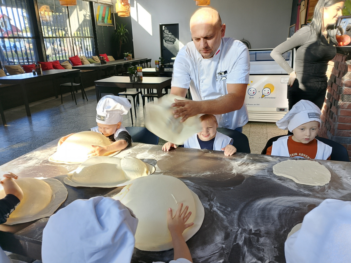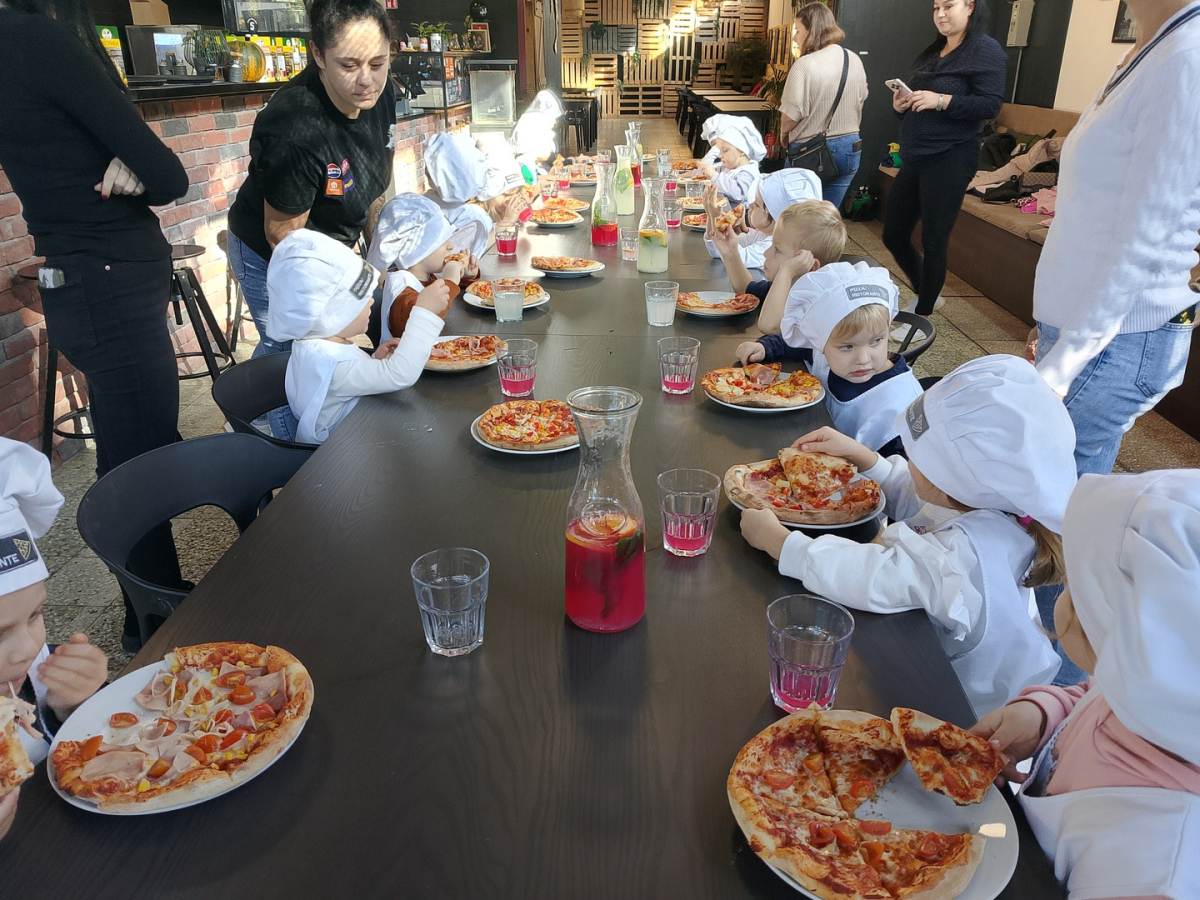 13.10.2025r dzieci brały udział w warsztatach kulinarnych w pizzerii „Franco” w Łęcznej. Podczas warsztatów samodzielnie formowały ciasto, dobierały ulubione składniki, samodzielnie tworzyły swoją pizzę, którą po upieczeniu zjadały z wielkim apetytem. Atrakcje zorganizowane w pizzerii sprawiły dzieciom wiele radości.
