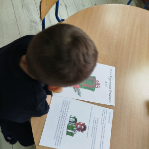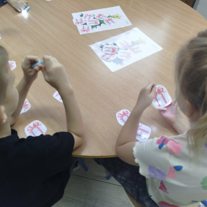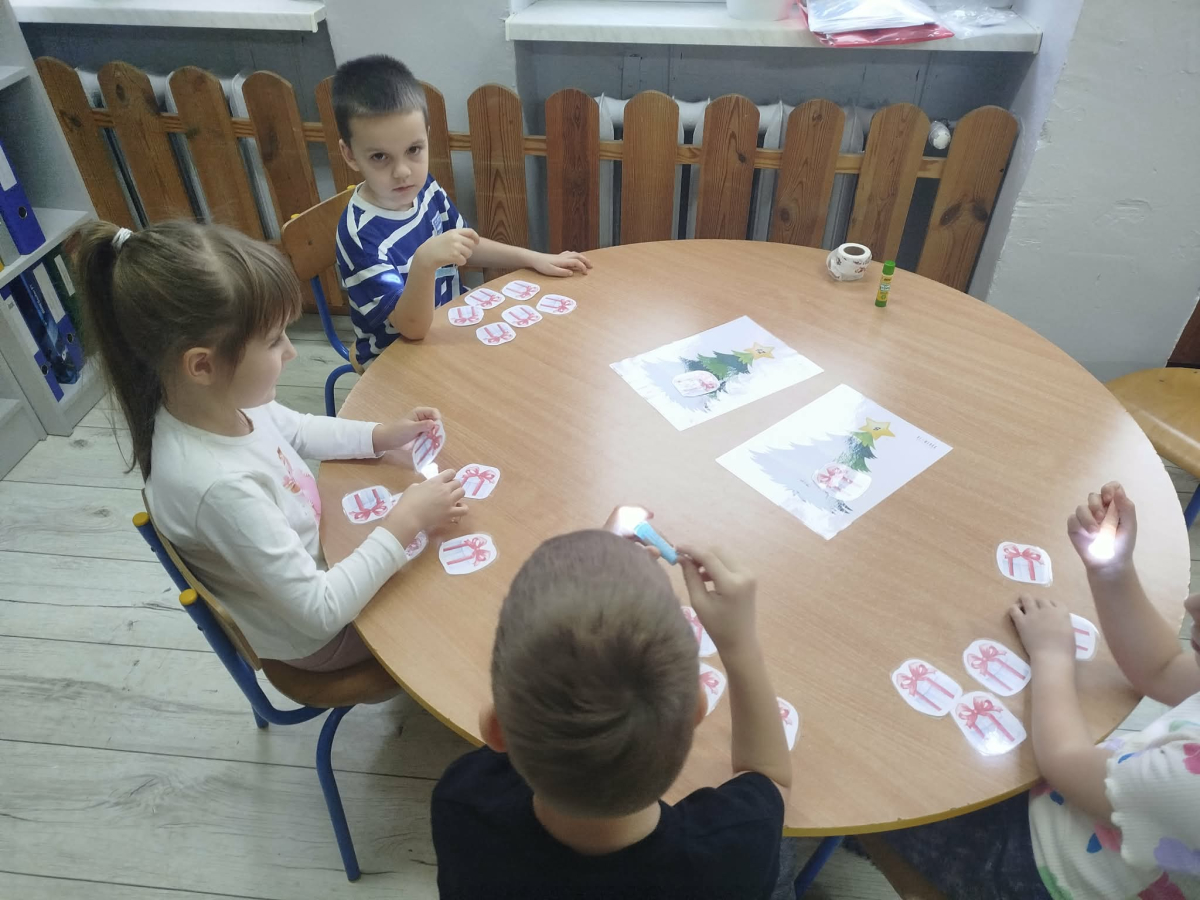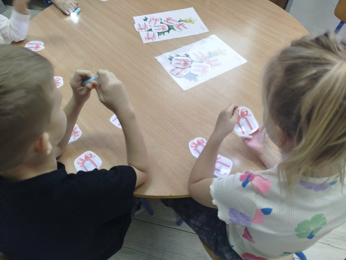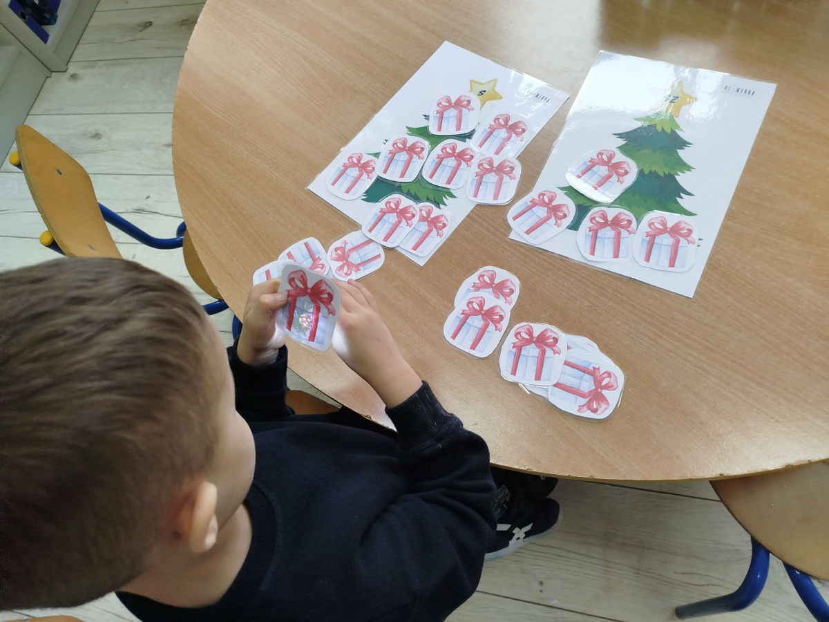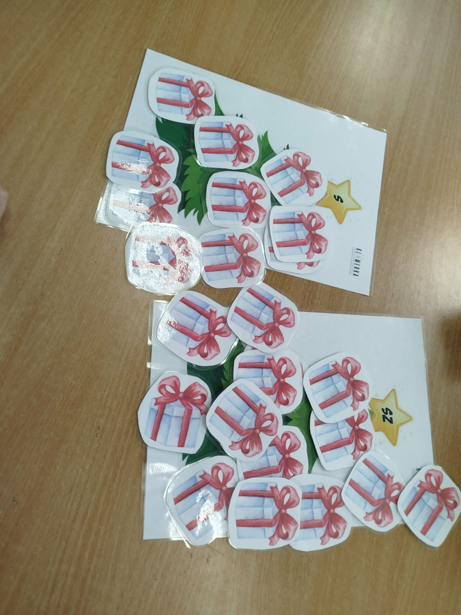 8 grudnia w „Logopedycznym Kalendarzu Świąt Nietypowych” był „Dzień Kupowania Prezentów”. Dzieci wysłuchały ciekawostek o tym święcie. Usprawniały swoje buzie z bajką logopedyczną. Kolejnym zadaniem były „Prezenty do podświetlenia” – mające na celu różnicowanie głosek sz/s w wyrazach.