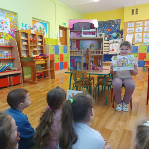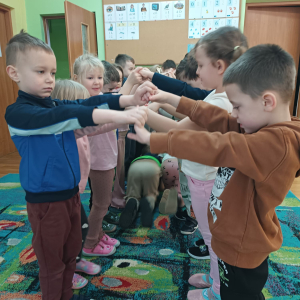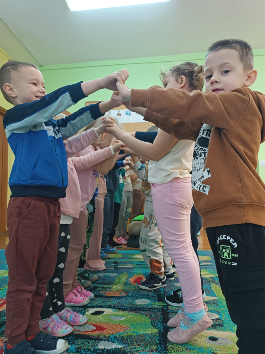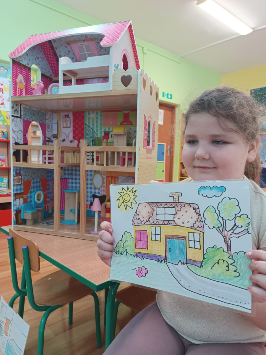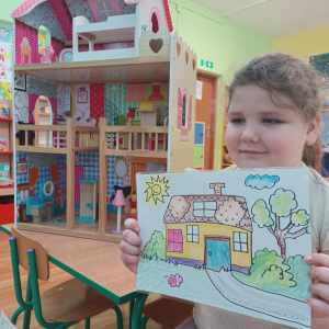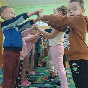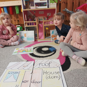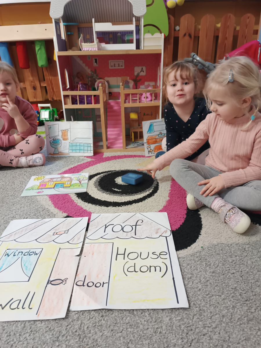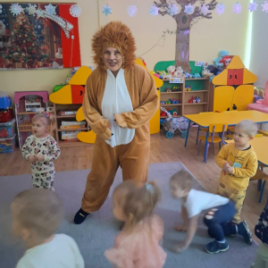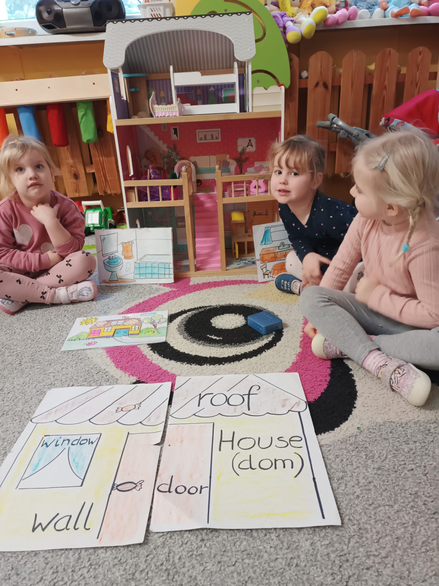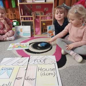 Styczniowe zajęcia z języka angielskiego koncentrowały się wokół tematu domu (house) oraz pomieszczeń. Dzieci poznawały i utrwalały nazwy poszczególnych części domu poprzez różnorodne zabawy ruchowe i sensoryczne. Dużym zainteresowaniem cieszyły się rytmiczne piosenki, podczas których wspólnie wyliczaliśmy nazwy pomieszczeń, łącząc naukę z ruchem i muzyką. Podczas zajęć dzieci tworzyły własne domki, budowały je z dostępnych materiałów oraz uczestniczyły w kreatywnych zabawach tematycznych. Szczególną radość sprawiły zabawy z motywem lwa, w których nauczyciel wcielał się w postać zwierzęcia, angażując dzieci do aktywnego udziału. Zajęcia pokazały, że dzieci najlepiej zapamiętują nowe słownictwo, gdy mogą je jednocześnie zobaczyć, usłyszeć oraz wyrazić poprzez ruch w rytm muzyki. Nauka języka angielskiego przebiegała w atmosferze radości, zabawy i twórczego odkrywania.