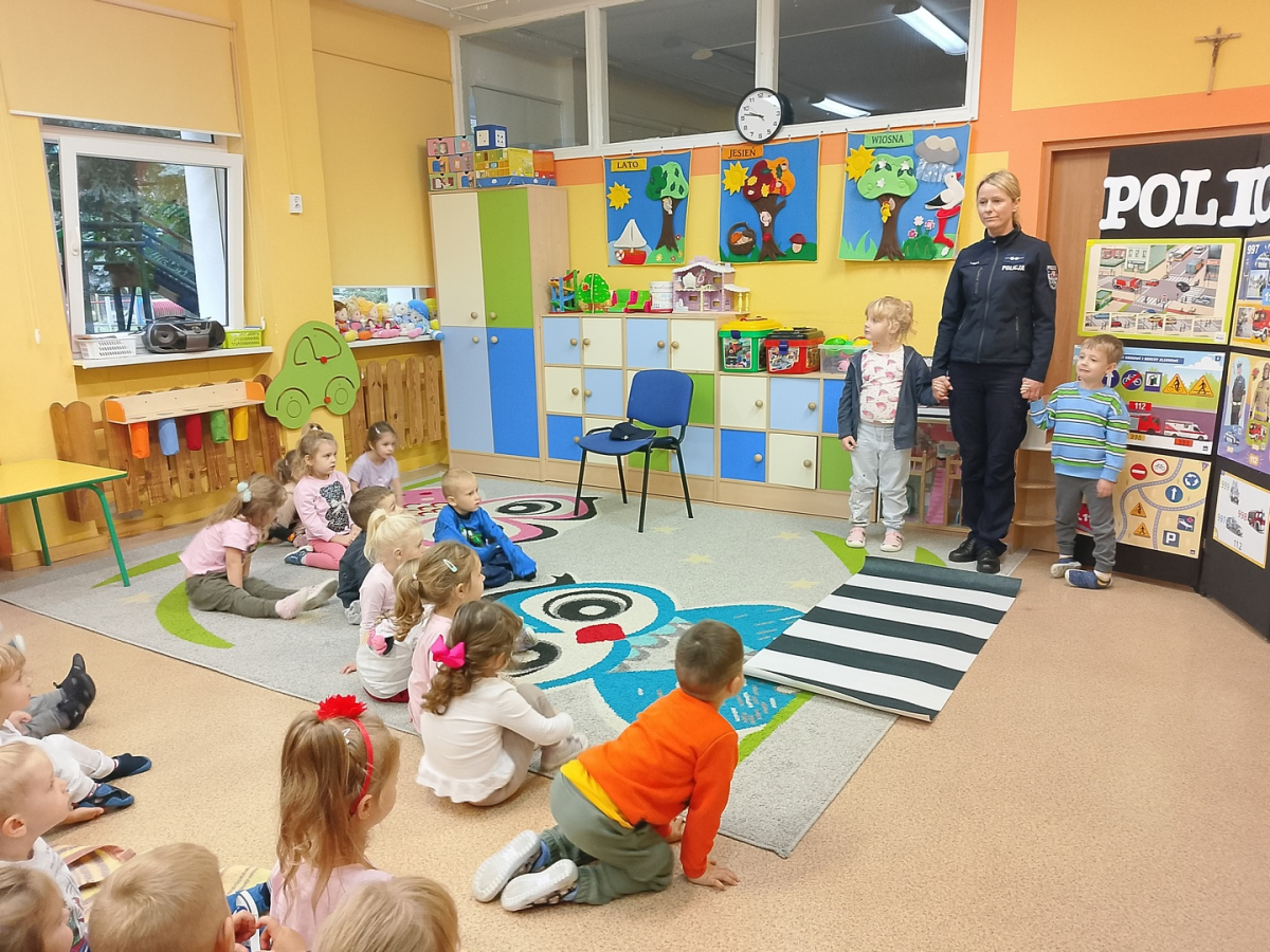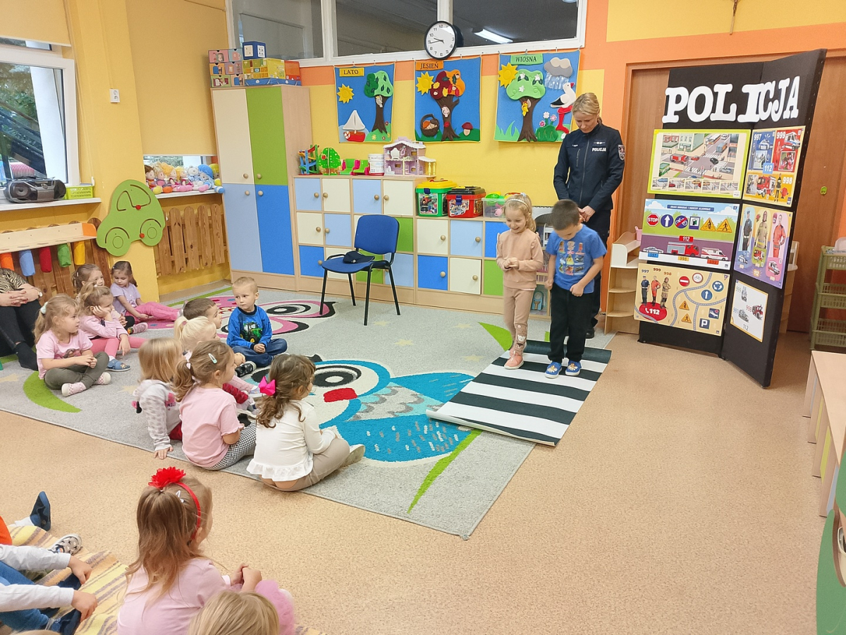 30.09.2025r w naszym przedszkolu odbyło się spotkanie z policjantką Komendy Powiatowej Policji w Łęcznej. Celem spotkania było utrwalenie z dziećmi zasad ruchu drogowego oraz przypomnienie zagadnień dotyczących bezpieczeństwa dzieci w przedszkolu i w domu.