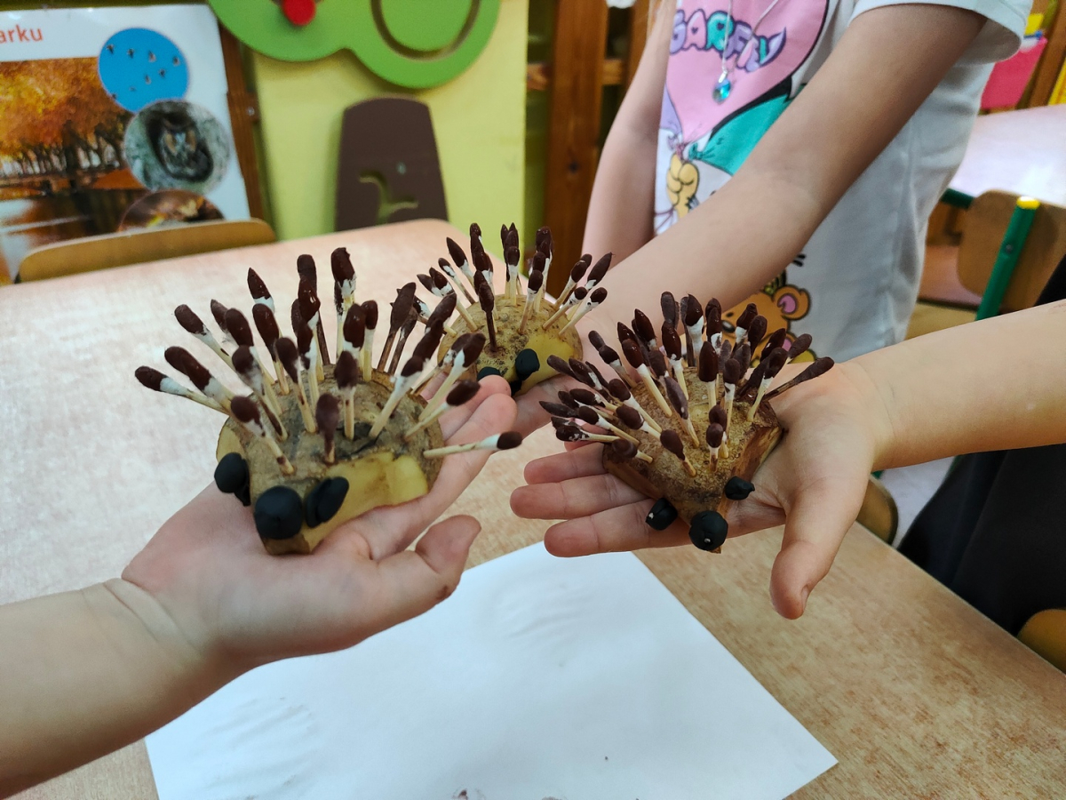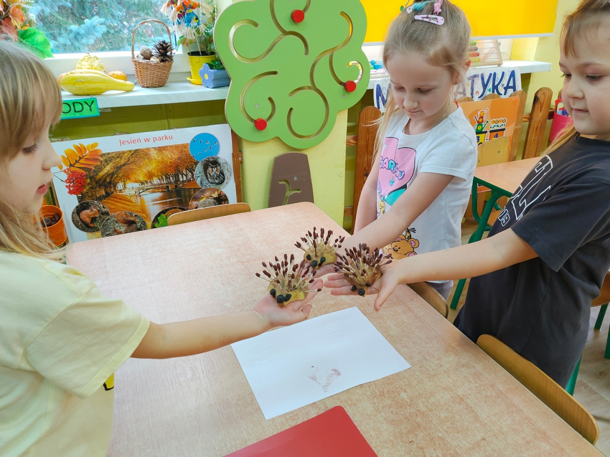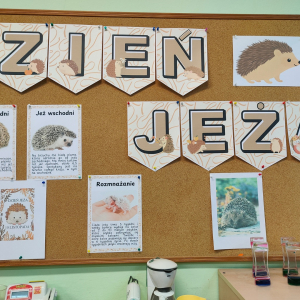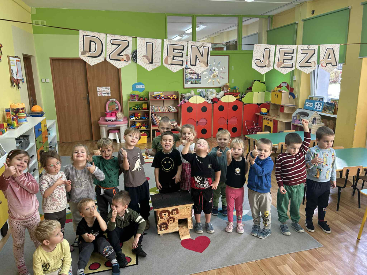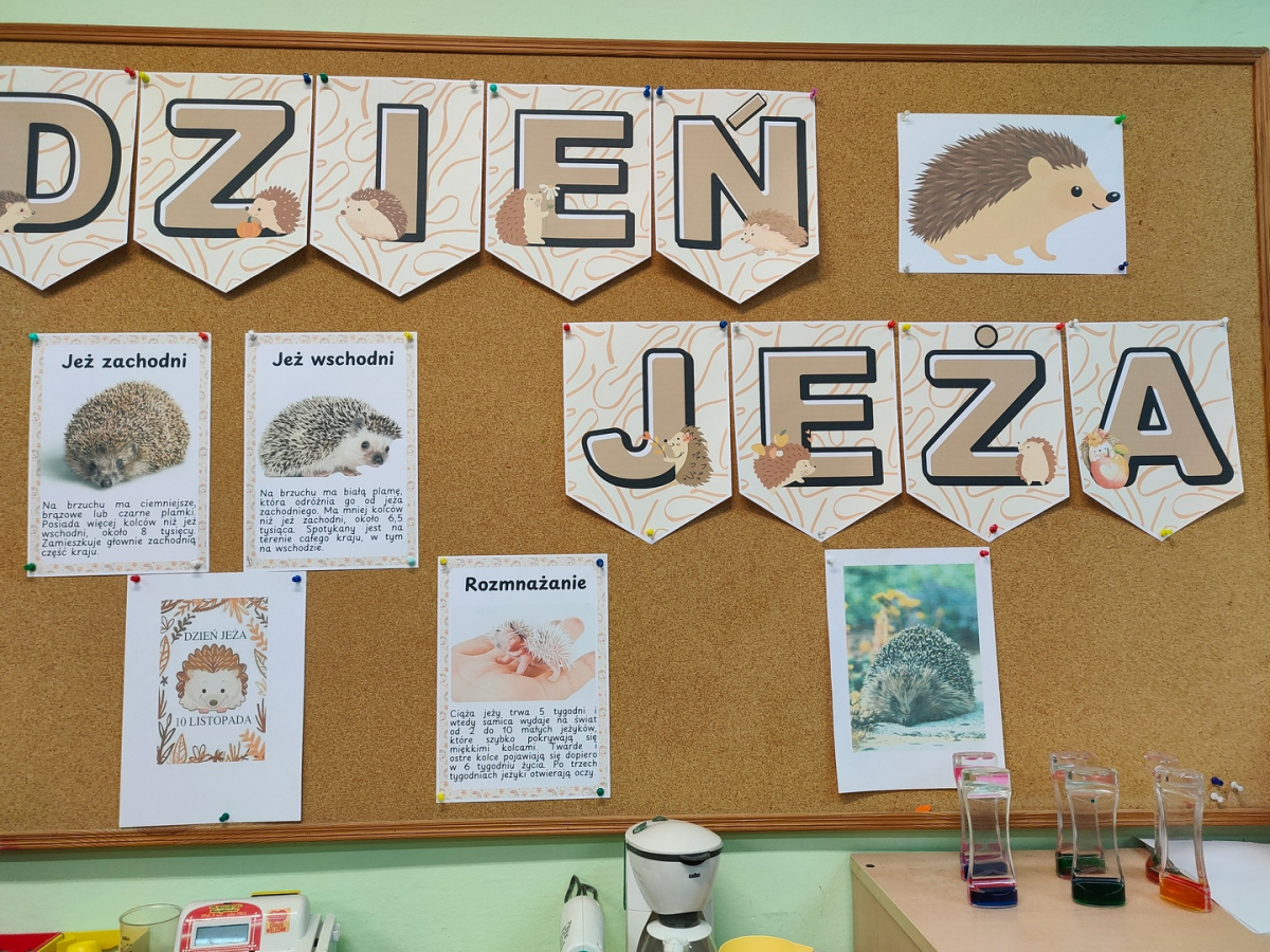 10 listopada obchodzimy Dzień jeża. To świetna okazja, by uświadomić dzieciom, jaką rolę w środowisku pełnią jeże, co im zagraża i jak im pomóc. W naszym przedszkolu dzień ten świętowaliśmy 13 listopada. Dzieci poznały różne ciekawostki na temat tych zwierząt, oglądały film edukacyjny "Jak wygląda życie jeża?", wykonały prace plastyczne i plastyczno - techniczne, śpiewały piosenkę pt. "Dwa malutkie jeże", rozwiązywały zagadki, słuchały wierszy oraz uczestniczyły w zabawach ruchowych. Ten wyjątkowy dzień przyniósł dzieciom wiele radości.