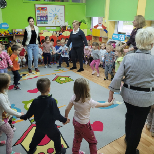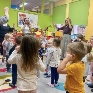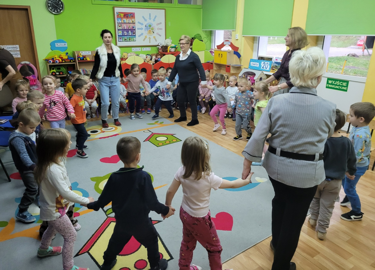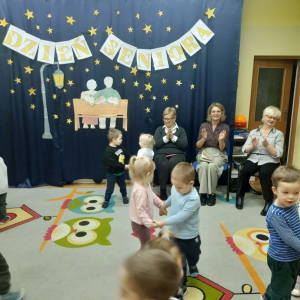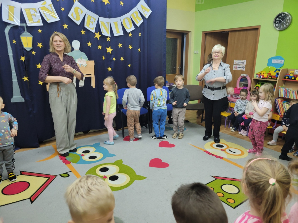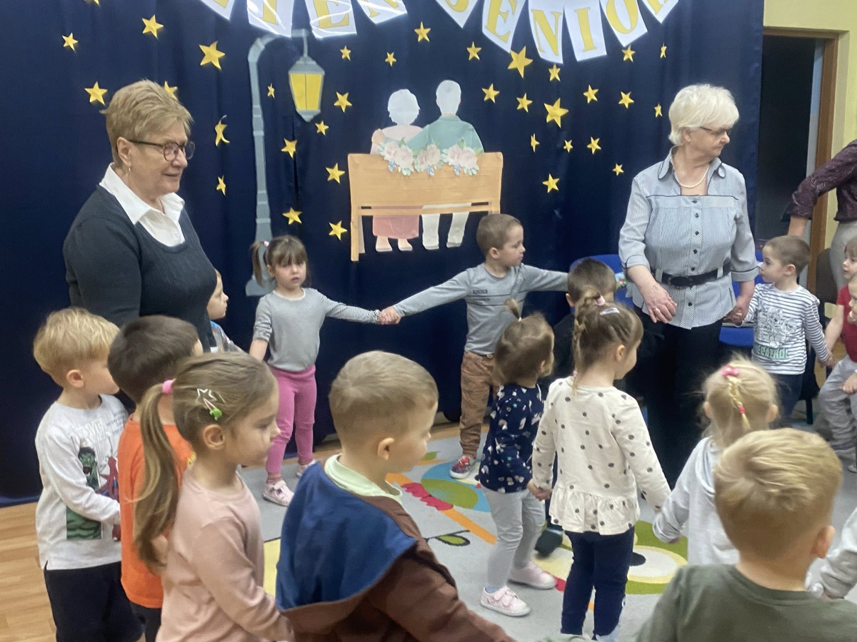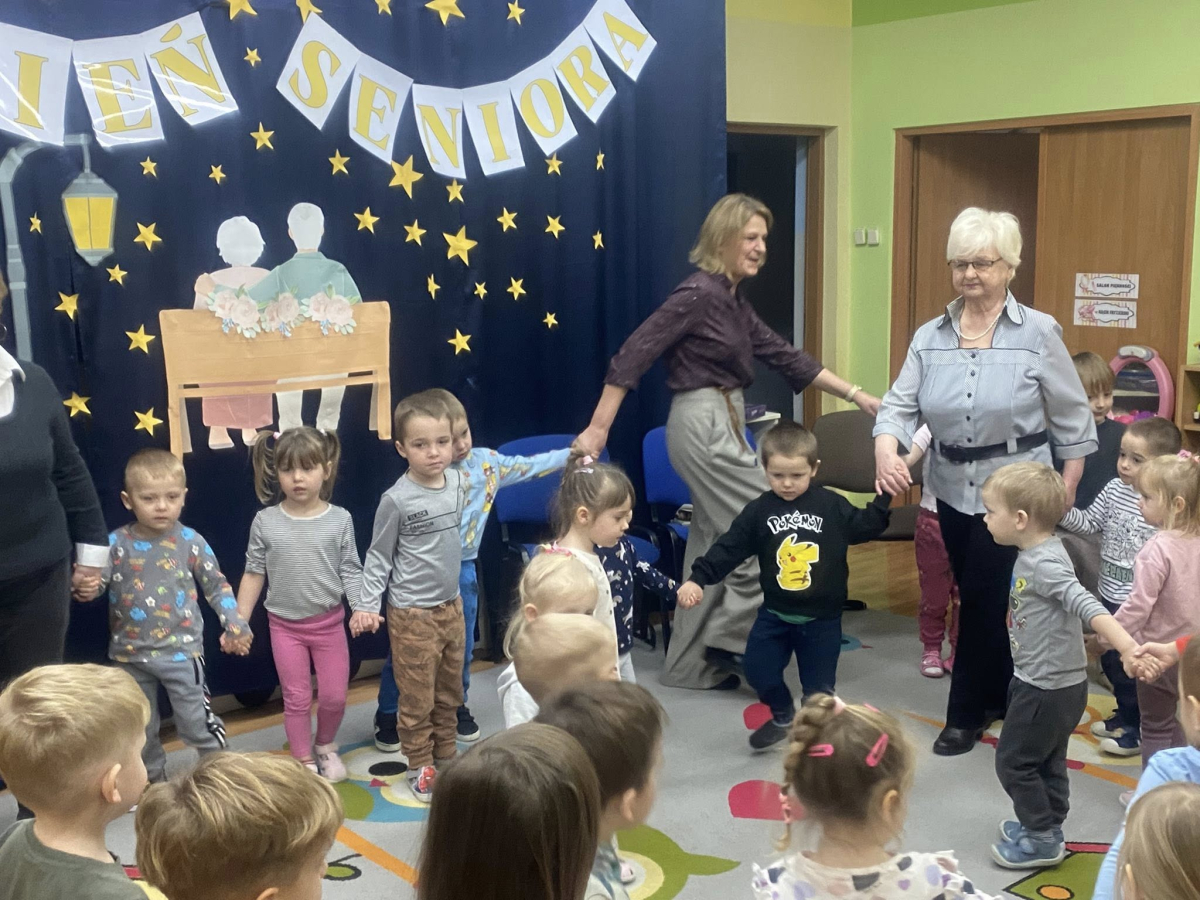 Z okazji niedawno obchodzonego Dnia Seniora dzieci z grup ,,Pszczółki” i ,,Biedronki” miały ogromną przyjemność gościć przedstawicieli Seniorów z Klubu 50 Plus, działającego przy CK – Osiedlowym Domu Kultury w Łęcznej. Nasi wyjątkowi goście przygotowali dla przedszkolaków piękne wiersze, zagadki oraz piosenki, które dzieci słuchały z wielkim zainteresowaniem. W podziękowaniu maluchy zaprezentowały własny program artystyczny – zaśpiewały piosenki i zatańczyły specjalnie dla Seniorów. Nie zabrakło również wspólnej zabawy przy muzyce. To było niezwykle ciepłe, międzypokoleniowe spotkanie, pełne wzruszeń i dobrego humoru. Serdecznie dziękujemy naszym Gościom za odwiedziny, poświęcony czas i niezapomniane chwile!