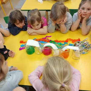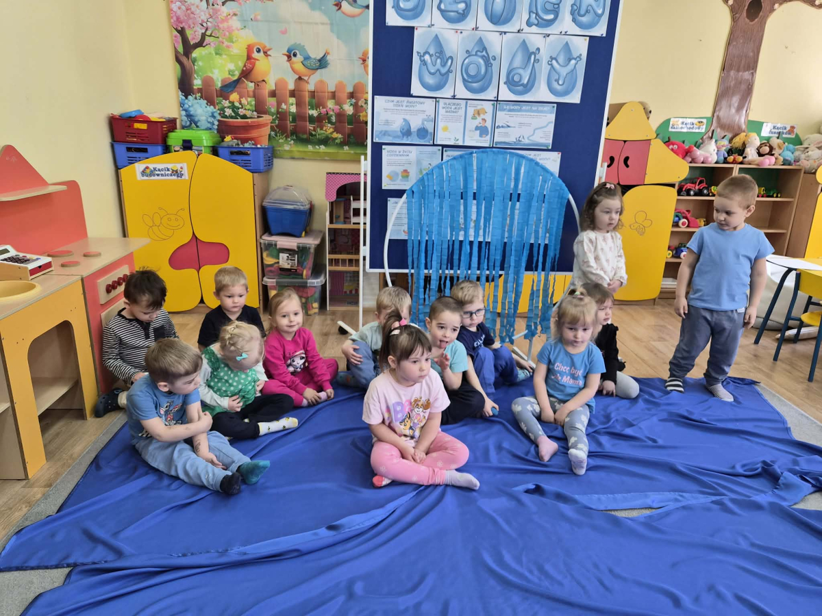 W dniu 23,03,2026r w naszym przedszkolu obchodziliśmy Światowy Dzień Wody. Przedszkolaki ubrane na niebiesko odkrywały tajemnice wody. Poznawały jej znaczenie dla życia ludzi, zwierząt i roślin. Poprzez różnorodne działania dzieci zdobyły wiele ciekawostek o wodzie.Dzieci prowadziły zabawy badawcze, eksperymenty, wykonywały prace plastyczne, rozwiązywały zagadki i rebusy. To był dzień pełen radości i nauki.