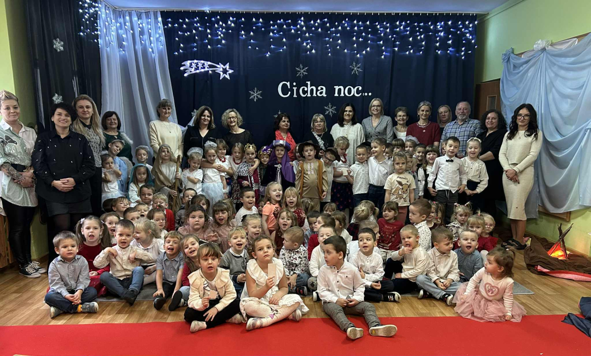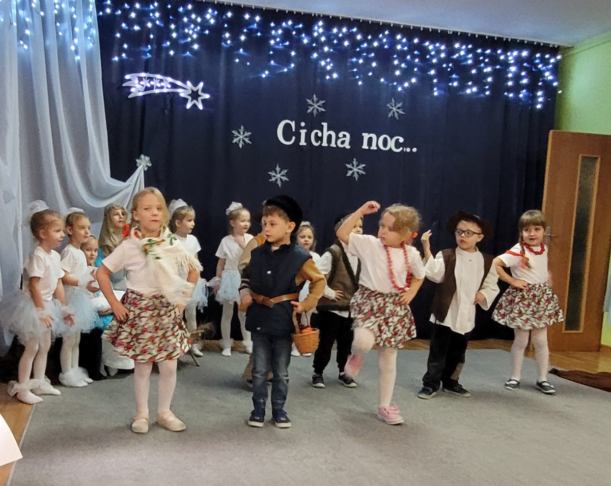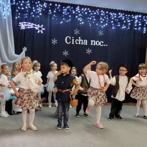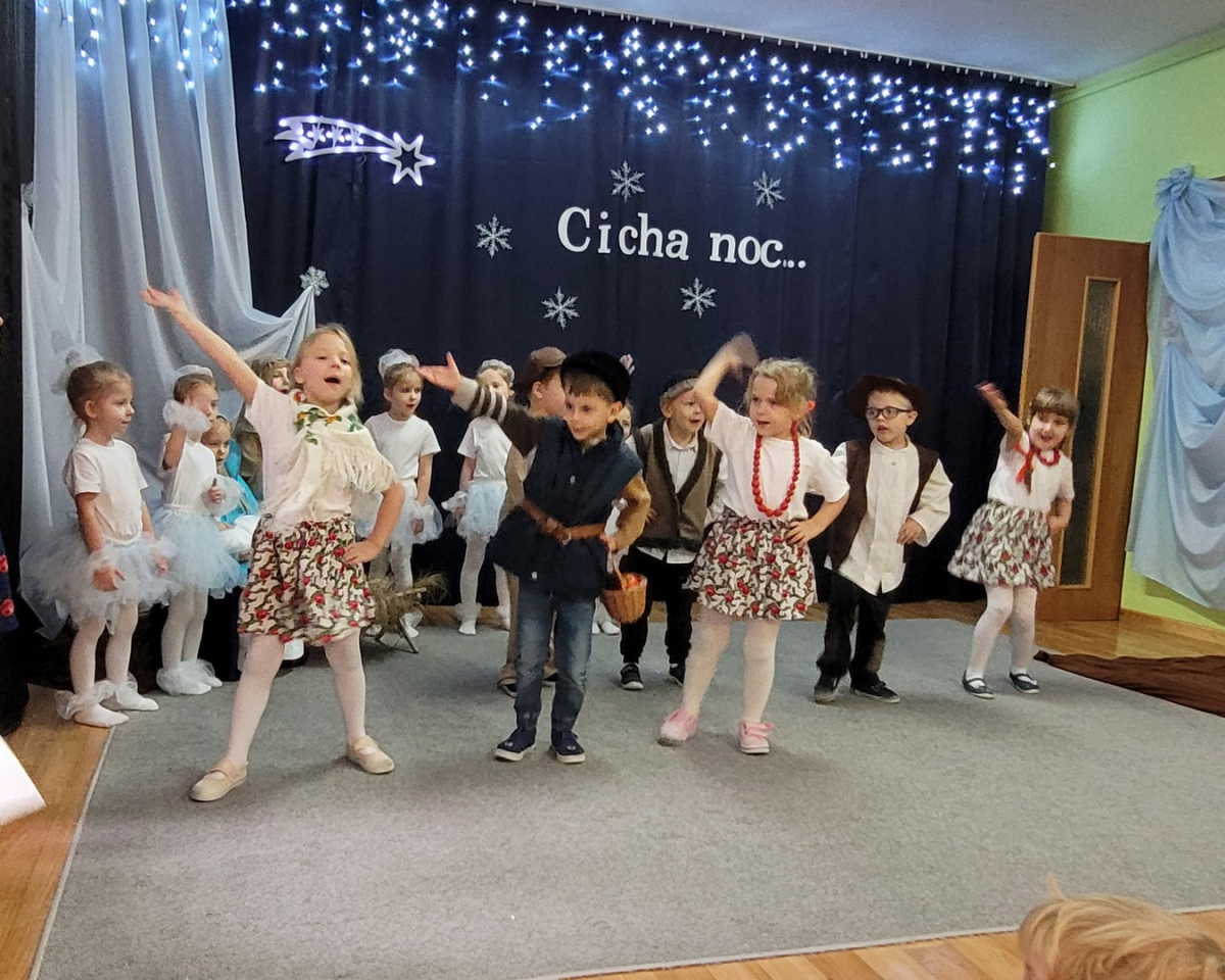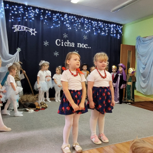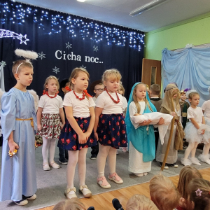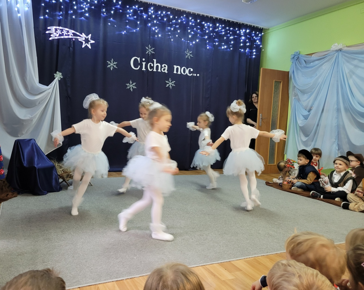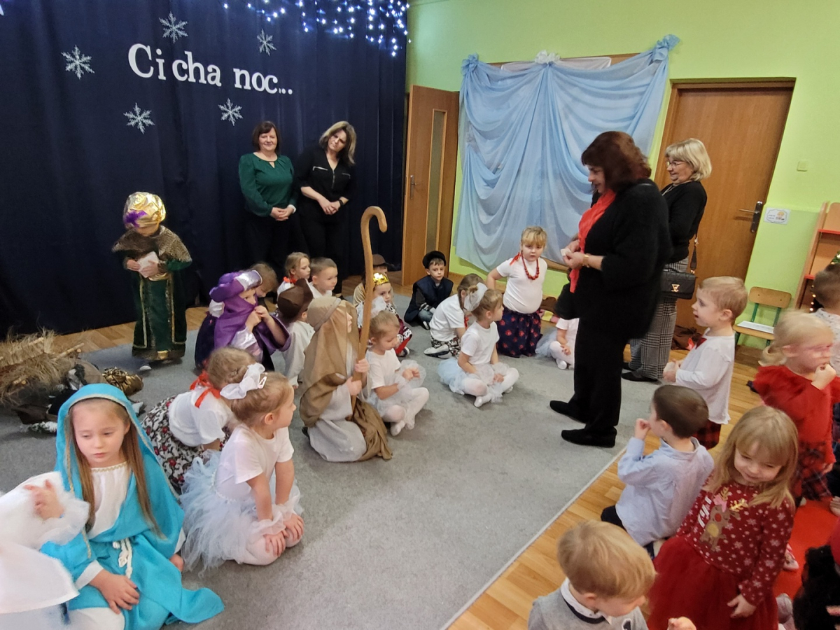 "...Do stajenki, do stajenki, gdzie leży Maleńki...." rozbrzmiewało w naszym przedszkolu, gdy grupa 5 - latków wystawiała jasełka. Dzieci z wielkim zaangażowaniem tańczyły, śpiewały kolędy i w pięknym, dziecięcym stylu przedstawiały bożonarodzeniowe sceny. Ten występ, to Świąteczne Życzenia od grupy Żabki dla rodziców, młodszych kolegów i zaproszonych gości. Zdrowych i Spokojnych Świąt Bożego Narodzenia .