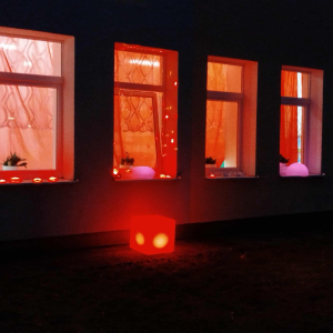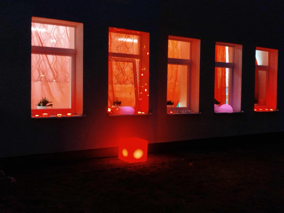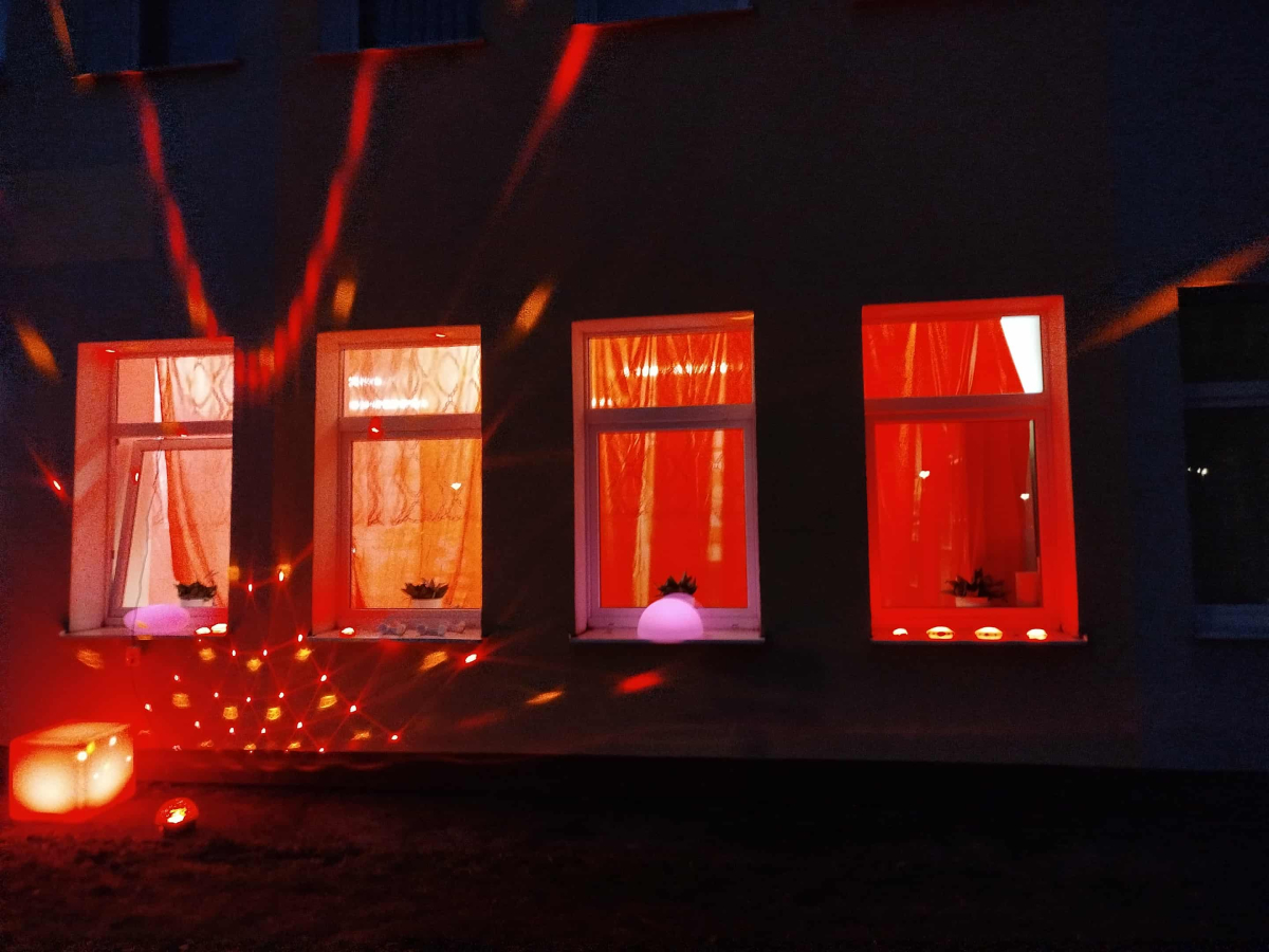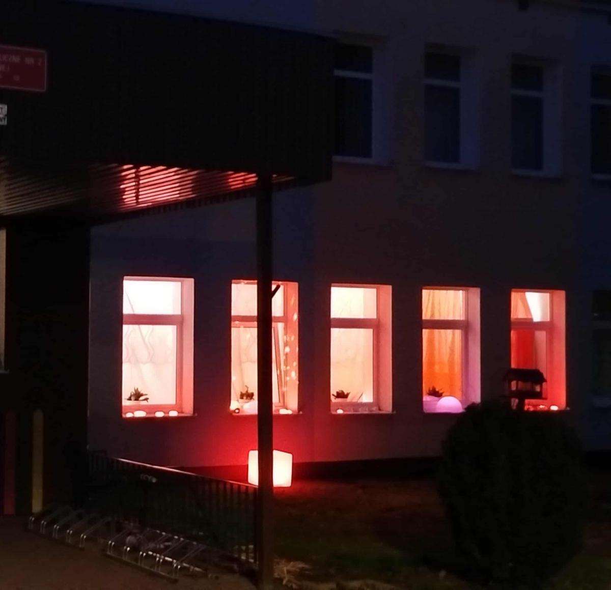 KAMPANIA DZIECIŃSTWO BEZ PRZEMOCY- podświetlenie budynku przedszkola