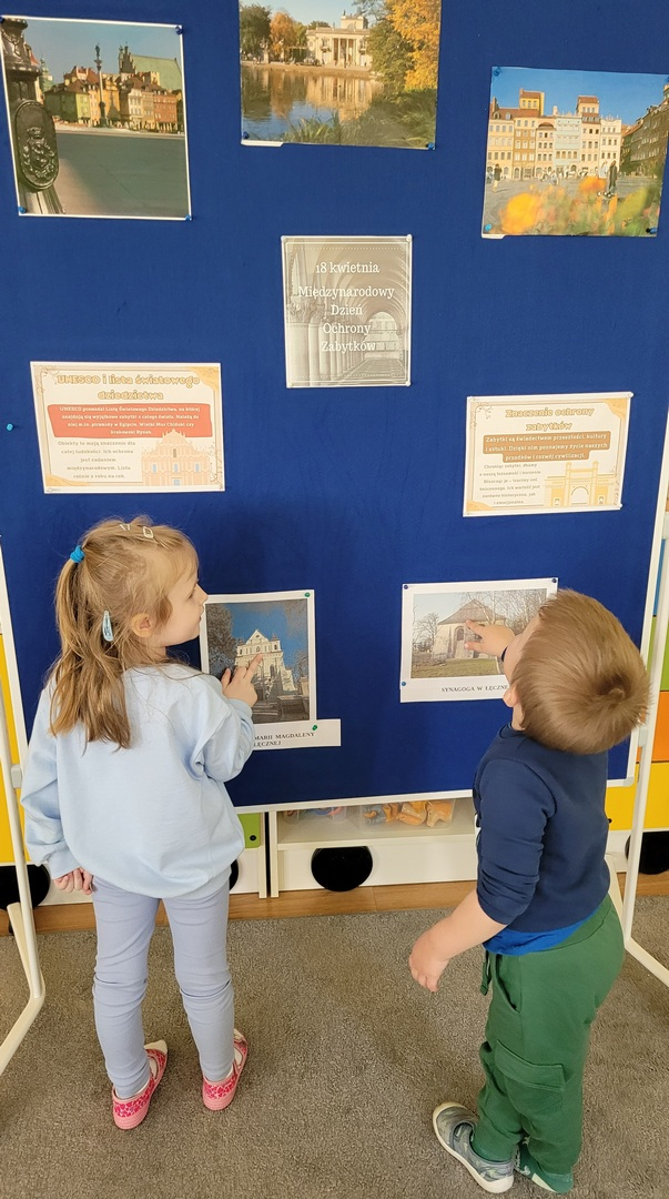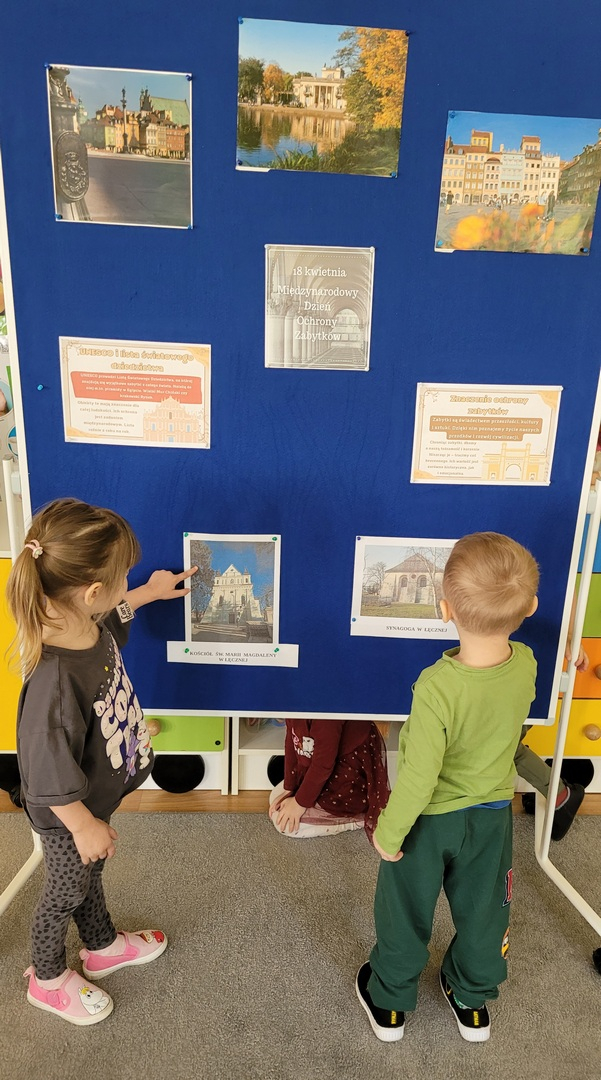 18 kwietnia obchodzony jest Międzynarodowy Dzień Ochrony Zabytków. Przedszkolaki dowiedziały się co to jest zabytek oraz poznały niektóre z nich. Wybrały się również na spacer i poznały zabytki Łęcznej. Urząd Stanu Cywilnego, Kościół Św. Marii Magdaleny, Synagoga, Miejsko-gminna Biblioteka Publiczna w Łecznej. To była niezapimniana lekcja historii.