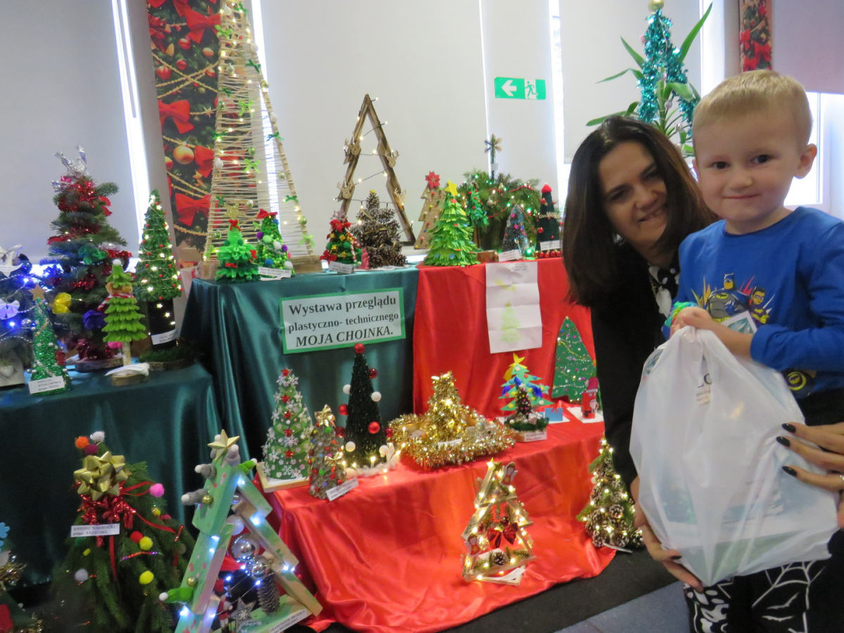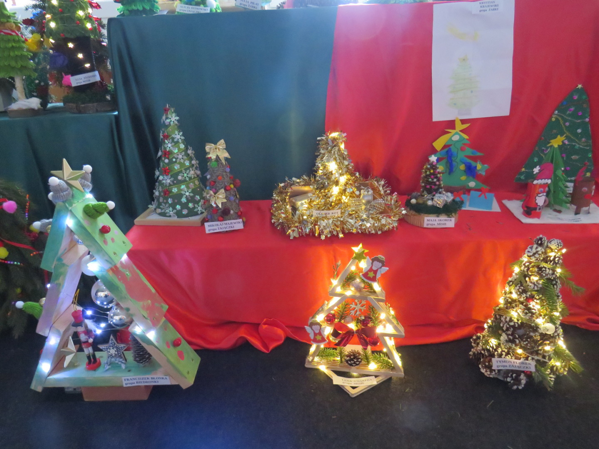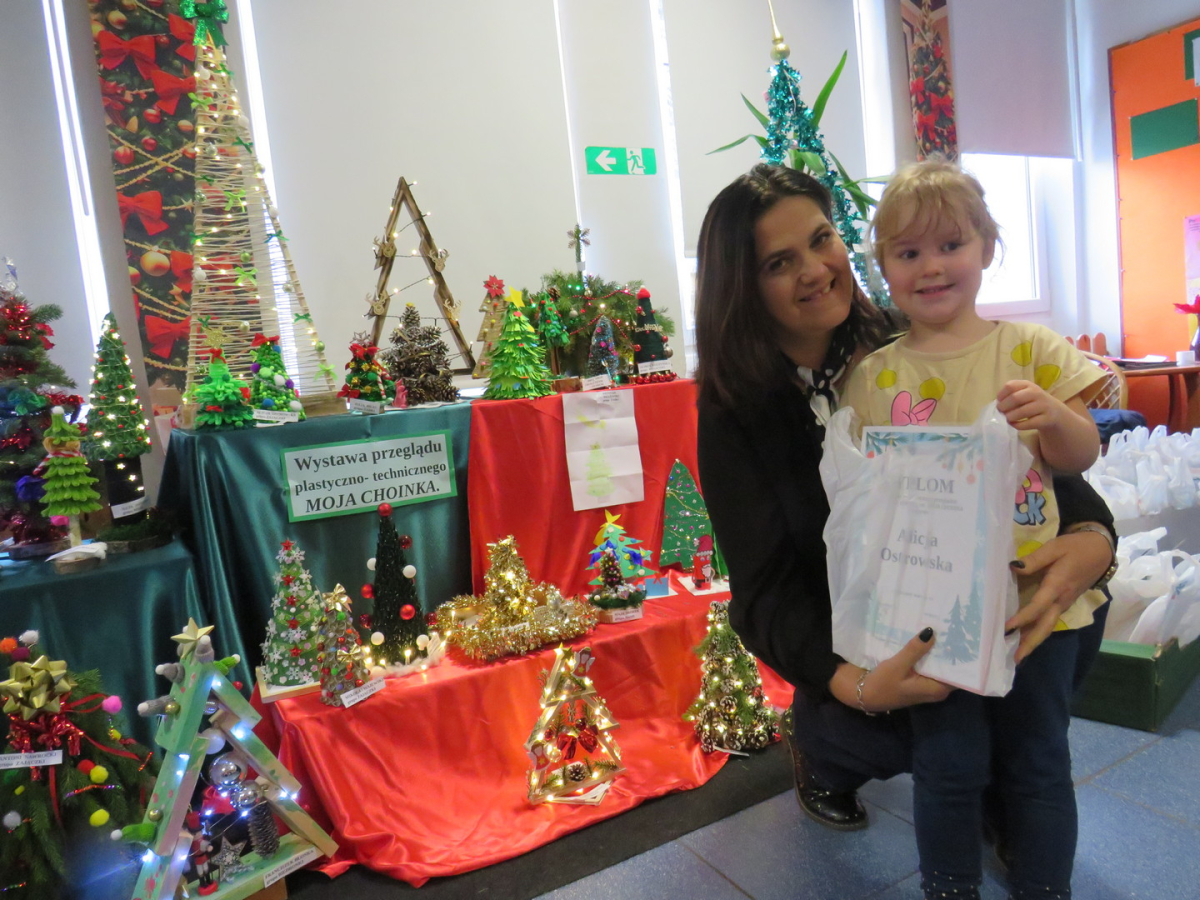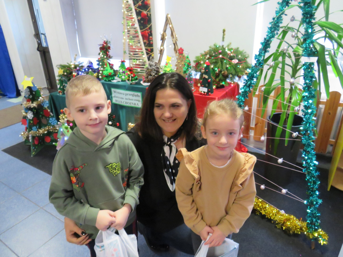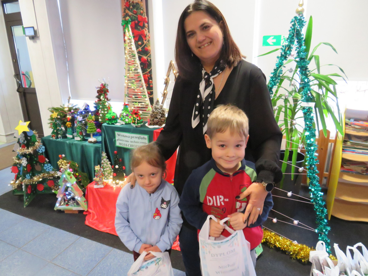 Na świąteczny przegląd plastyczno - technicznym "Moja choinka" dzieci wraz z rodzicami przygotowały 36 przepięknych prac. Po ustawieniu ich na holu przedszkola wszystko nam lśni, świeci i przyjemnie miga tworząc miłą atmosferę nadchodzących Świąt Bożego Narodzenia. Prace są różnej wielkości , ale wszystkie wymagały dobrego pomysłu i dużego nakłady pracy. Każda praca została nagrodzona.. Dzieciom i rodzicom bardzo dziękujemy za zaangażowanie.