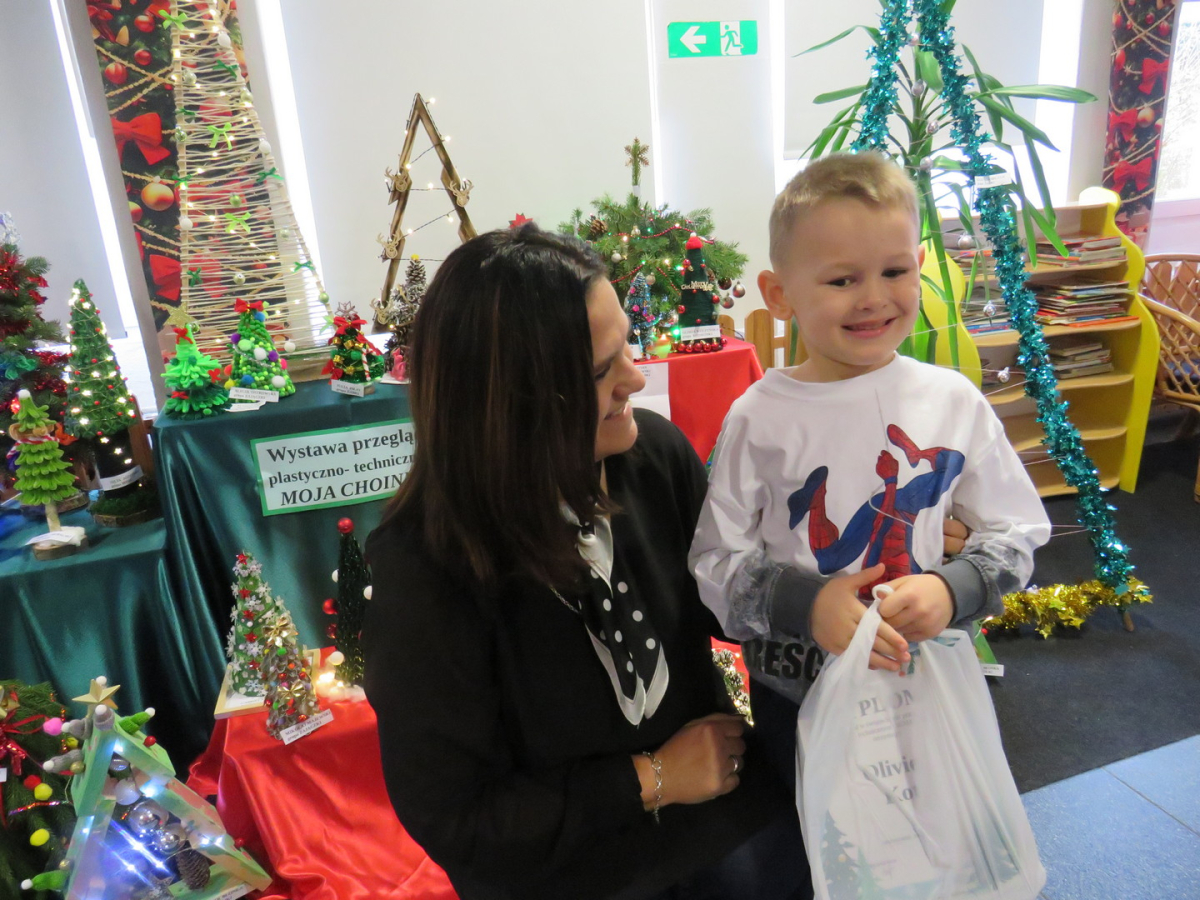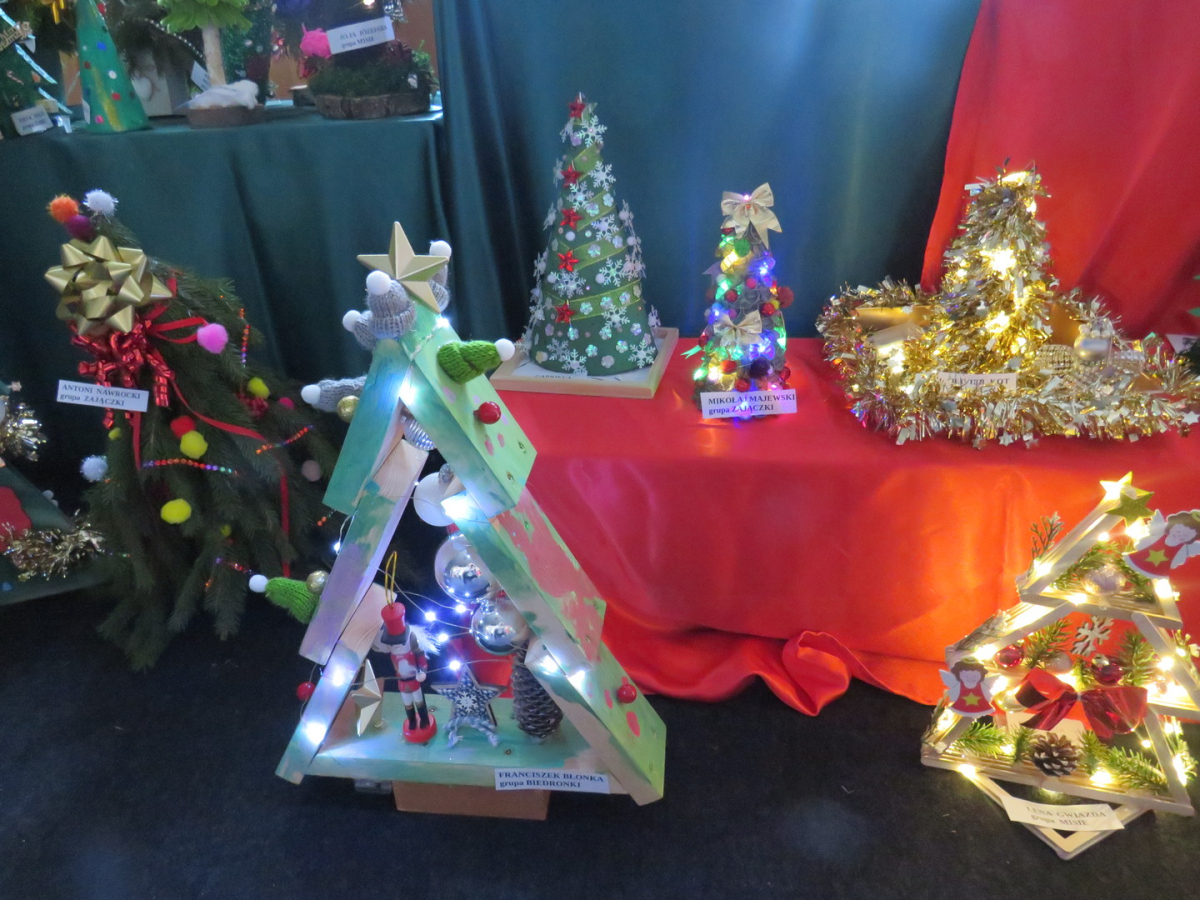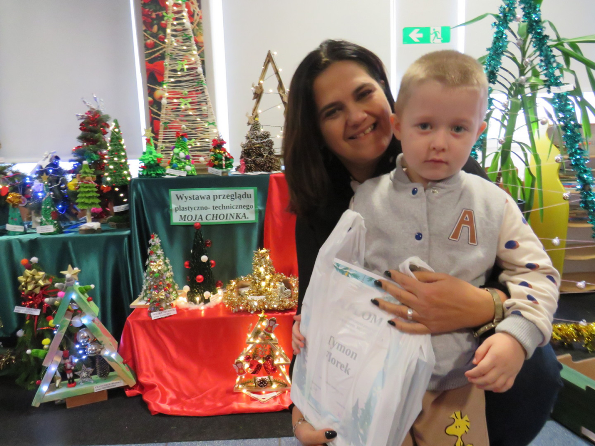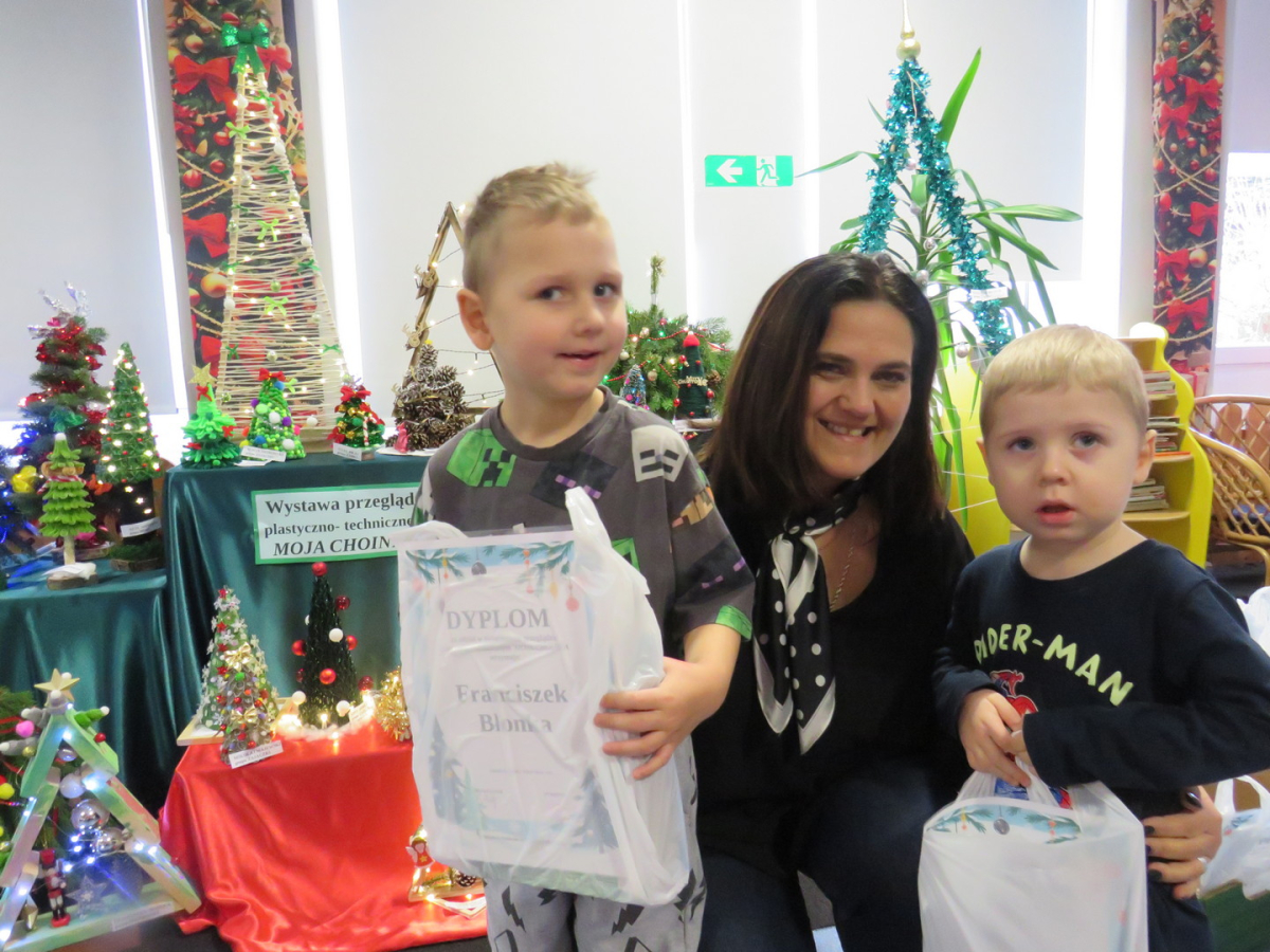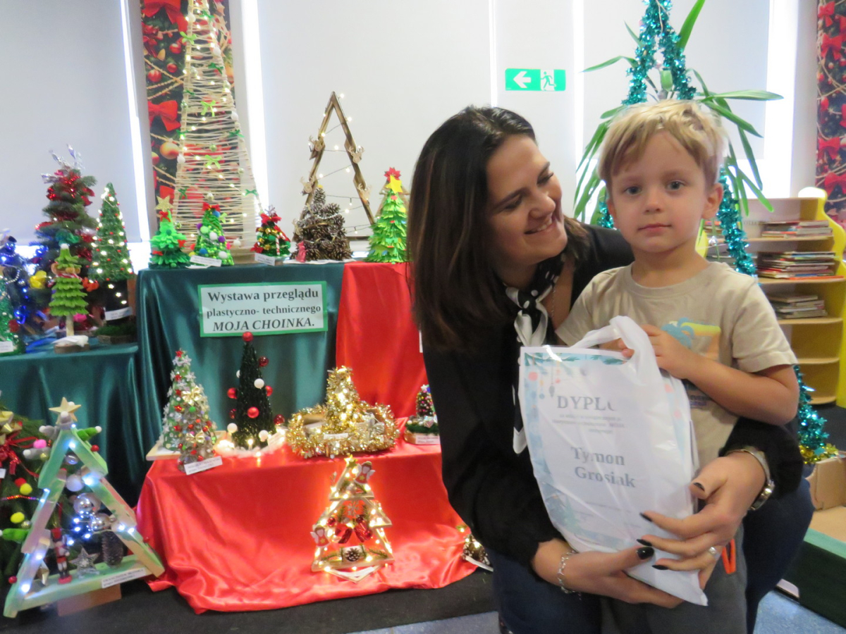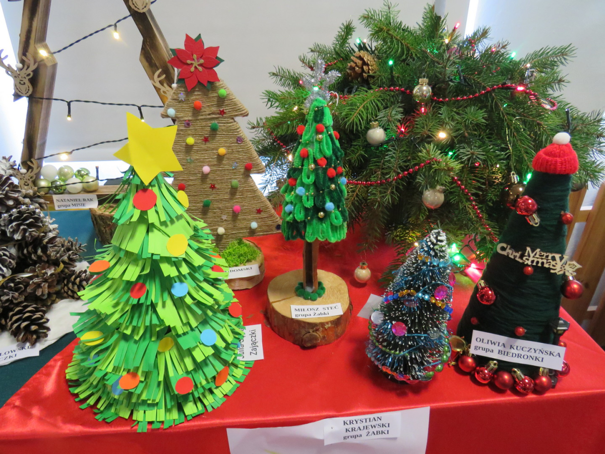 Na świąteczny przegląd plastyczno - technicznym "Moja choinka" dzieci wraz z rodzicami przygotowały 36 przepięknych prac. Po ustawieniu ich na holu przedszkola wszystko nam lśni, świeci i przyjemnie miga tworząc miłą atmosferę nadchodzących Świąt Bożego Narodzenia. Prace są różnej wielkości , ale wszystkie wymagały dobrego pomysłu i dużego nakłady pracy. Każda praca została nagrodzona.. Dzieciom i rodzicom bardzo dziękujemy za zaangażowanie.