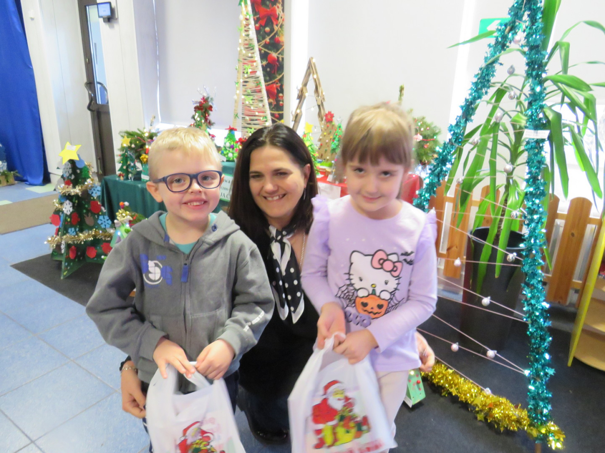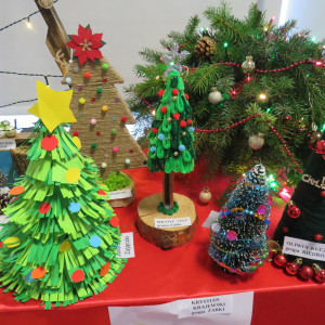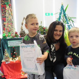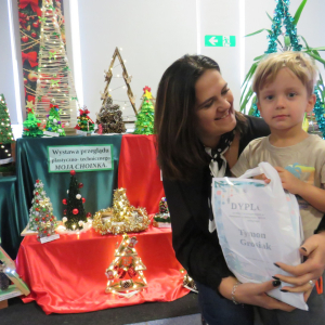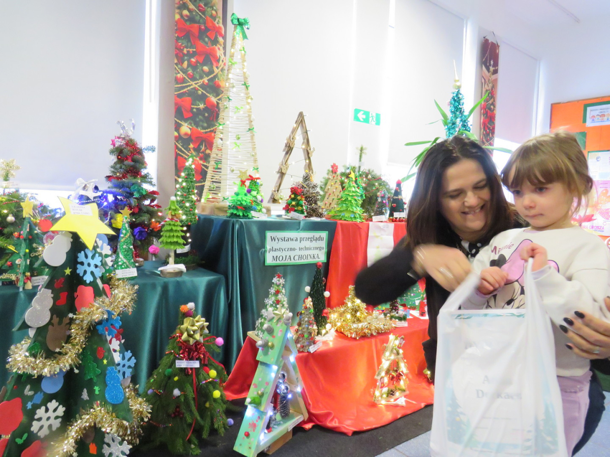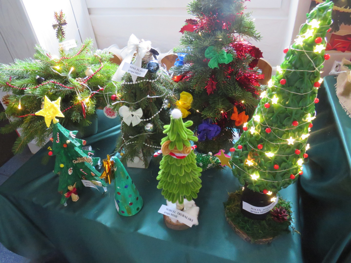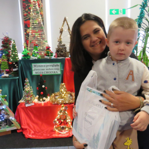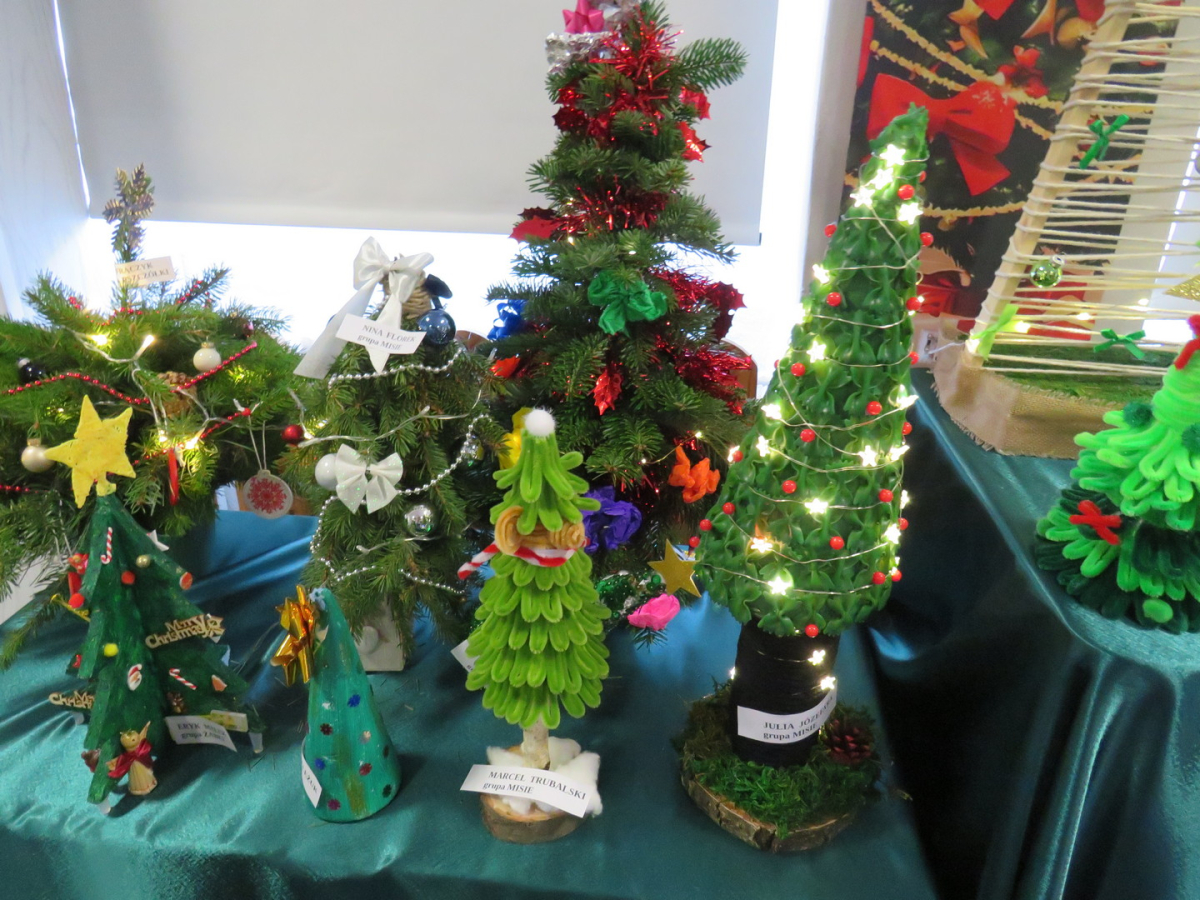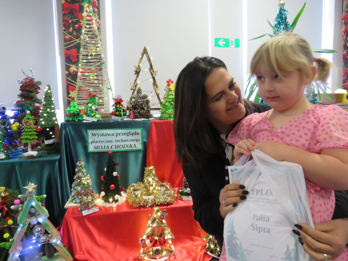 Na świąteczny przegląd plastyczno - technicznym "Moja choinka" dzieci wraz z rodzicami przygotowały 36 przepięknych prac. Po ustawieniu ich na holu przedszkola wszystko nam lśni, świeci i przyjemnie miga tworząc miłą atmosferę nadchodzących Świąt Bożego Narodzenia. Prace są różnej wielkości , ale wszystkie wymagały dobrego pomysłu i dużego nakłady pracy. Każda praca została nagrodzona.. Dzieciom i rodzicom bardzo dziękujemy za zaangażowanie.