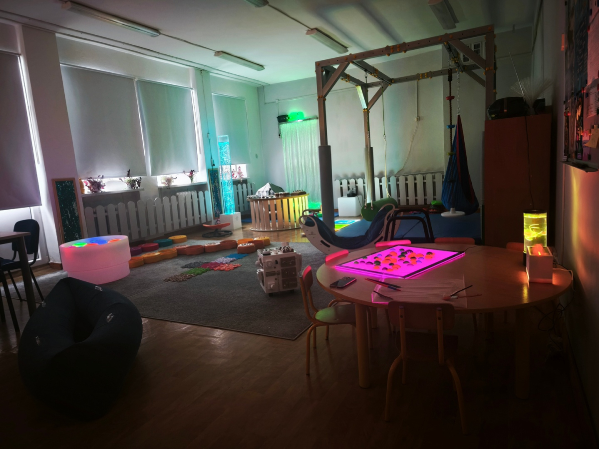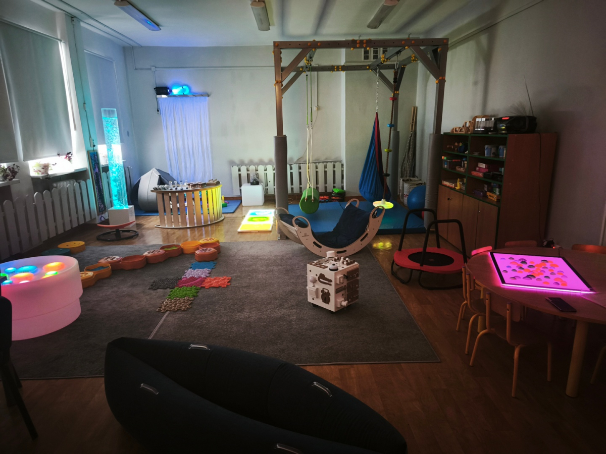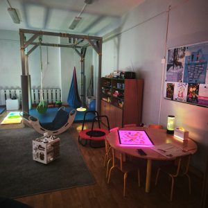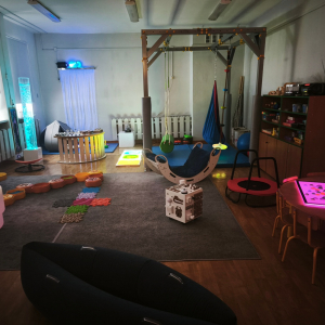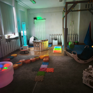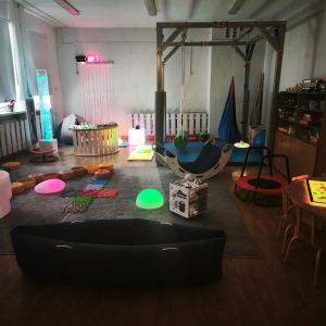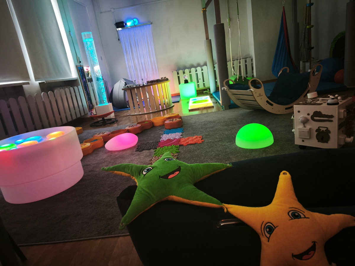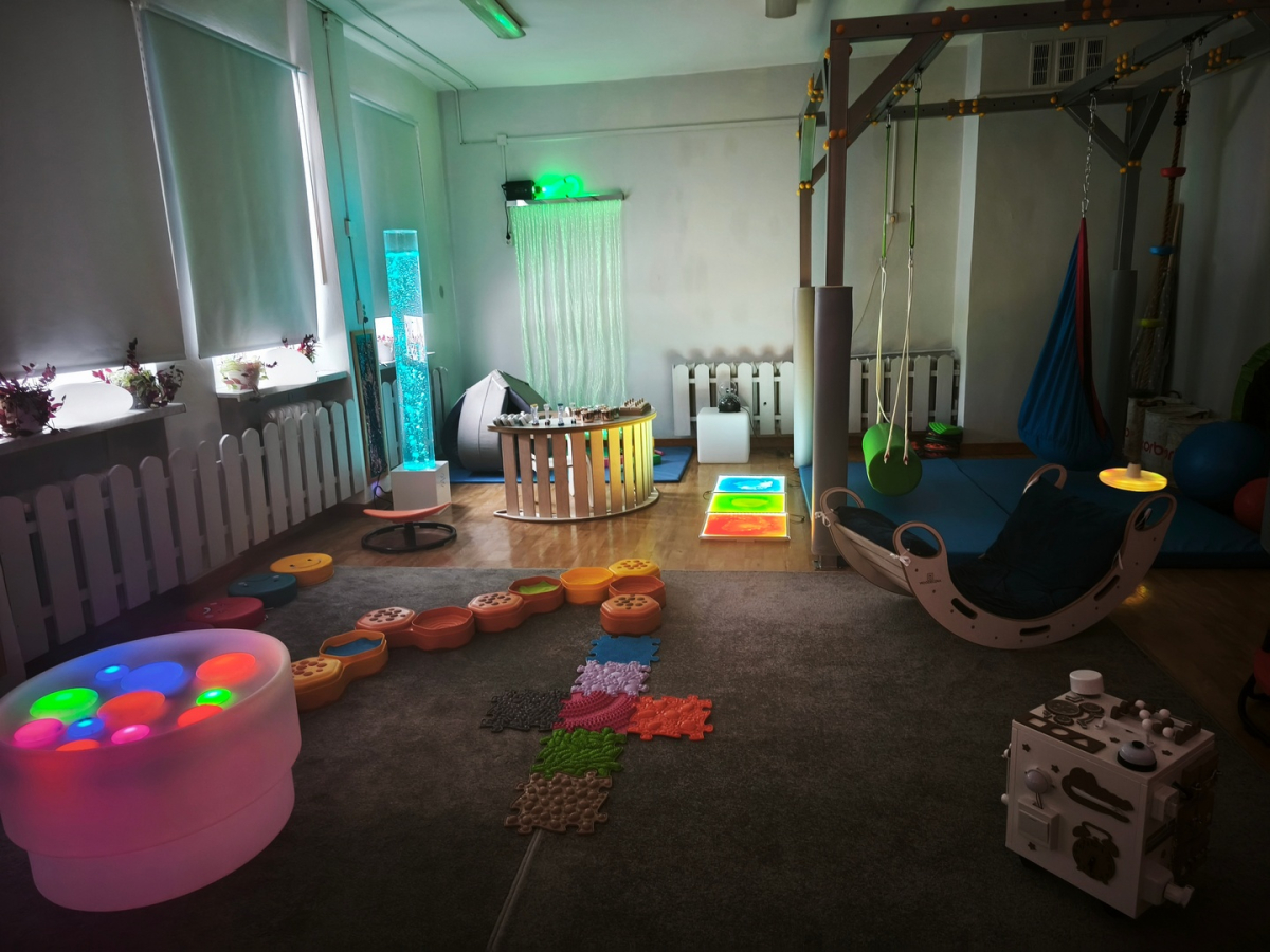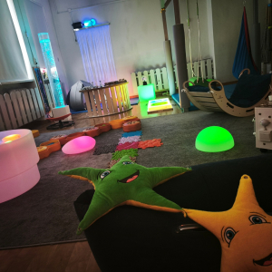 Poniżej zamieszczamy opis i zdjęcia naszej Pracowni Integracji Sensorycznej, w której dzieci uwielbiają przebywać. Widoczna na zdjęciach przestrzeń zaprojektowana została tak, aby wspierać rozwój zmysłów, regulację emocji oraz motorykę dzieci poprzez różnorodne bodźce – świetlne, dotykowe, ruchowe i dźwiękowe. To miejsce, które łączy funkcję terapeutyczną z bezpieczną, angażującą zabawą.