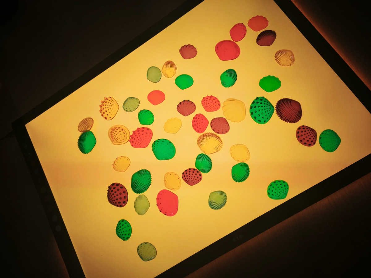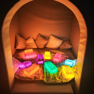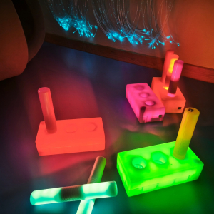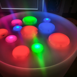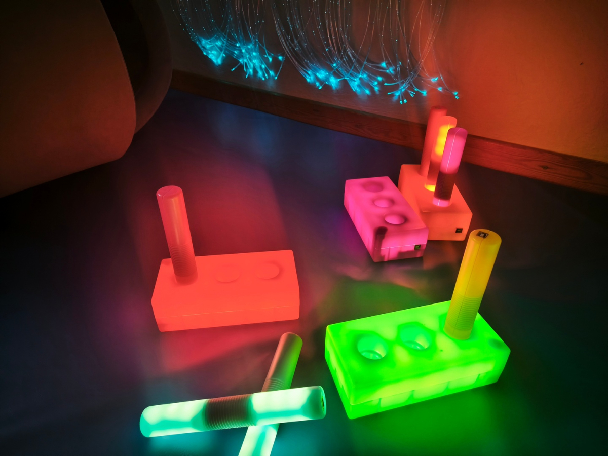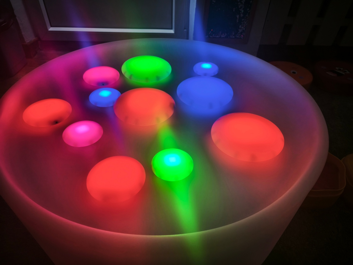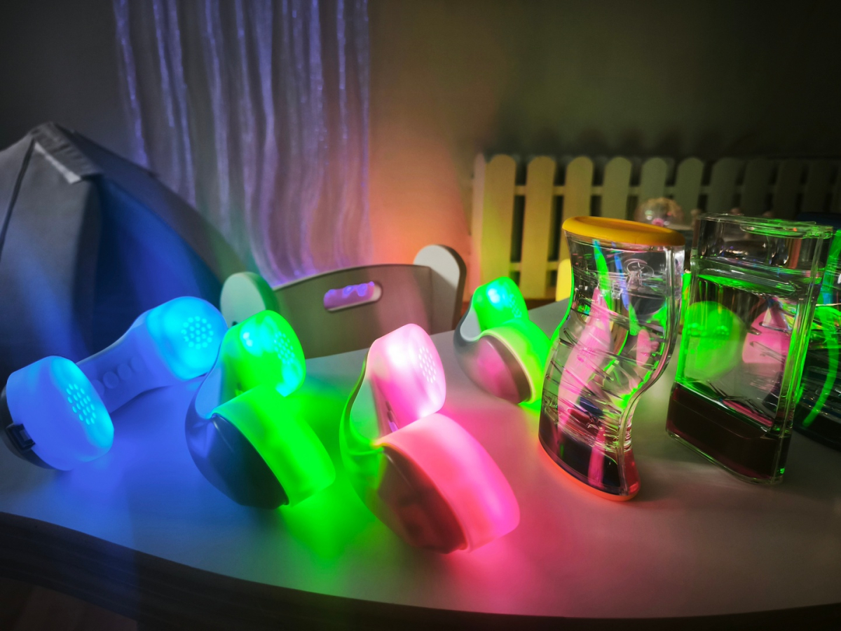 2. Strefa bodźców świetlnych. W pracowni znajdują się różnorodne elementy emitujące światło:
