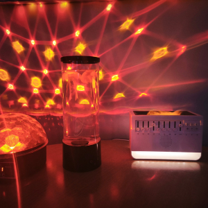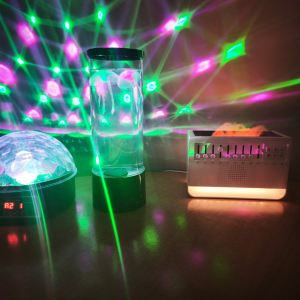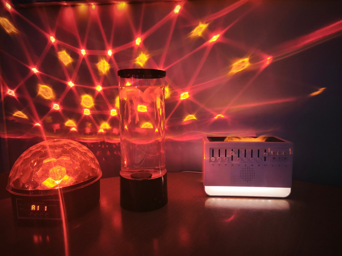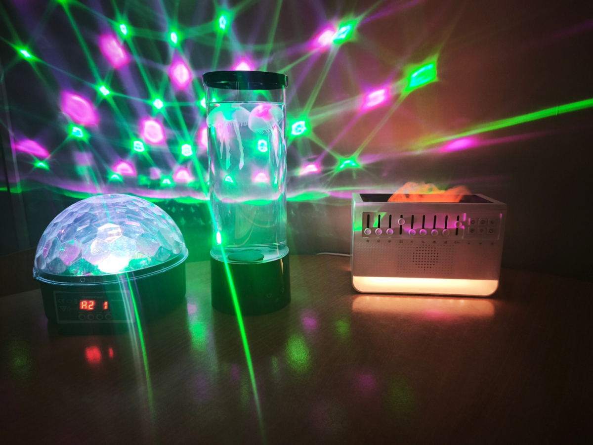 - lampy projekcyjne tworzące dynamiczne wzory na ścianach,