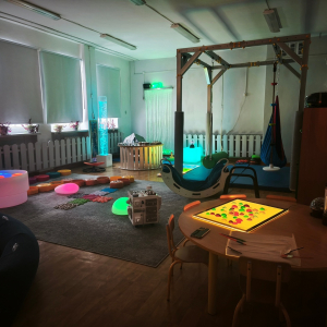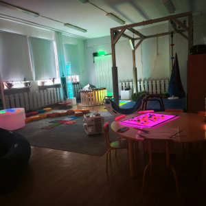 Całość tworzy przestrzeń przyjazną i bezpieczną, pełną kolorów, ale nieprzestymulowującą, elastyczną – łatwo dostosować ją do potrzeb konkretnego dziecka, sprzyjającą zarówno aktywizacji, jak i wyciszeniu.
