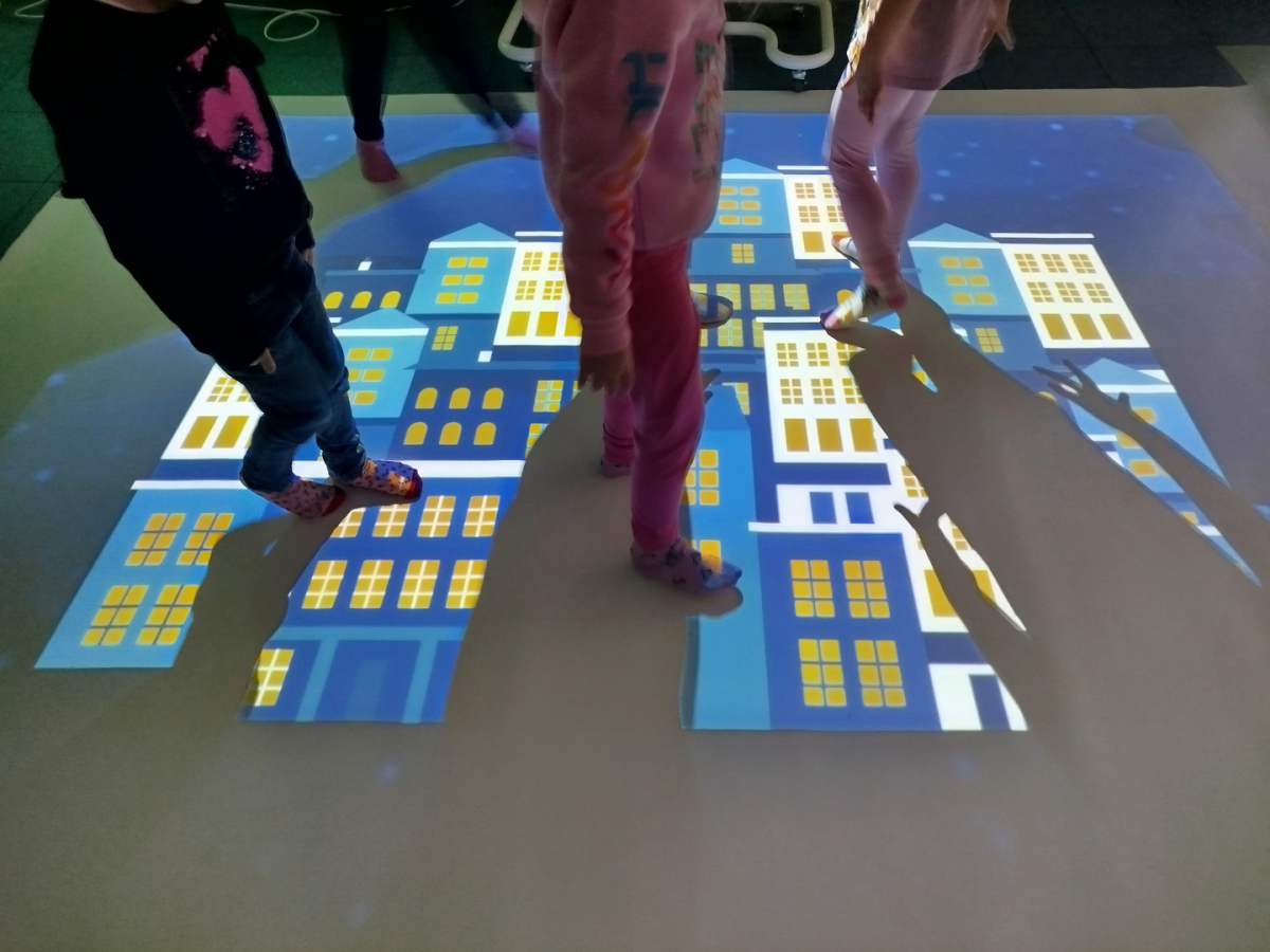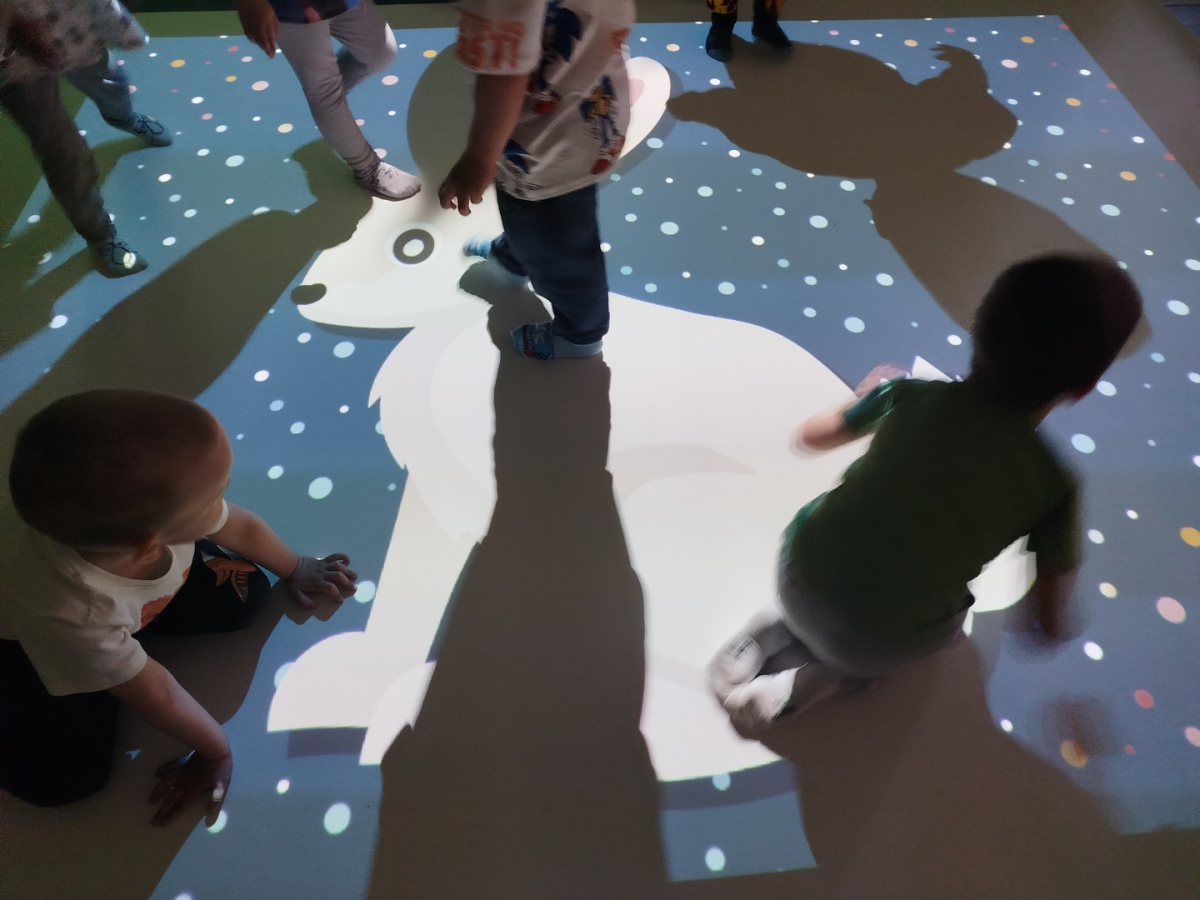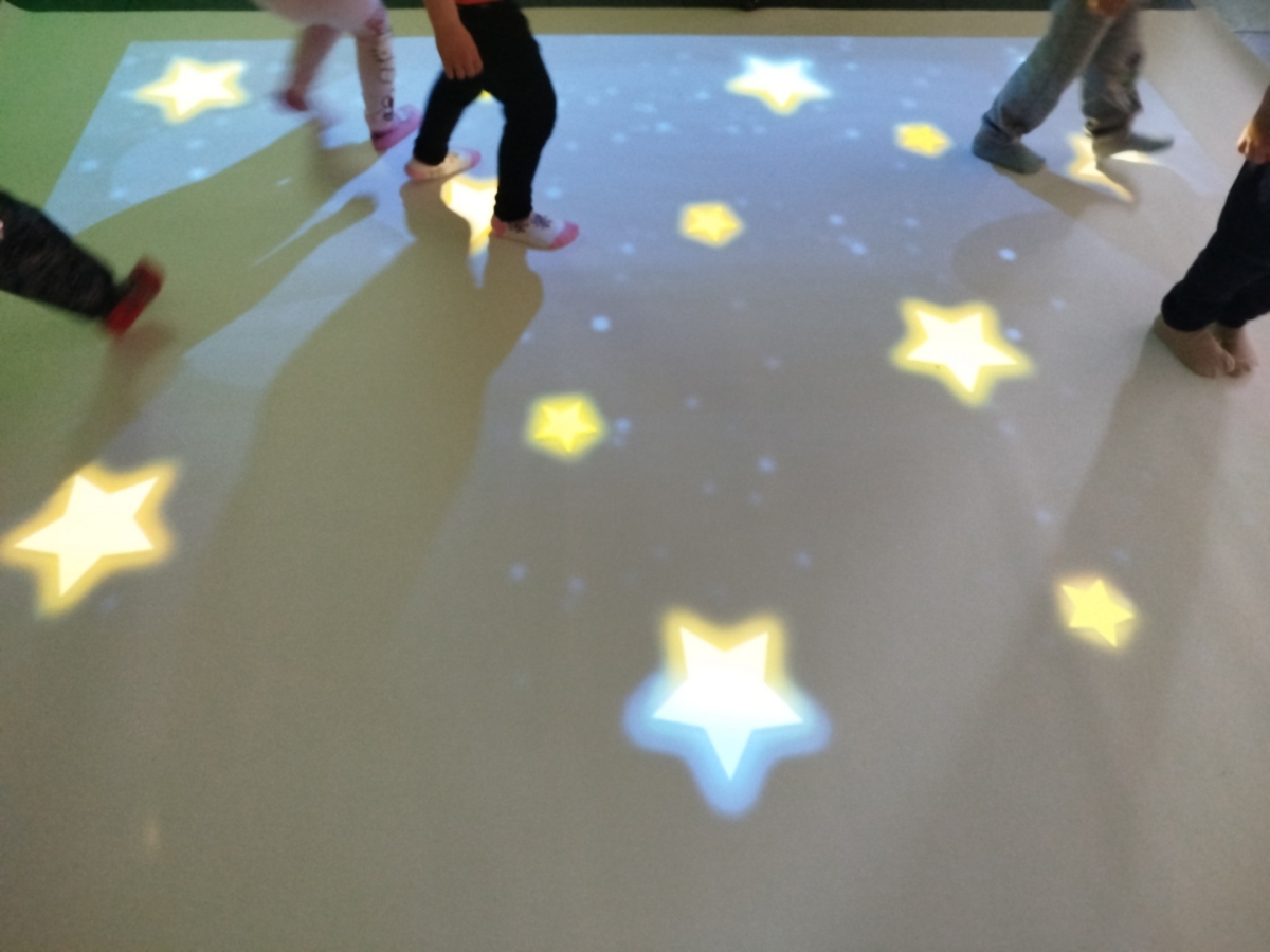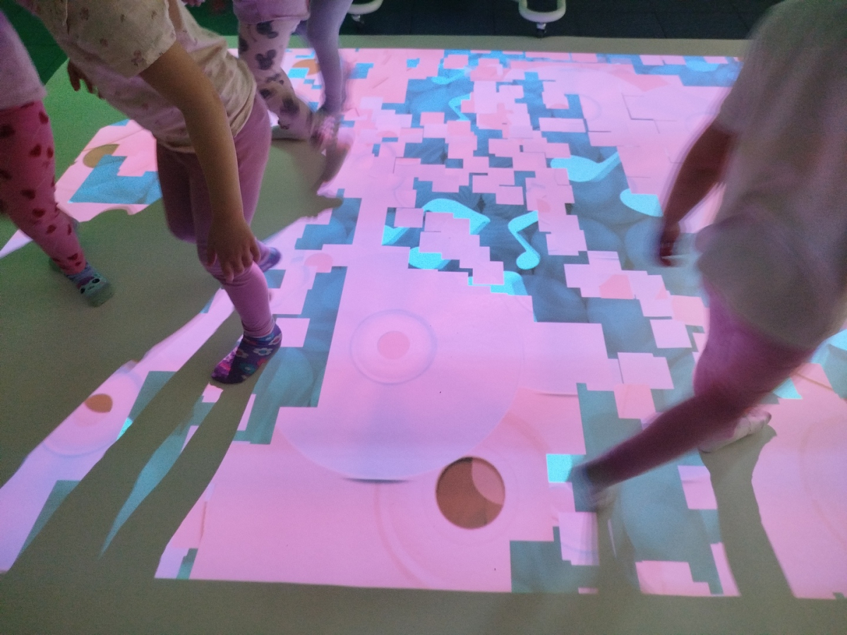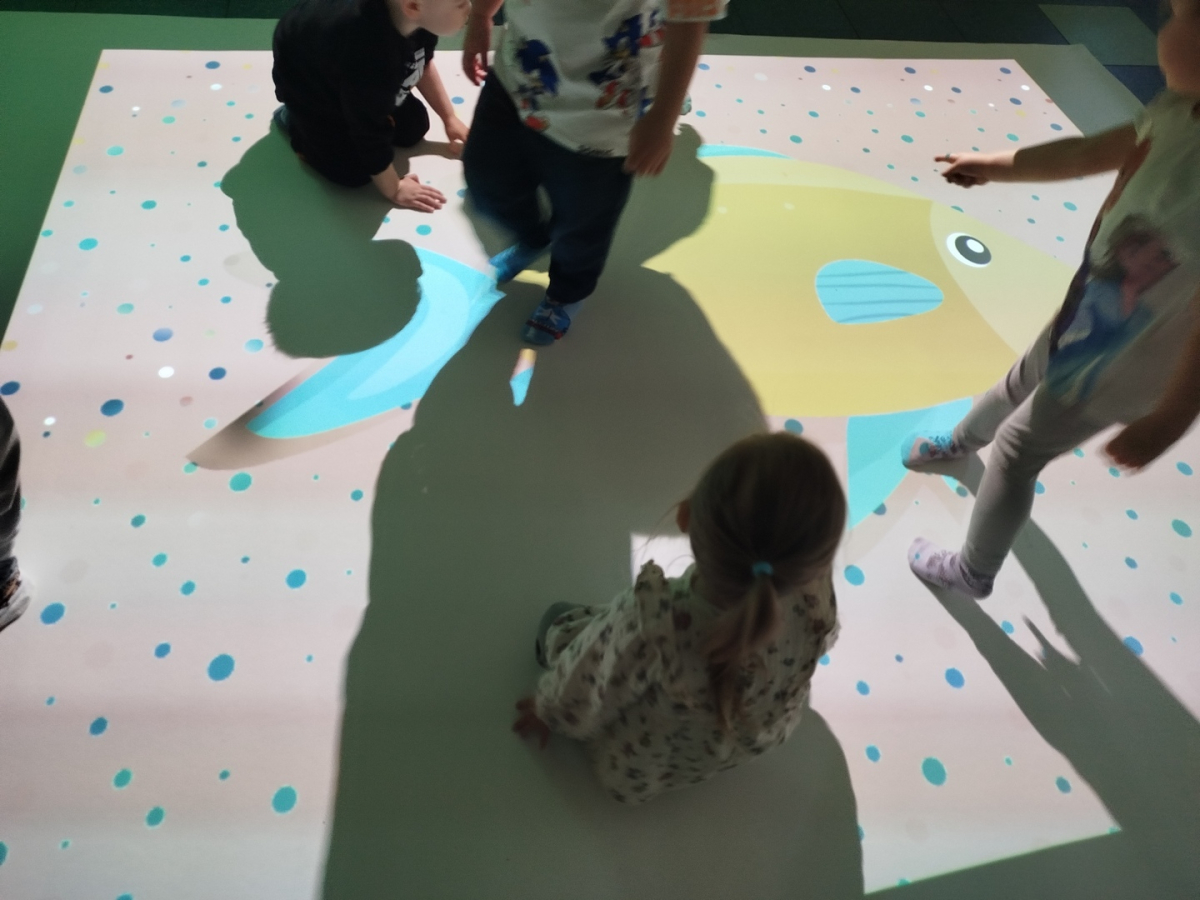 W dniu dzisiejszym dzieci bawiły się na podłodze interaktywnej. Było dużo radości, zabawy, ruchu i współpracy między dziećmi.