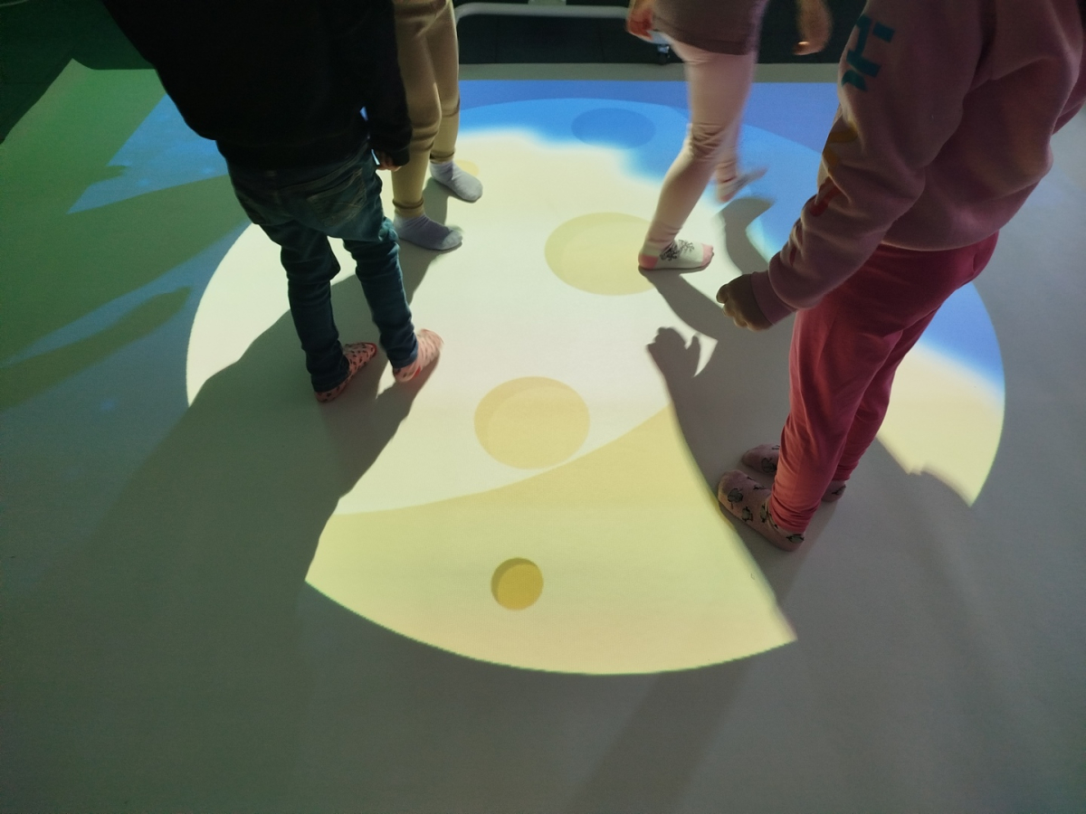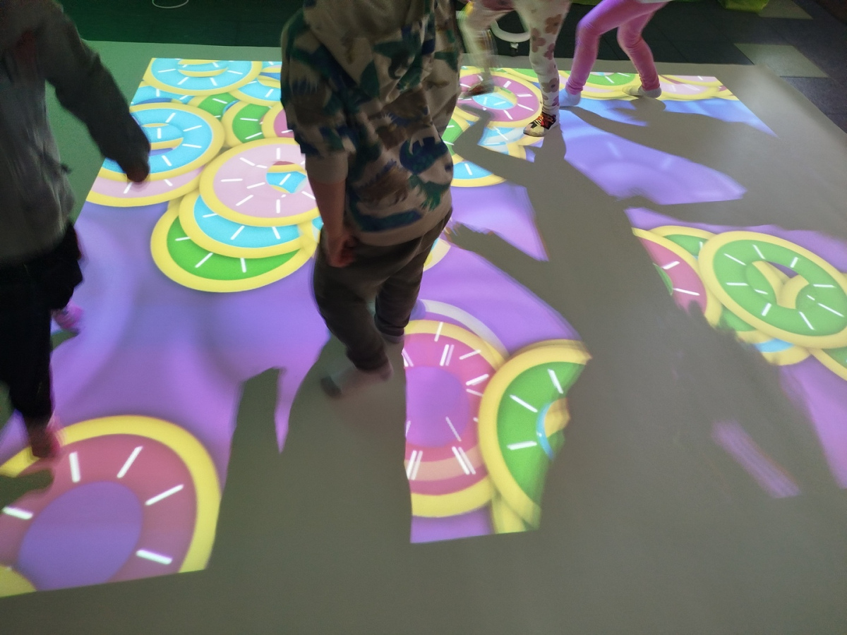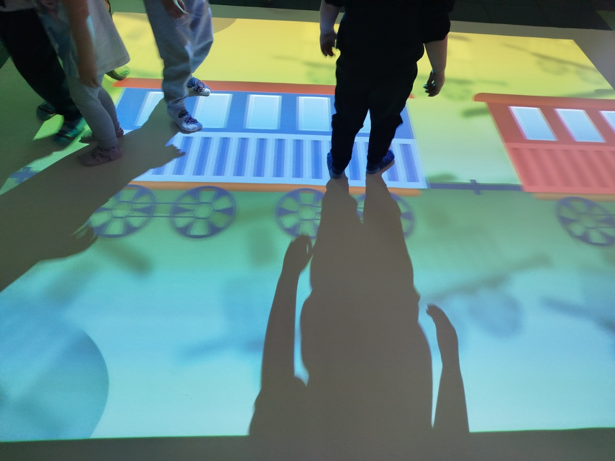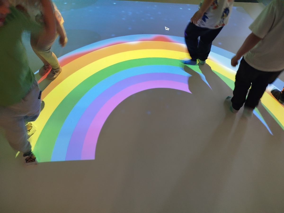 W dniu dzisiejszym dzieci bawiły się na podłodze interaktywnej. Było dużo radości, zabawy, ruchu i współpracy między dziećmi.