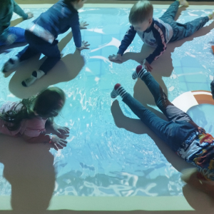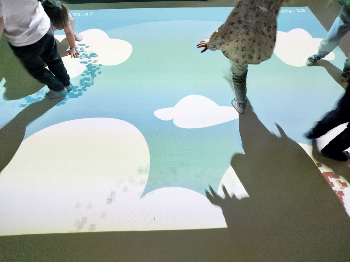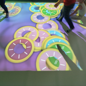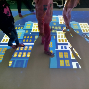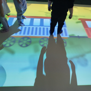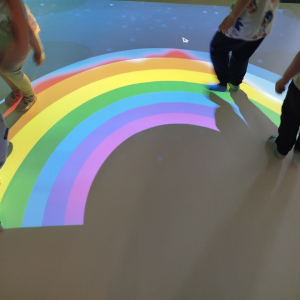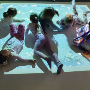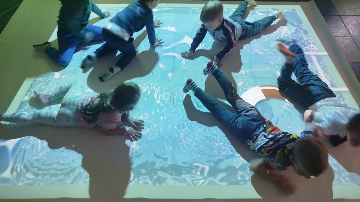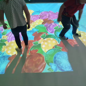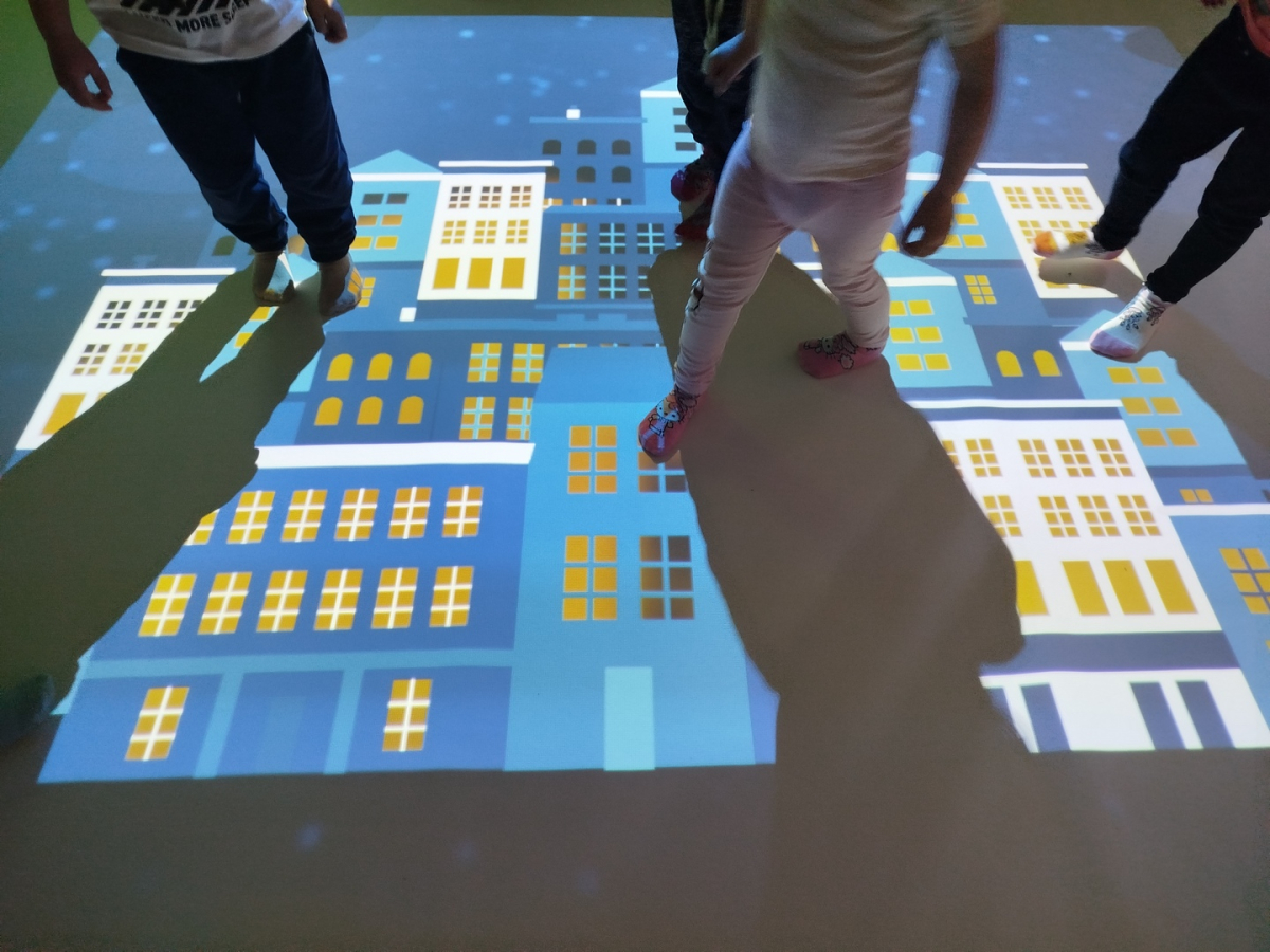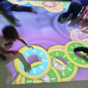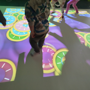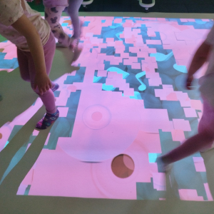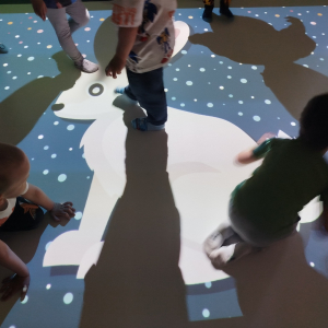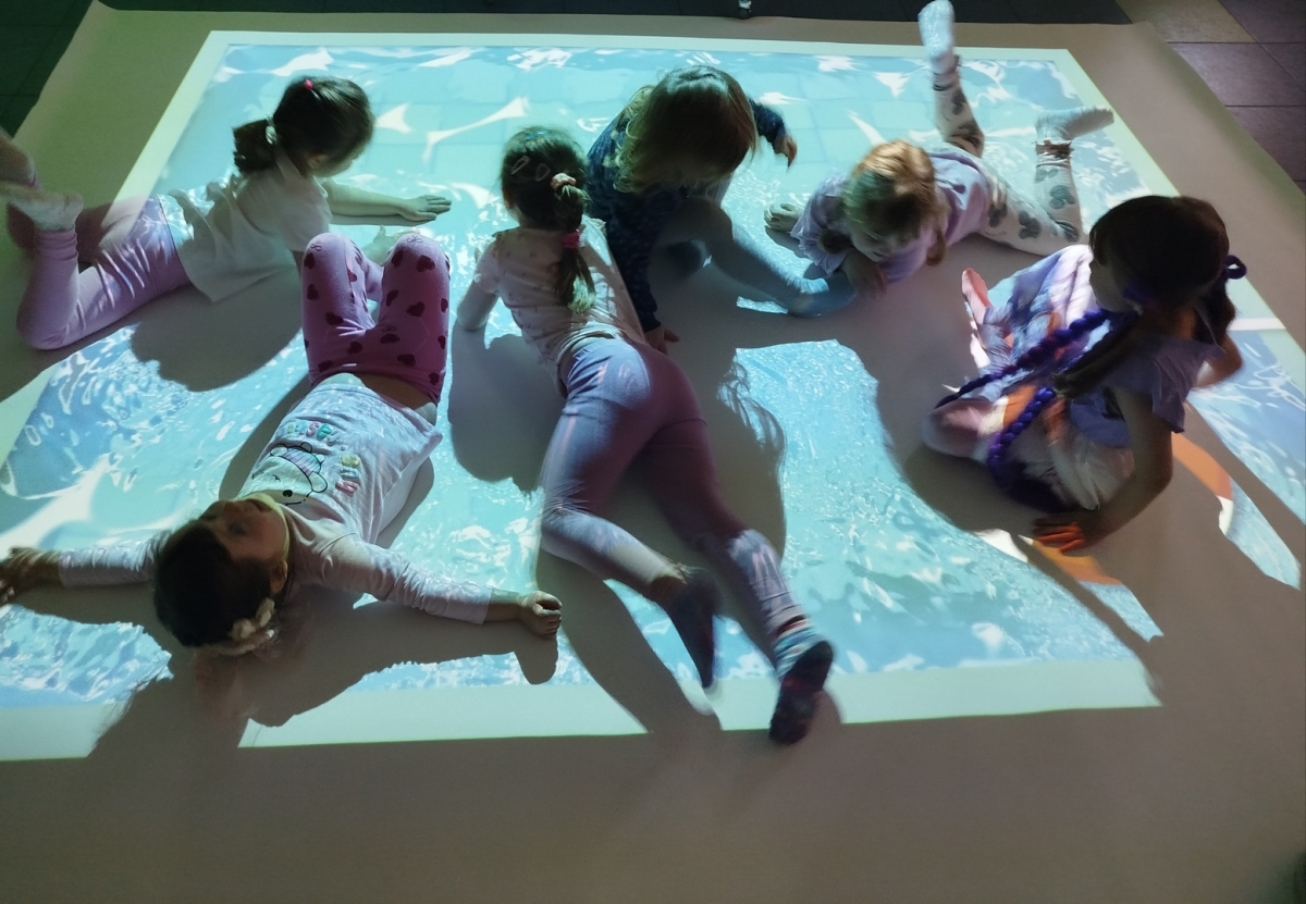 W dniu dzisiejszym dzieci bawiły się na podłodze interaktywnej. Było dużo radości, zabawy, ruchu i współpracy między dziećmi.