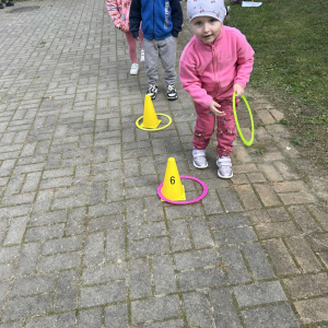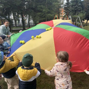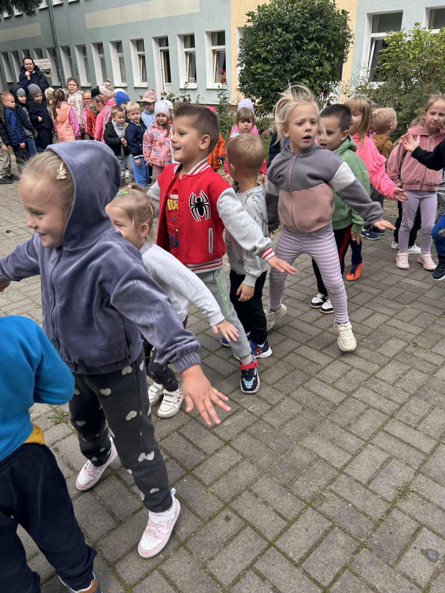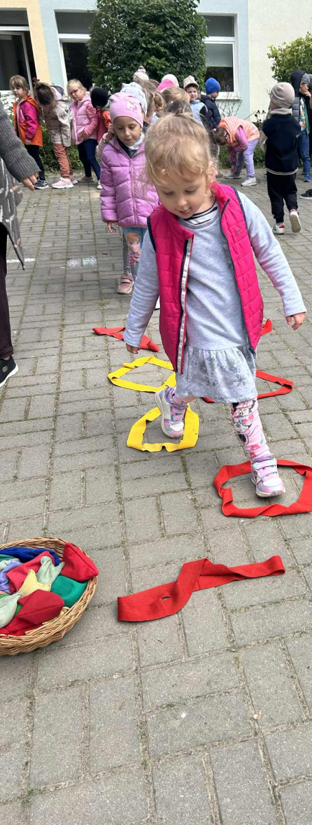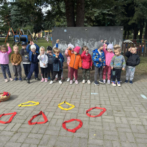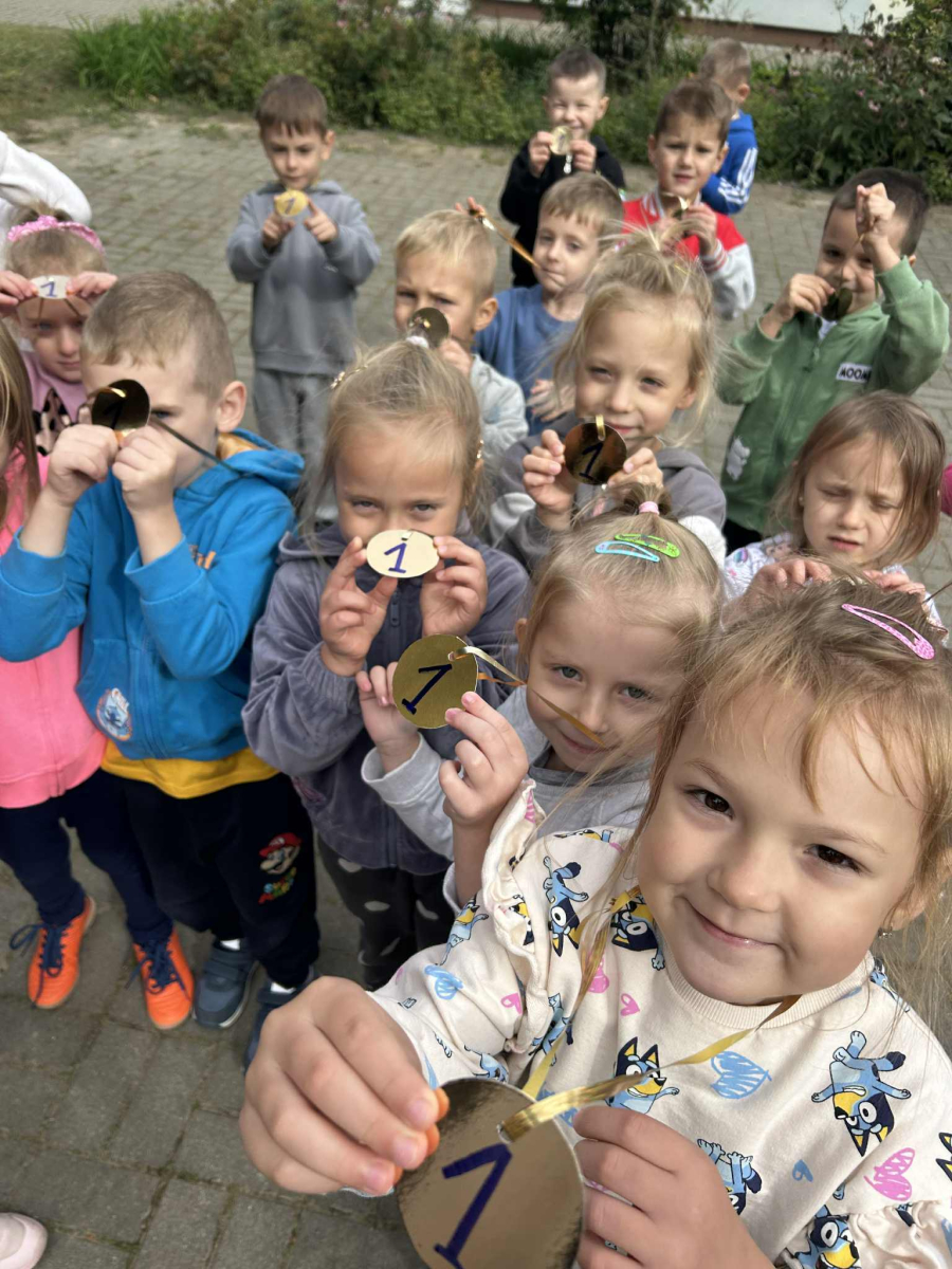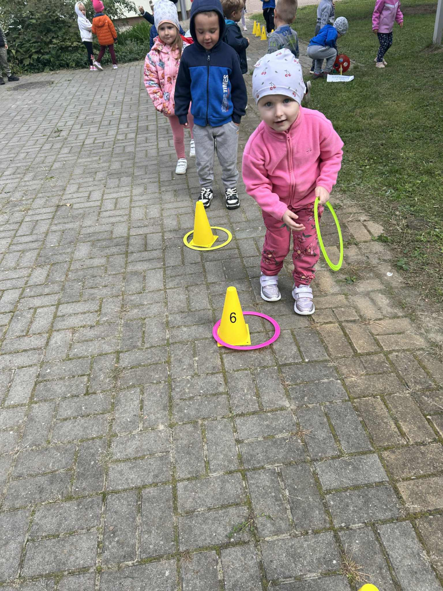 Dzieci ze wszystkich grup wzięły udział w jesiennych zawodach sportowych.Dzieci wzięły udział w różnych konkurencjach: były bieg slalomem z ziemniakiem na łyżce, tor przeszkód, rzut do celu, skoki, zabawy pilkami. Przed zawodami przedszkolaki złożyły sportowe przyrzeczenie. Wydarzenie zapewniło dzieciom dużo radości i wspólnej zabawy poprzez ruch Zbudowało w dzieciach poczucie własnej wartości i wytrwałości. Za udział w zawodach dzieci otrzymały medale i dyplomy.