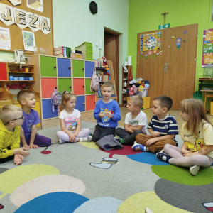 W roku szkolnym 2025/2026 będzie kontynuowany program profilaktyczny „Logopedia w ruchu” . W tym tygodniu odbyły się pierwsze zajęcia. Dzieci z grup 2,5/3-latki „Pszczółki”, 3-latki „Biedronki”, 3/4-latki „Zajączki”, 4/5-latki „Misie” i 5-latki „Żabki” przywitały się różnymi częściami ciała - celem było aby dzieci wiedziały gdzie są ręce, palce, stopy, kolana itp. Odbyła się zabawa ruchowa z usprawnianiem narządów artykulacyjnych. Następnie zabawa - logopedyczno-sensoryczna pt. „Jakie to jest?”. Przedszkolaki ćwiczyły oddech. Na zakończenie dzieci otrzymały pieczątki.