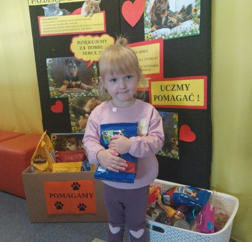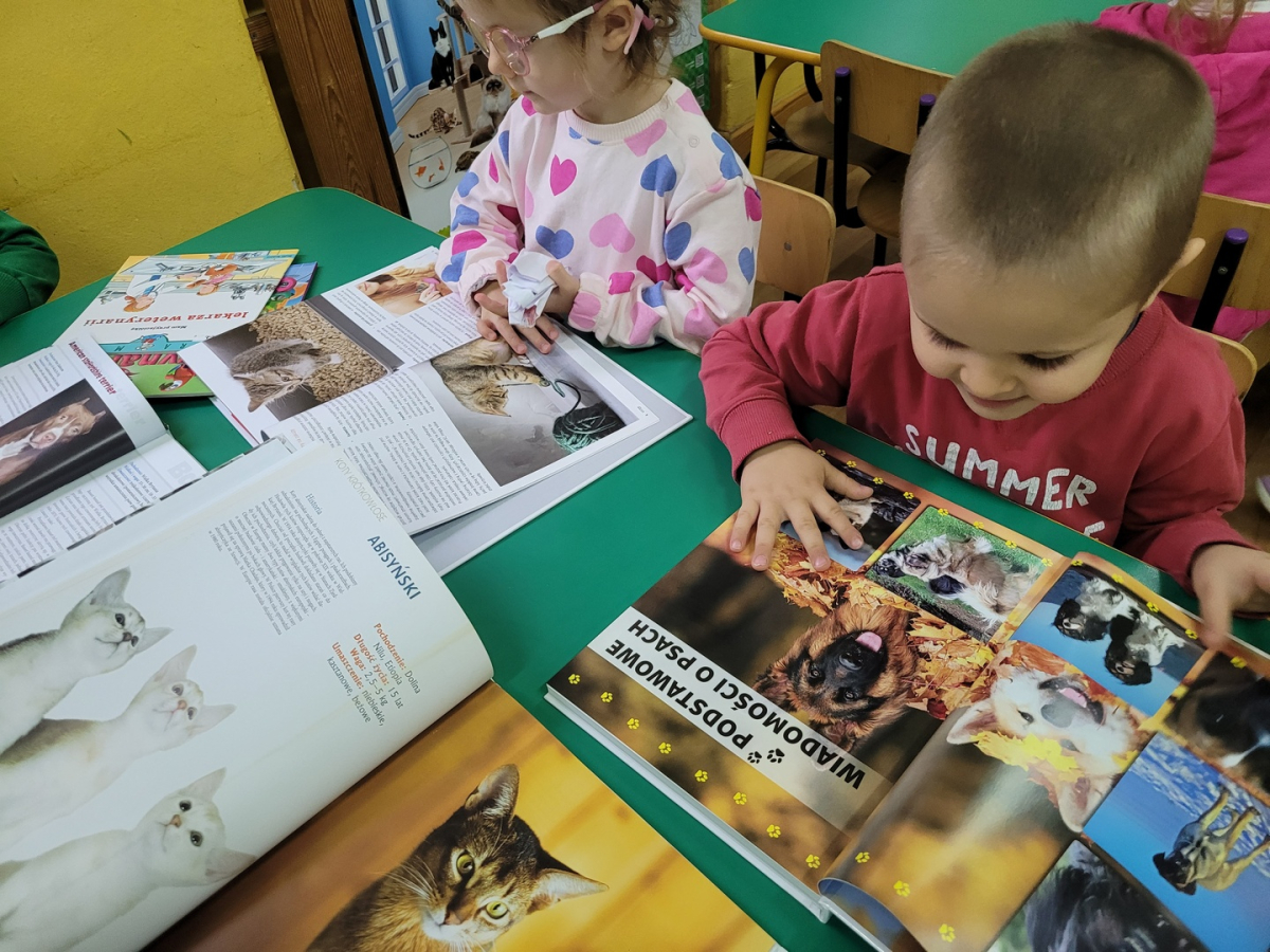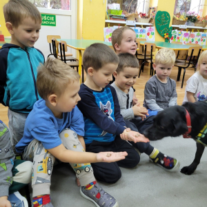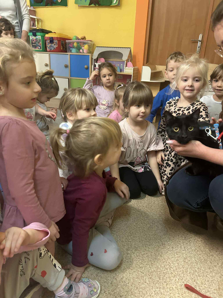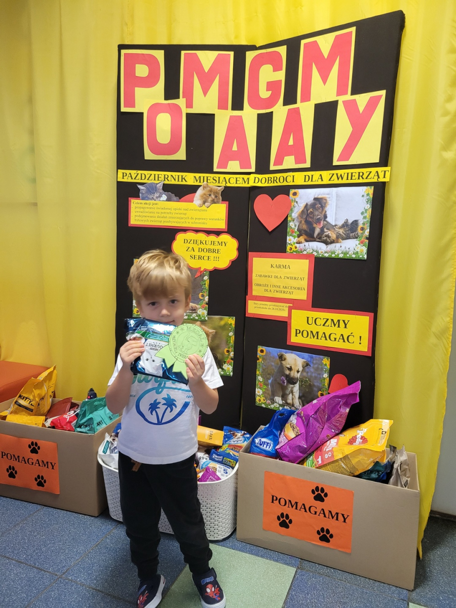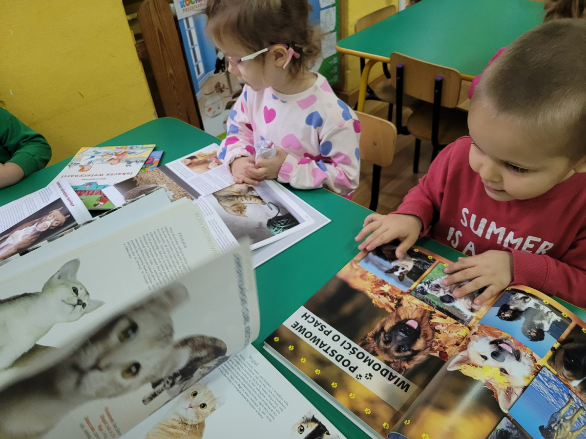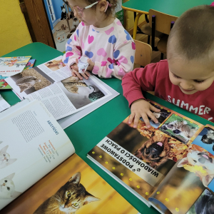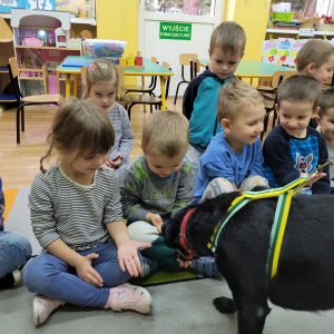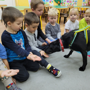 Nasze przedszkolaki po raz kolejny wzięły udział w projekcie „Bliżej pieska”, którego celem było uwrażliwienie przedszkolaków na potrzeby zwierząt. Dzieci uczyły się, jak opiekować się zwierzętami, poznały różne rasy psów, prawa zwierząt oraz zasady bezpiecznego zachowania wobec nich. Wspólnie stworzyły „Kodeks przyjaciela zwierząt”, wykonały piękne prace plastyczne, przeglądały albumy pełne zdjęć naszych czworonożnych przyjaciół. Aktywnie włączyliśmy się w zbiórkę karmy dla zwierząt w schronisku. Dzieci wraz z rodzicami wzięły udział w konkursie plastycznym ,,Psiaki, kociaki i inne zwierzaki”. Miały możliwość udziału w dogoterapii oraz spotkaniu z psem Kai o imieniu ,,Niunio” oraz kotem podopiecznym ze Stowarzyszenia Milejów Dla Zwierząt.
